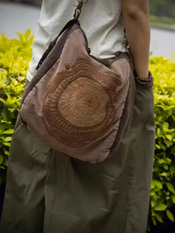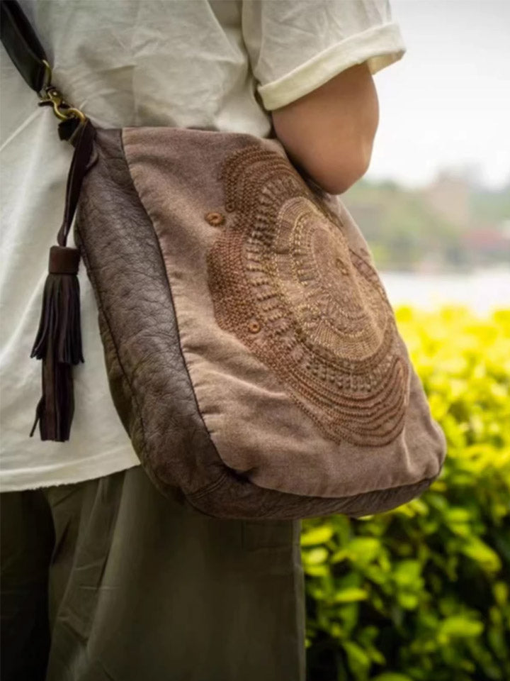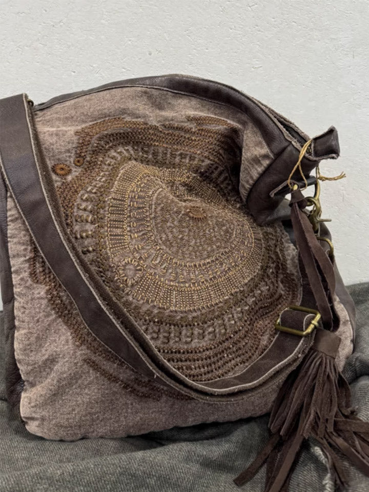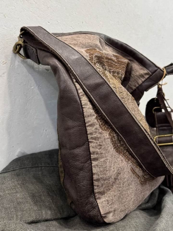 حقيبة كروسبودي جلدية عتيقة مطرزة ومُرقعة 1105