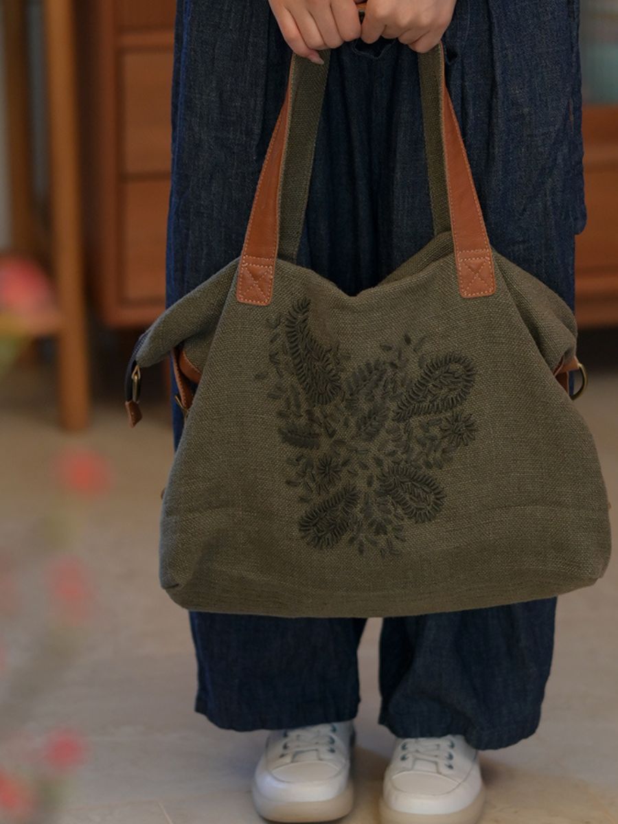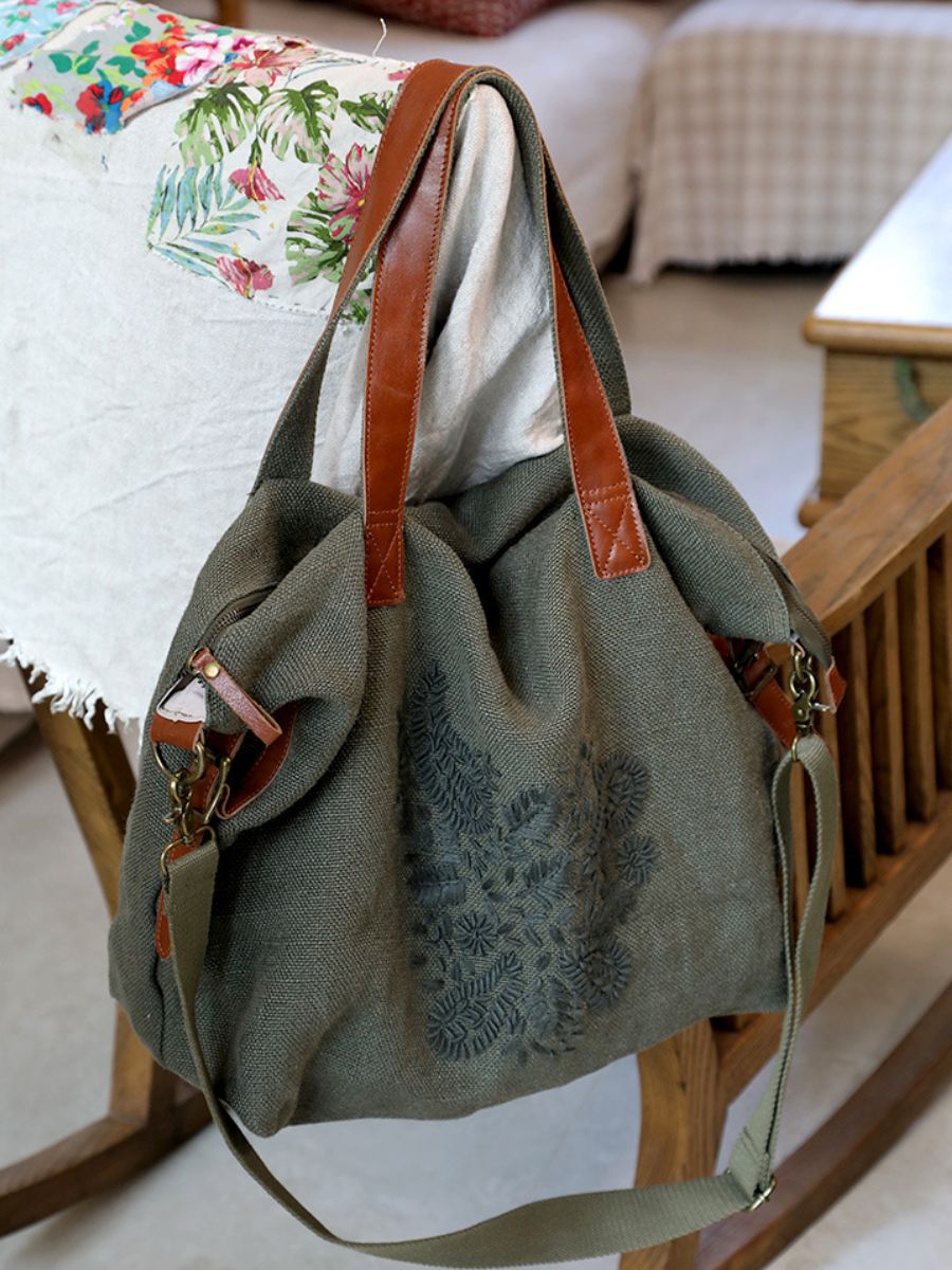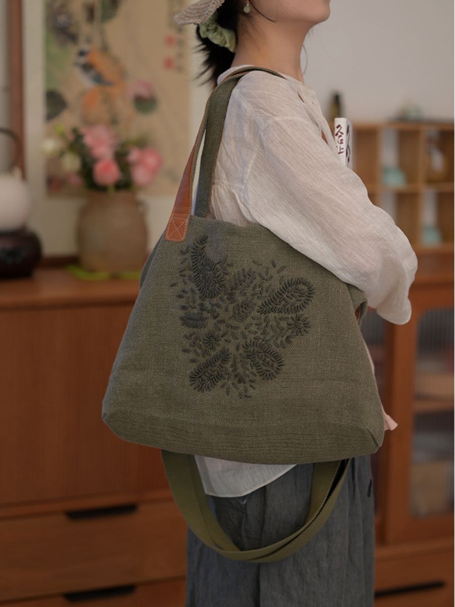 حقيبة كتف مطرزة من القطن والكتان بتصميم كلاسيكي (رقم الموديل: 03022)