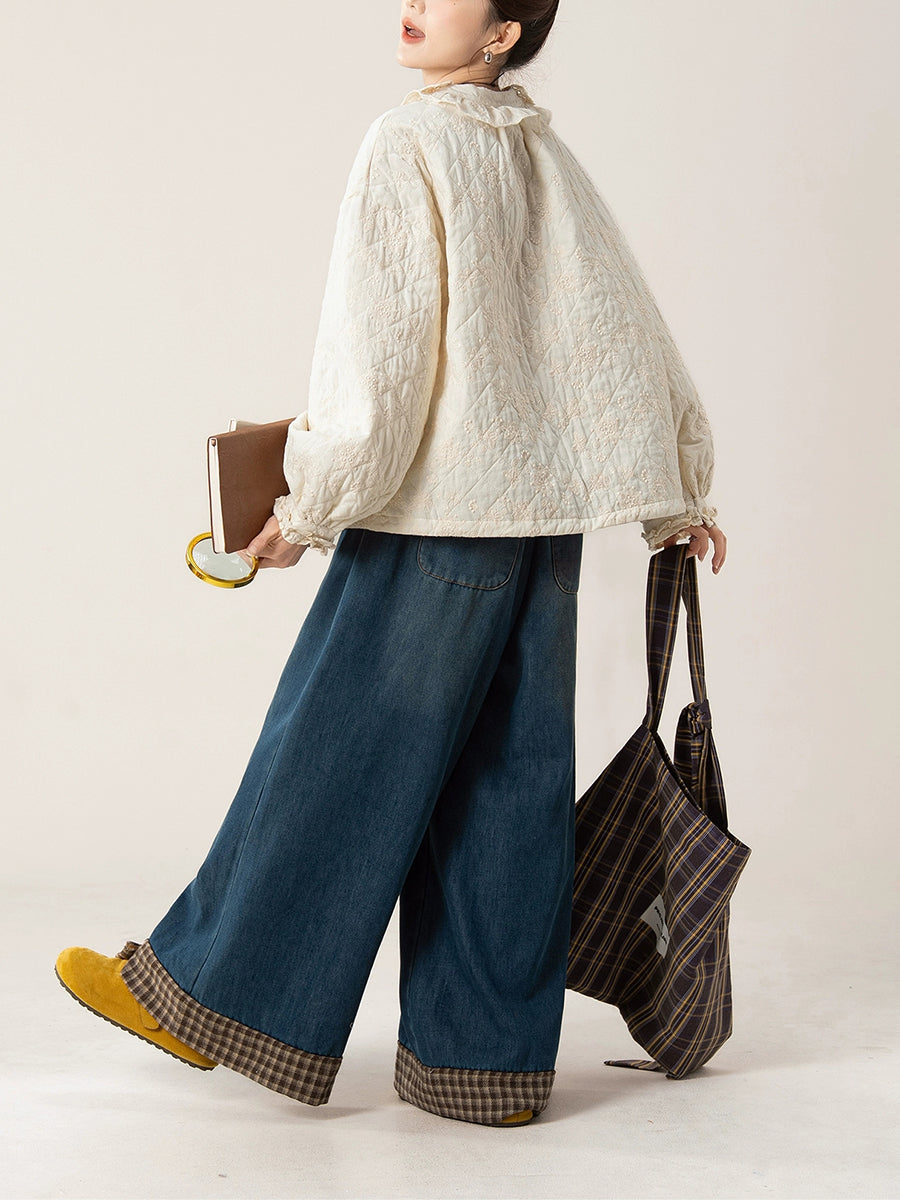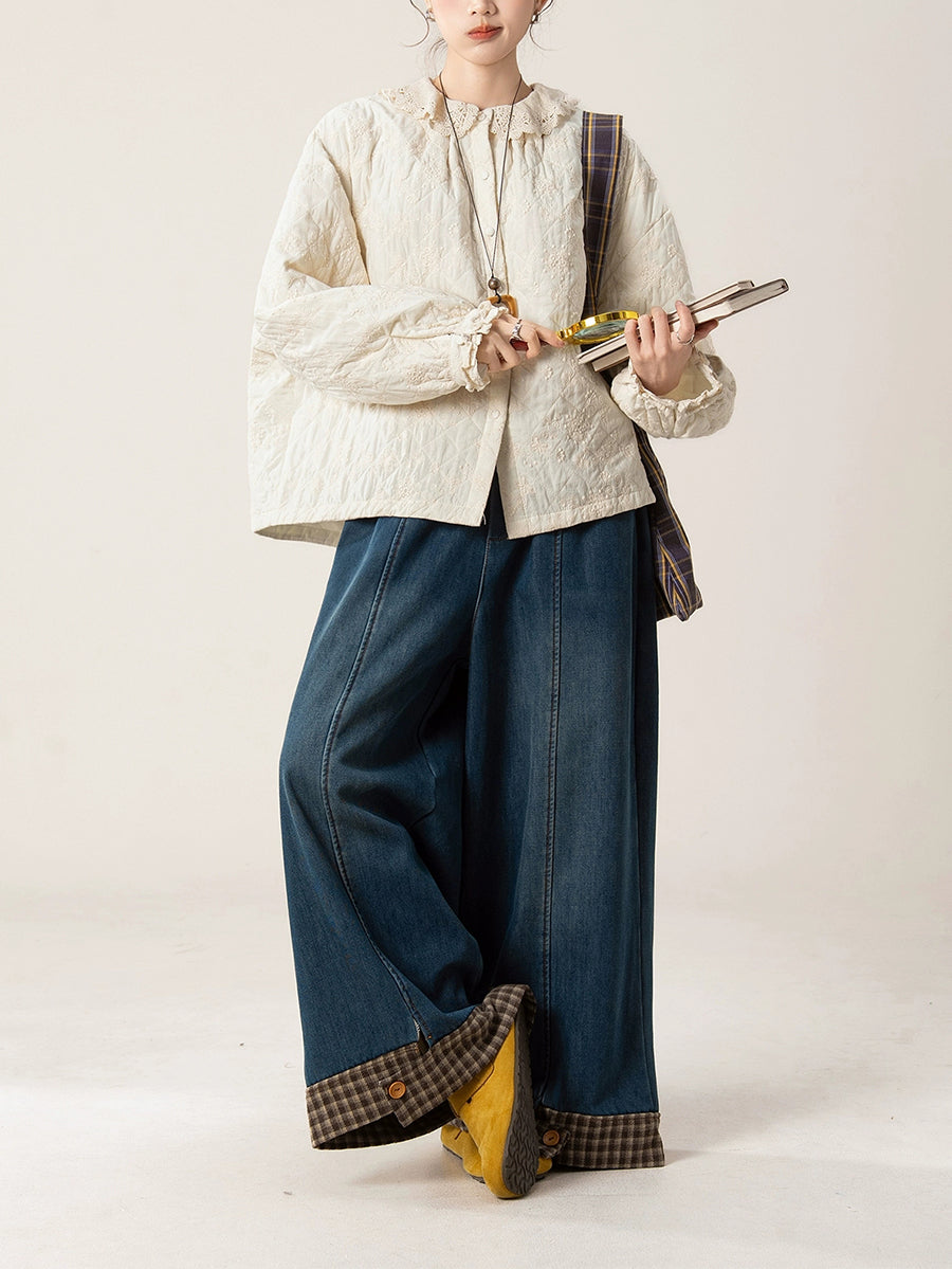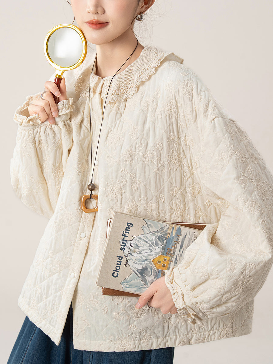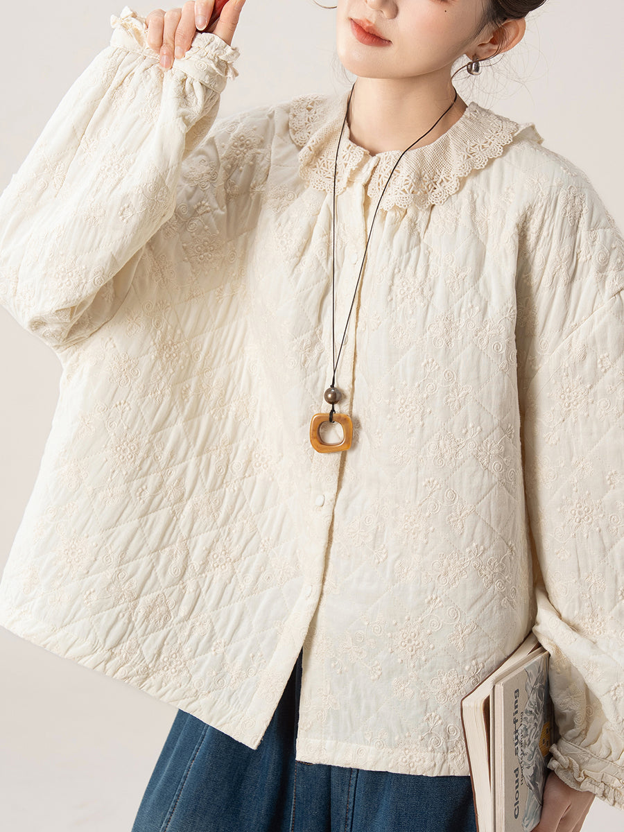 قميص نسائي أنيق مطرز بياقة دانتيل خريفية