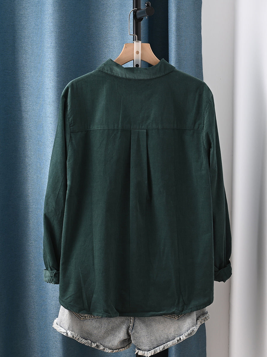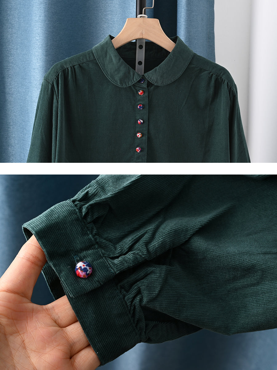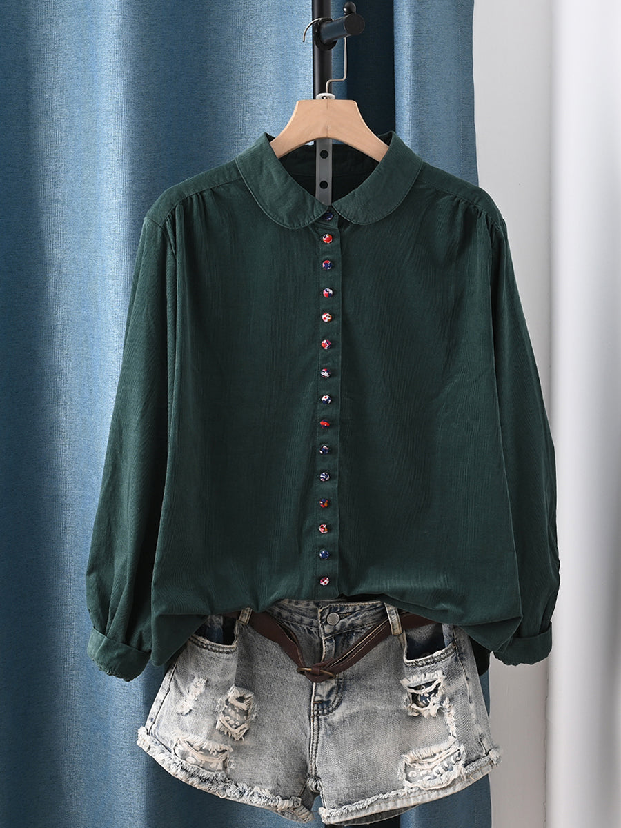 قميص نسائي فني ملون بأزرار من قماش الكوردروي
