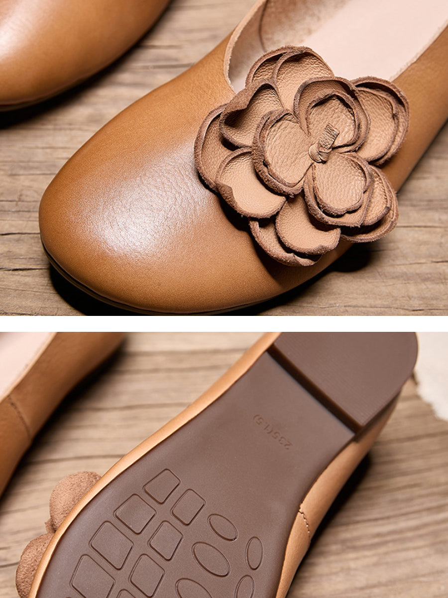 أحذية نسائية فنية من الجلد مزينة بالزهور بكعب منخفض