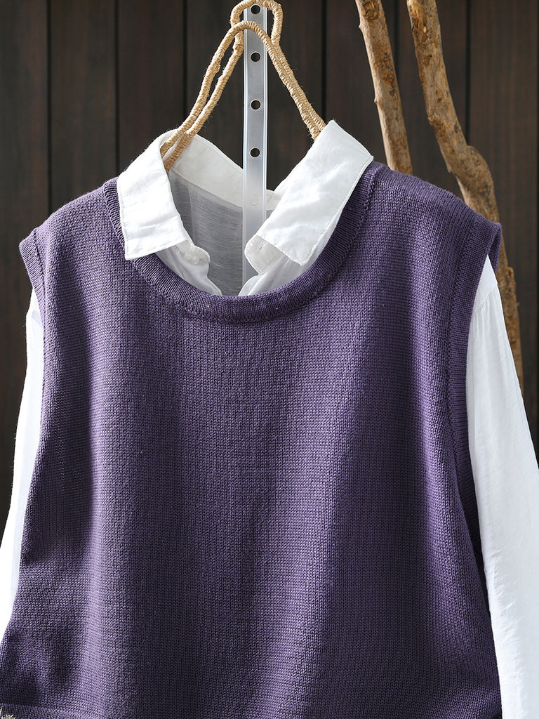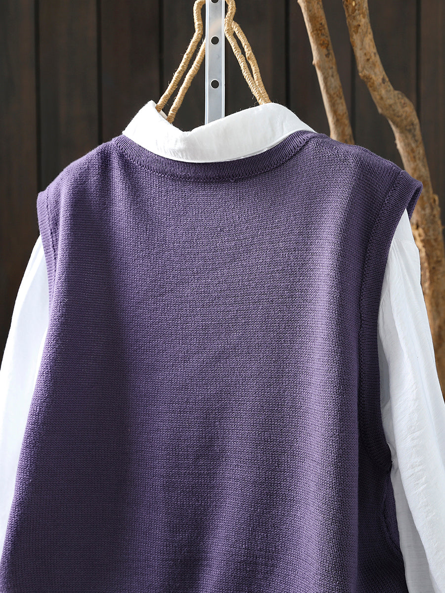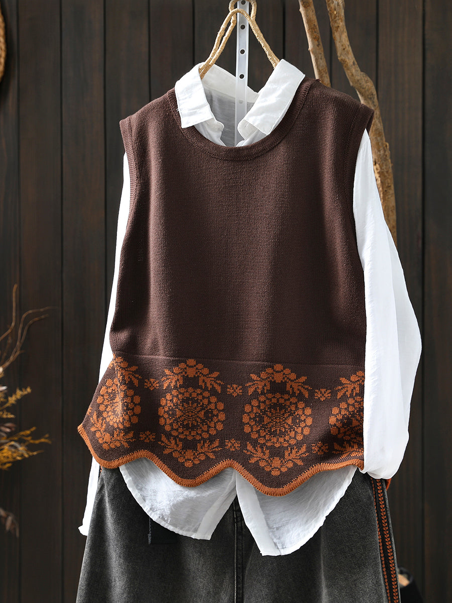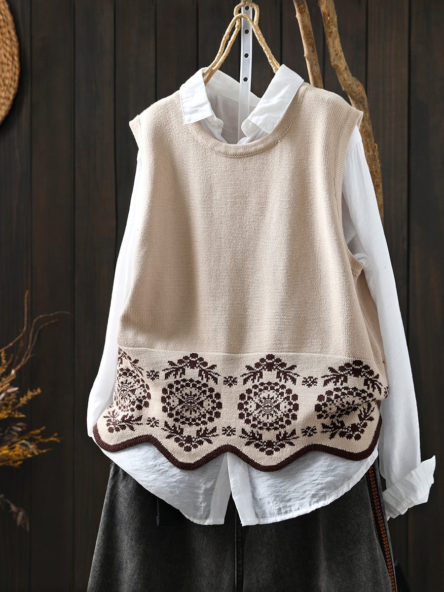 صدرية نسائية محبوكة بياقة دائرية وحافة مموجة مزينة بالزهور