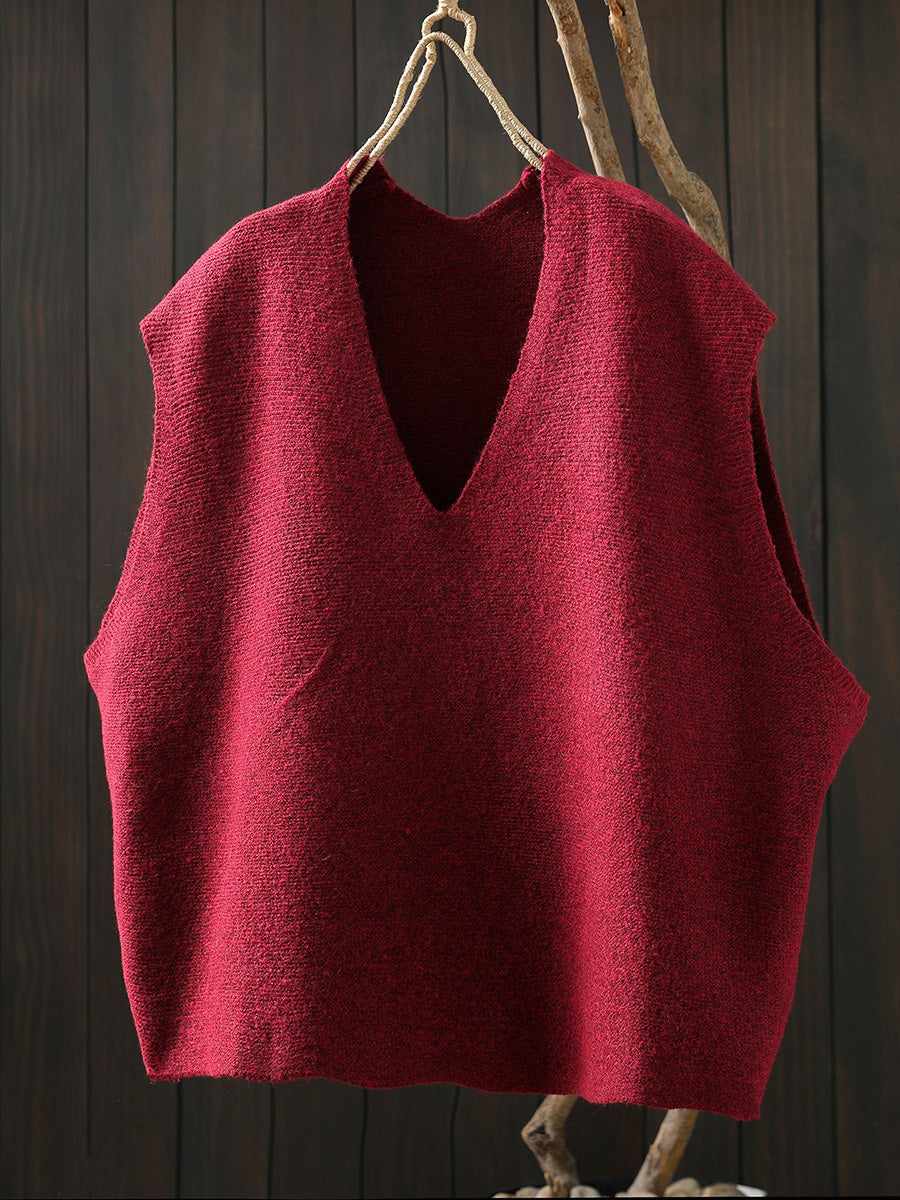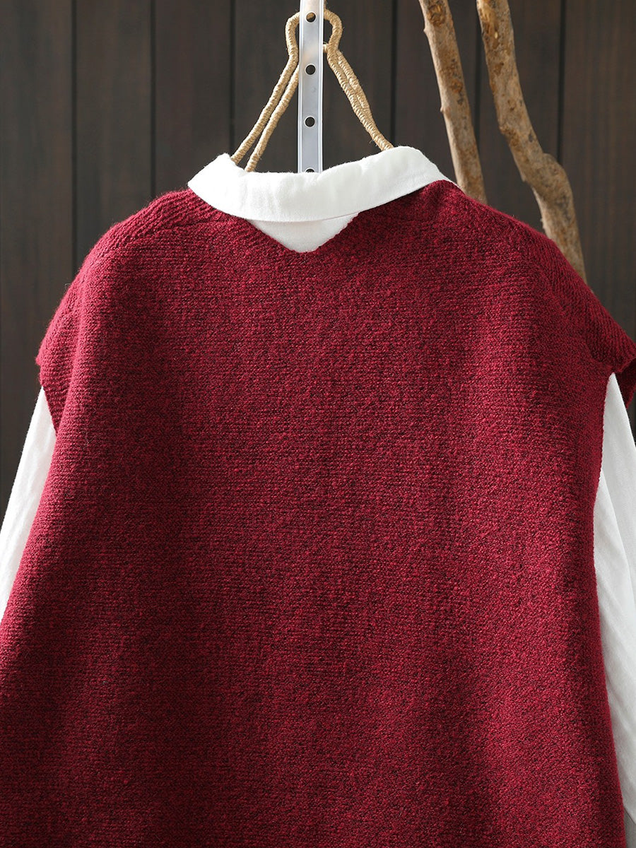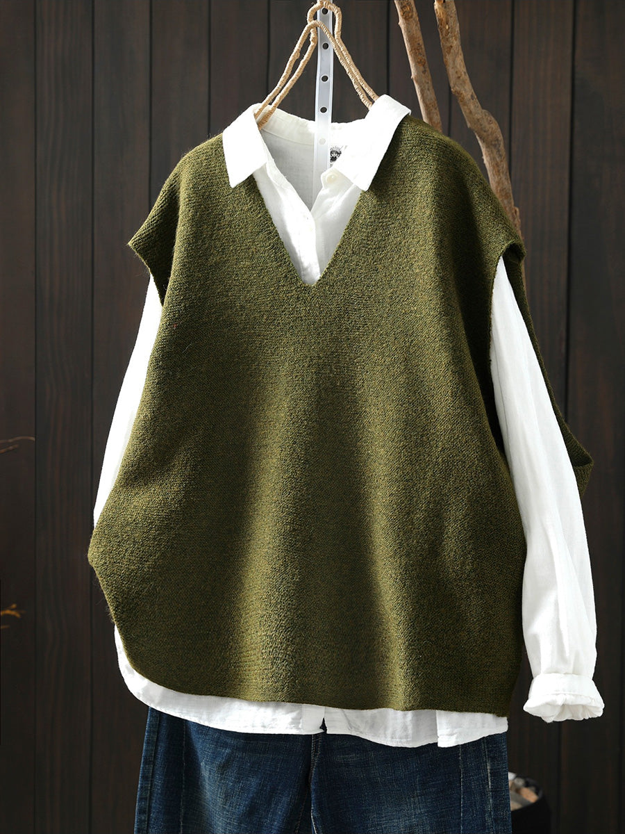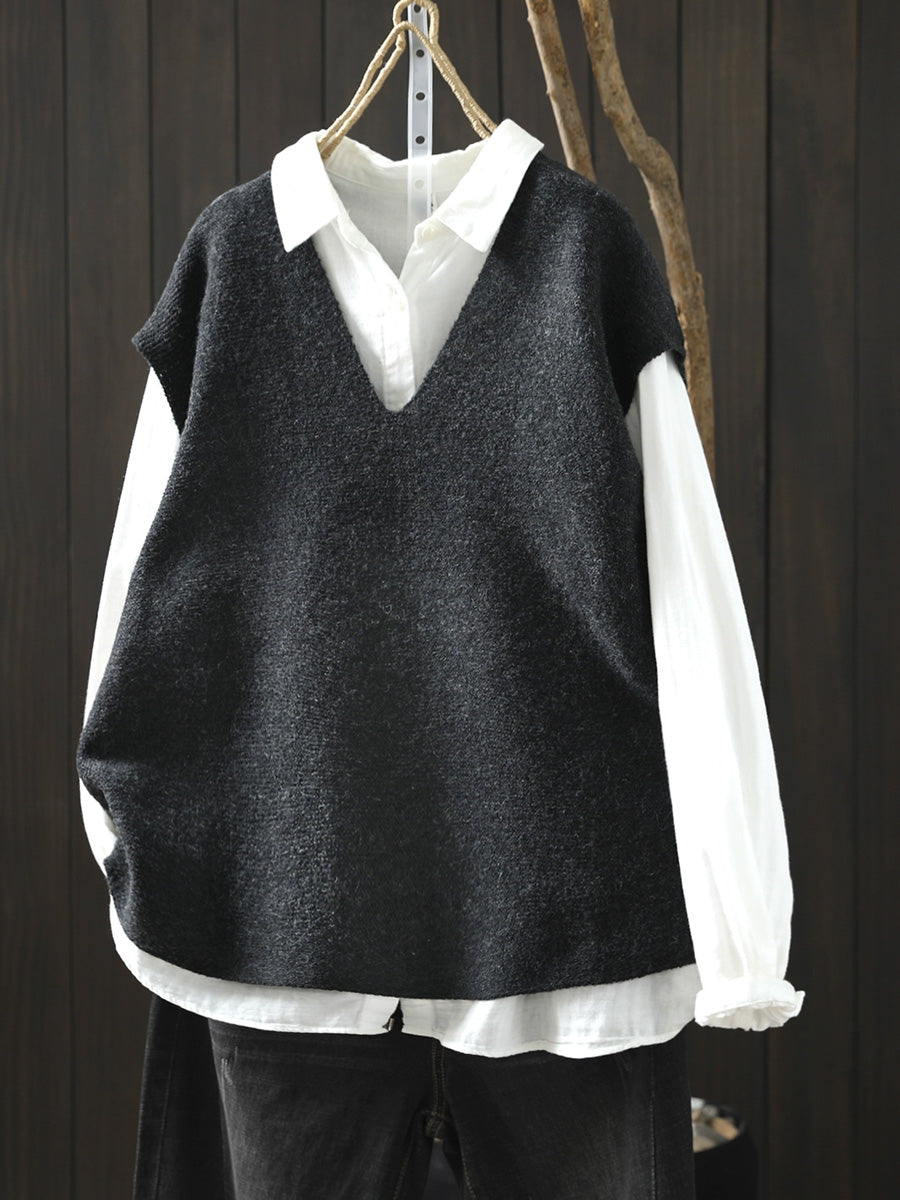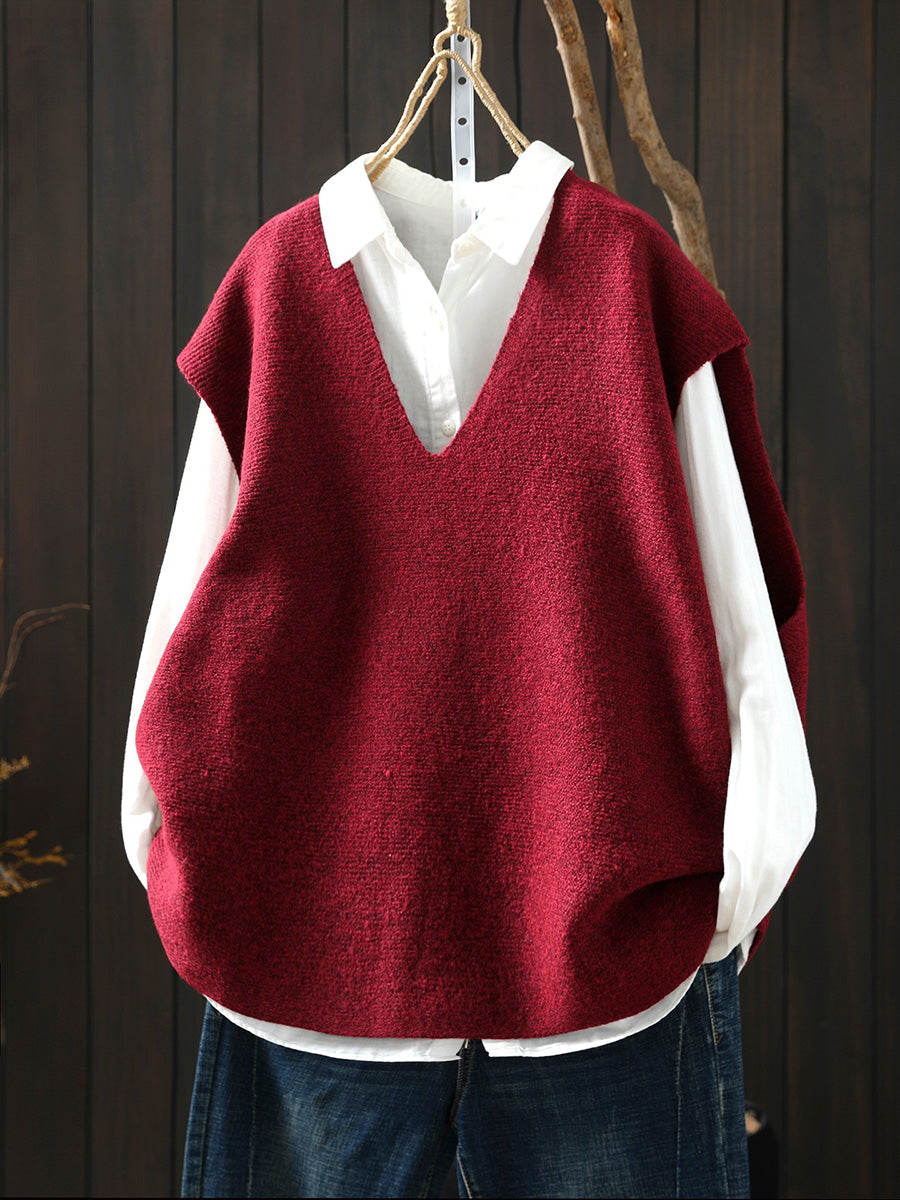 صدرية نسائية محبوكة بياقة على شكل حرف V وحافة بلون موحد