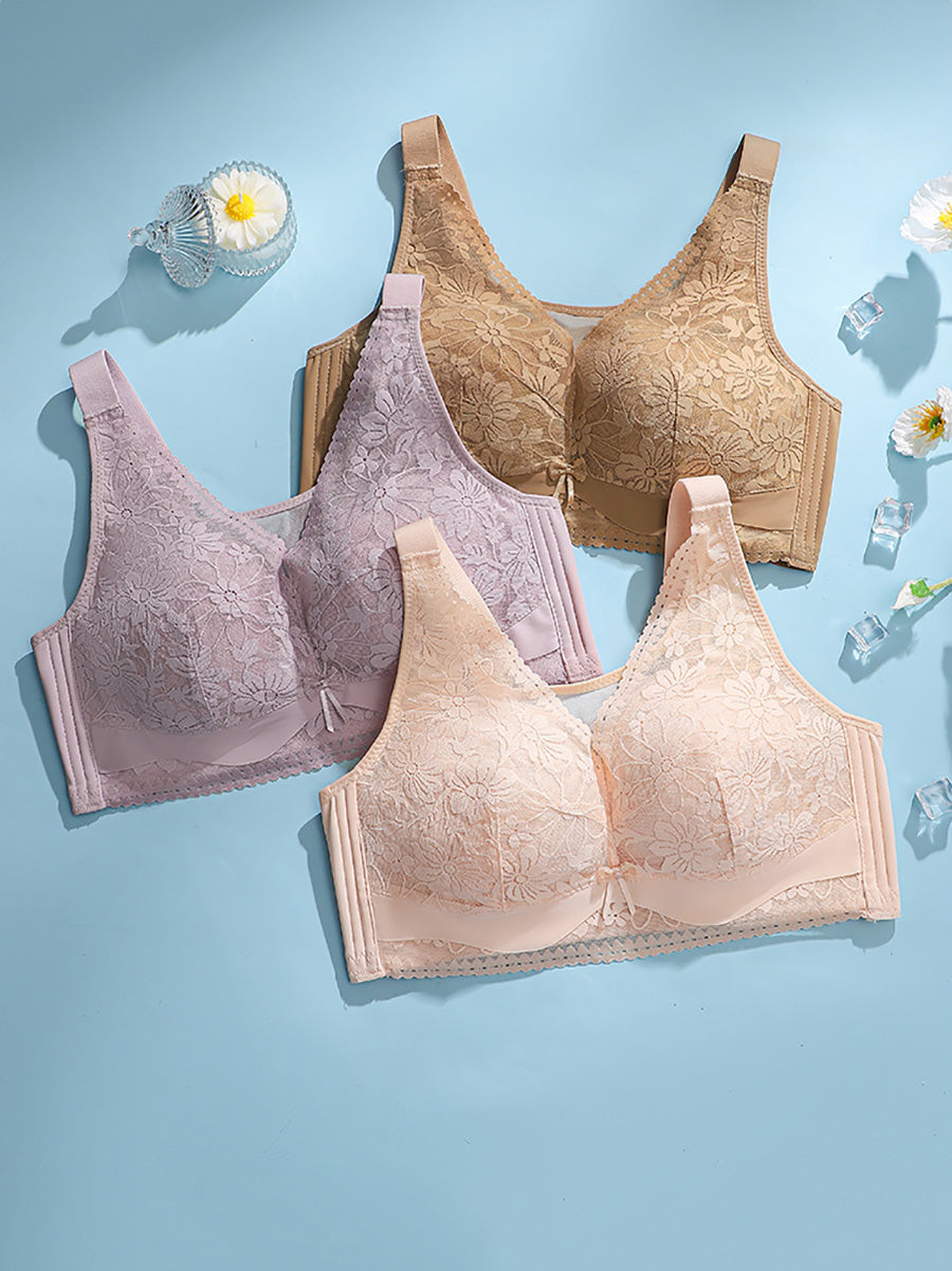 حمالة صدر نسائية فنية بدون أسلاك من الدانتيل بلون نقي
