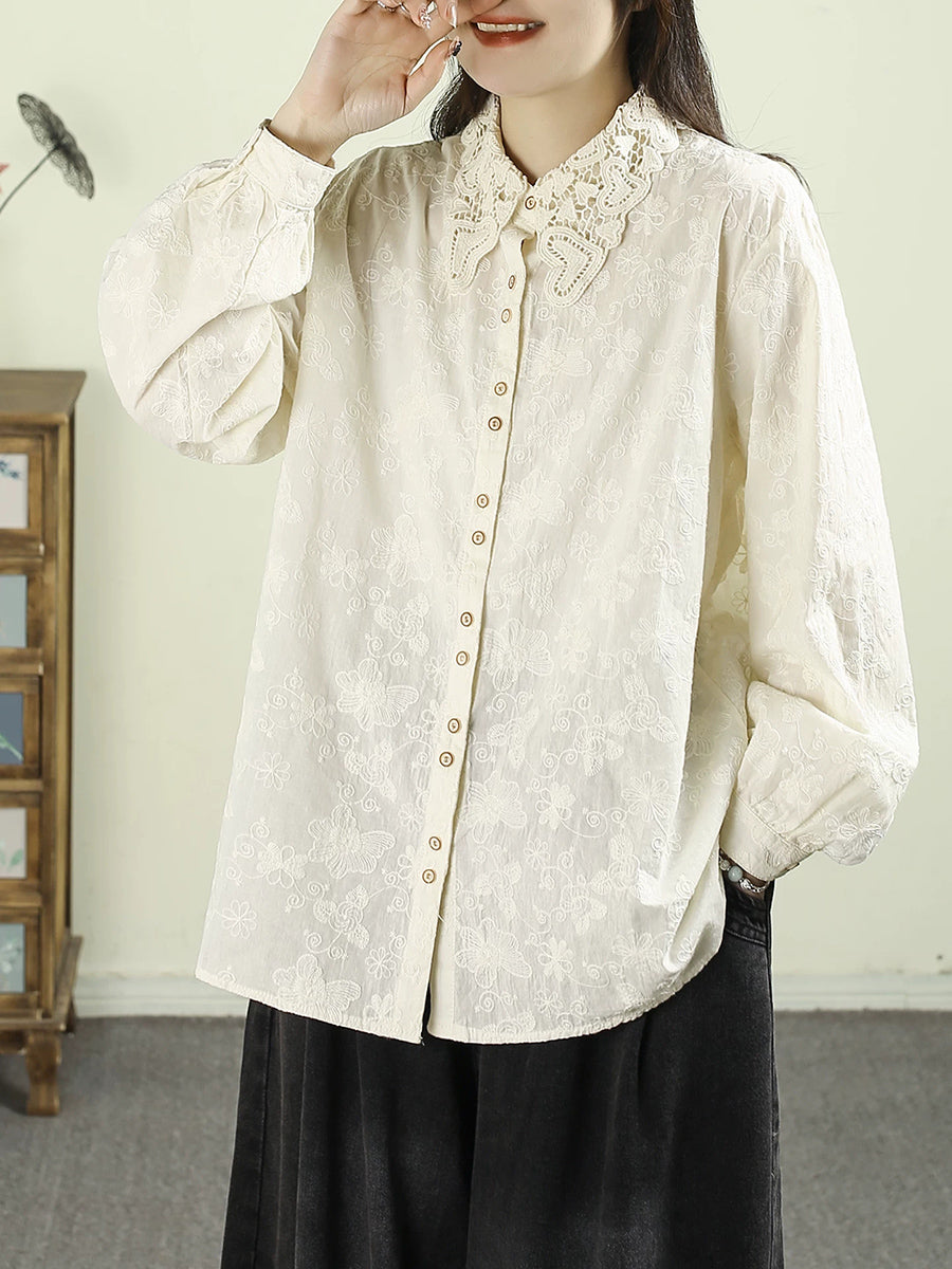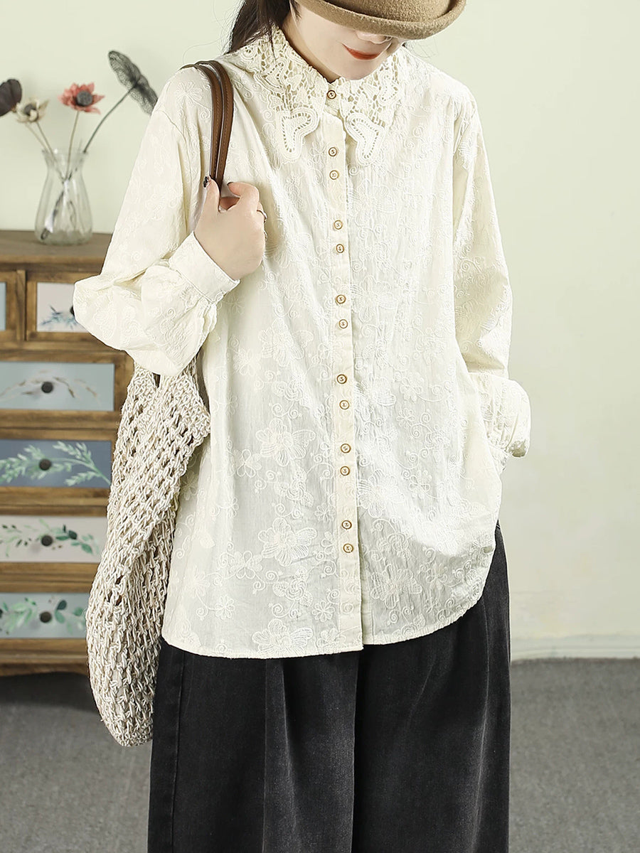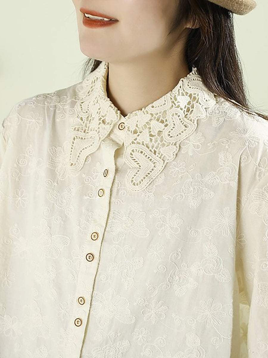قميص نسائي ربيعي مطرز بالدانتيل مصنوع من القطن بنسبة 100%