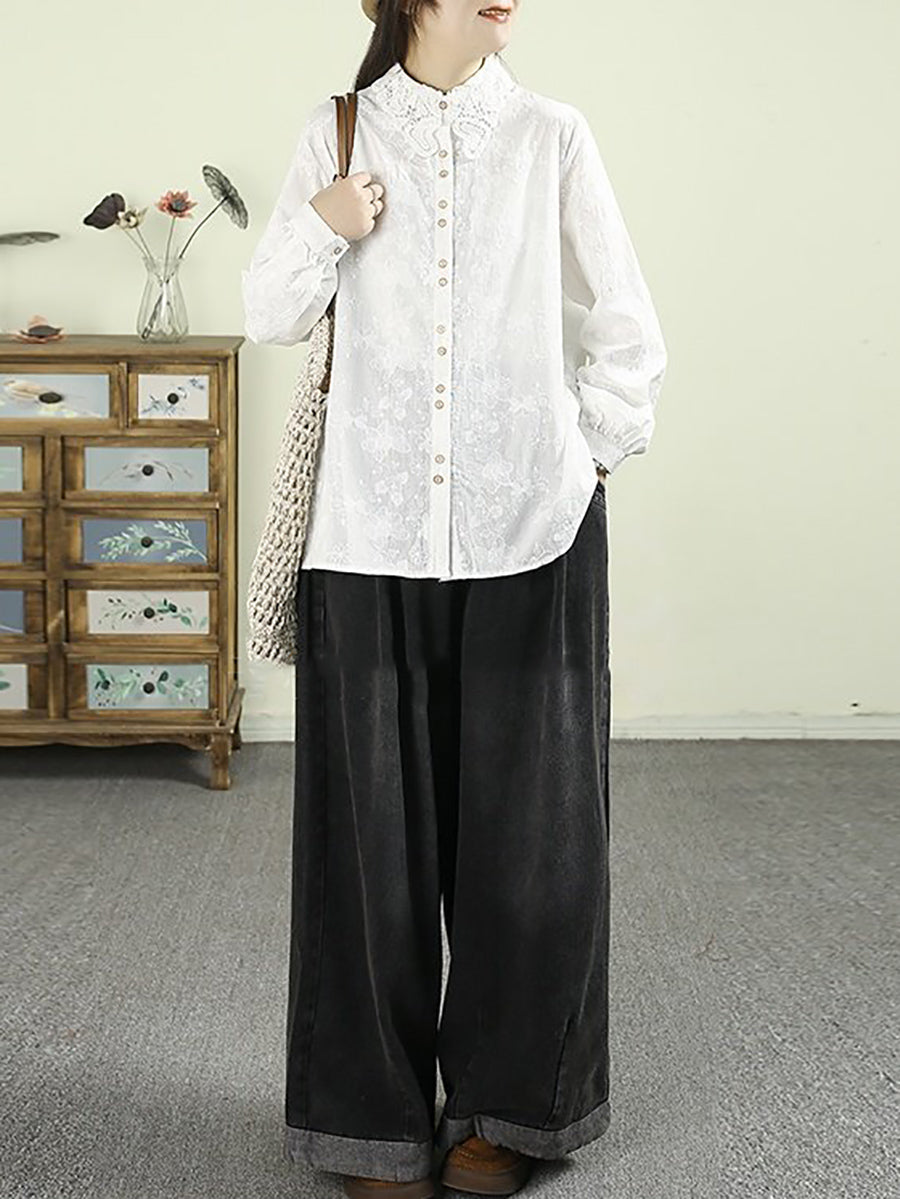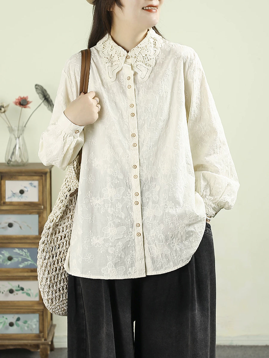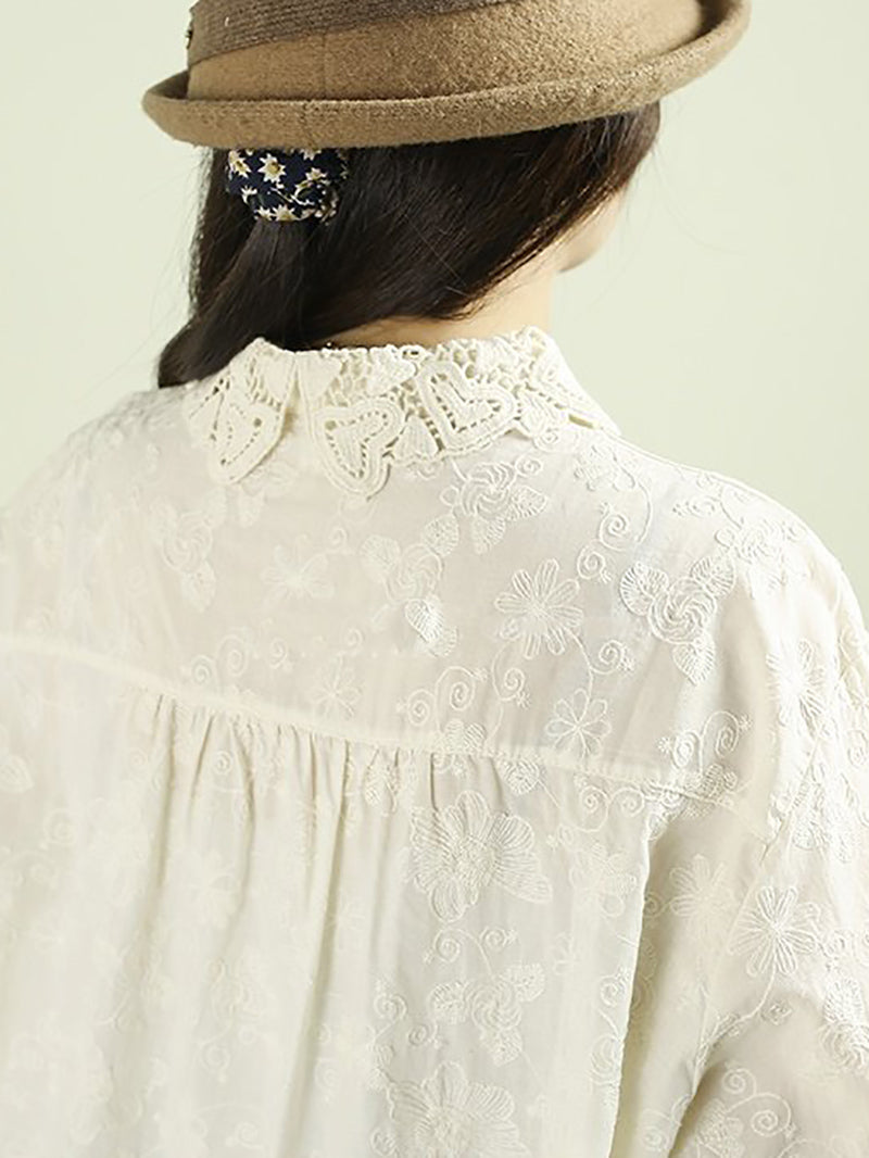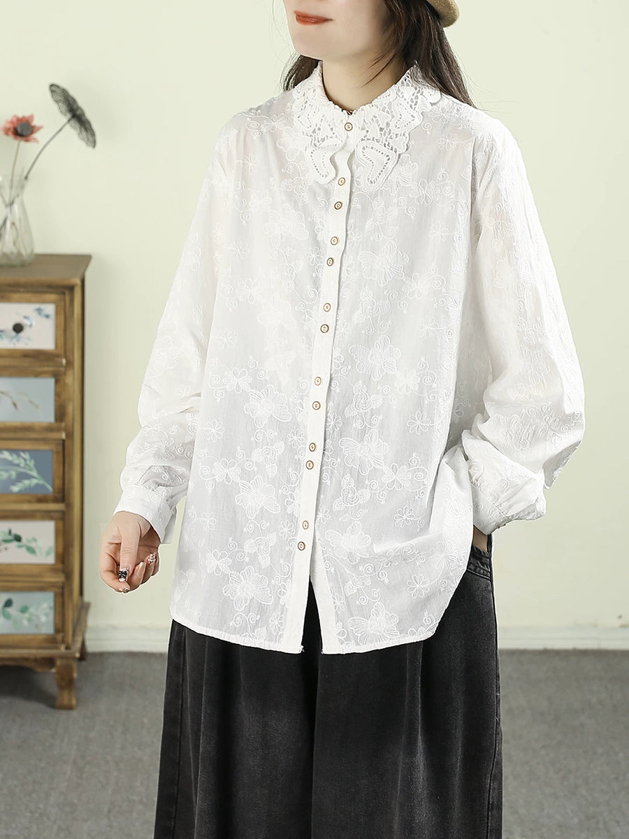 قميص نسائي ربيعي مطرز بالدانتيل مصنوع من القطن بنسبة 100%