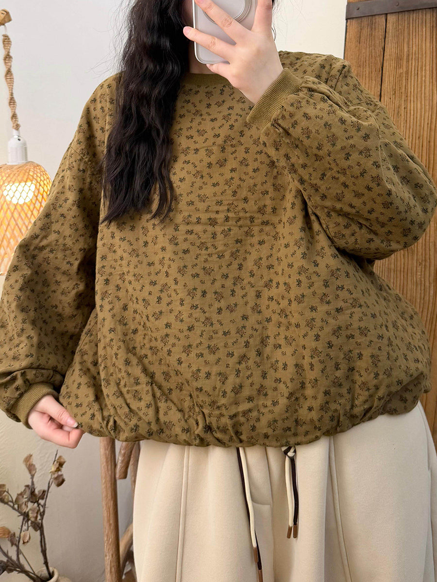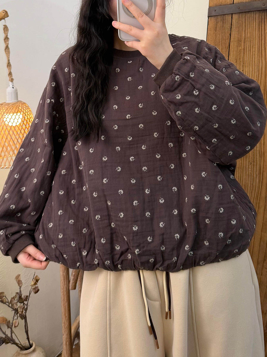 بلوزة نسائية ربيعية مزينة بنقوش زهور، بياقة دائرية مبطنة