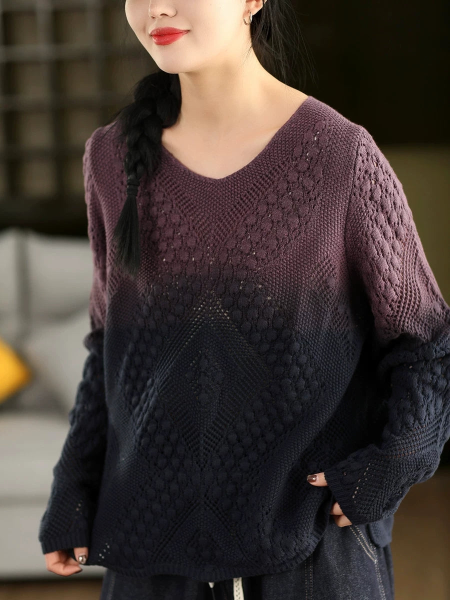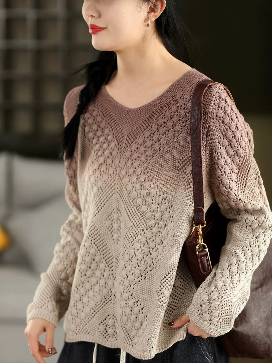 كنزة نسائية برقبة دائرية بألوان متدرجة ربيعية أنيقة