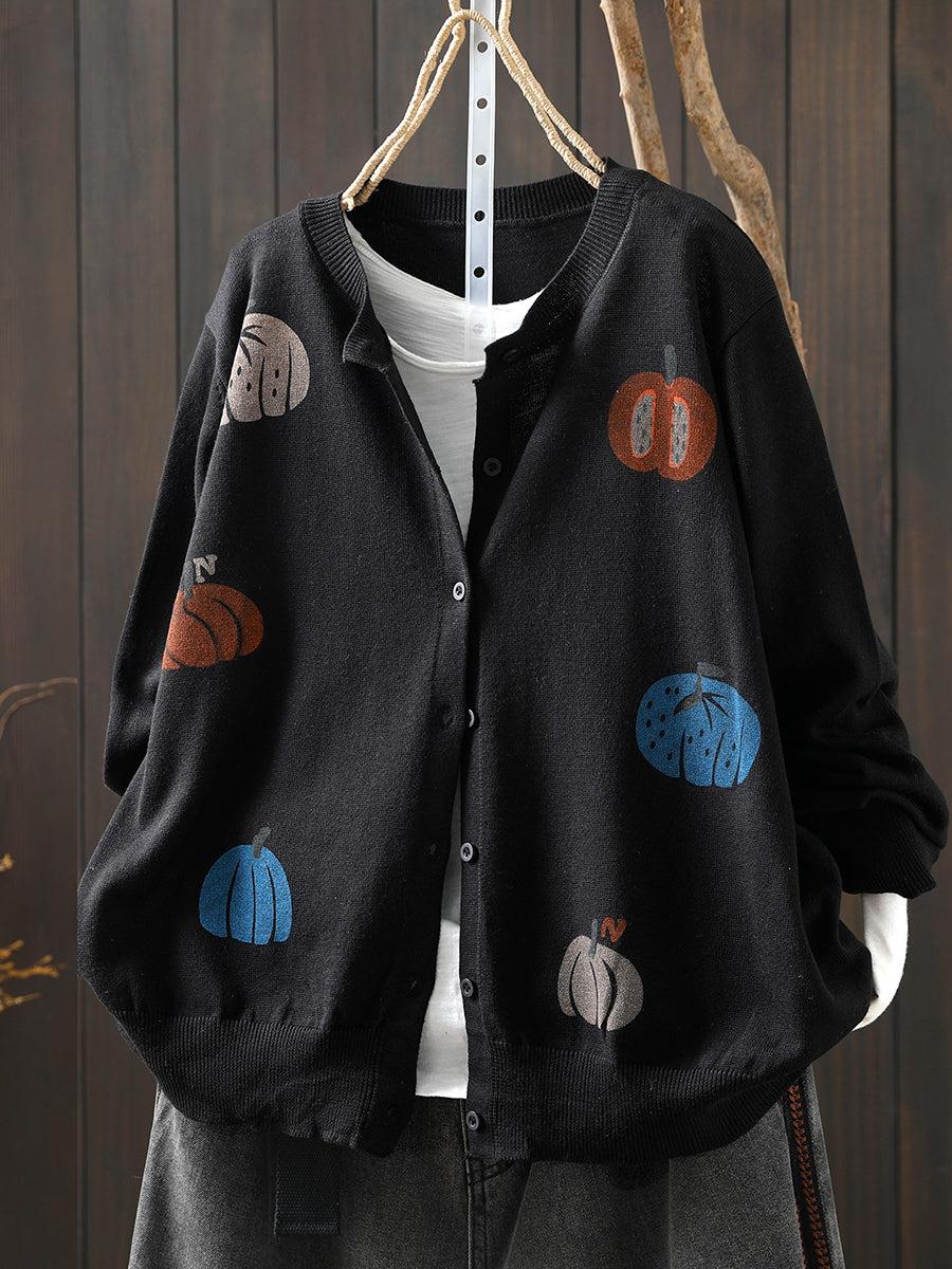 كنزة نسائية فنية ربيعية برقبة دائرية مزينة بنقشة اليقطين