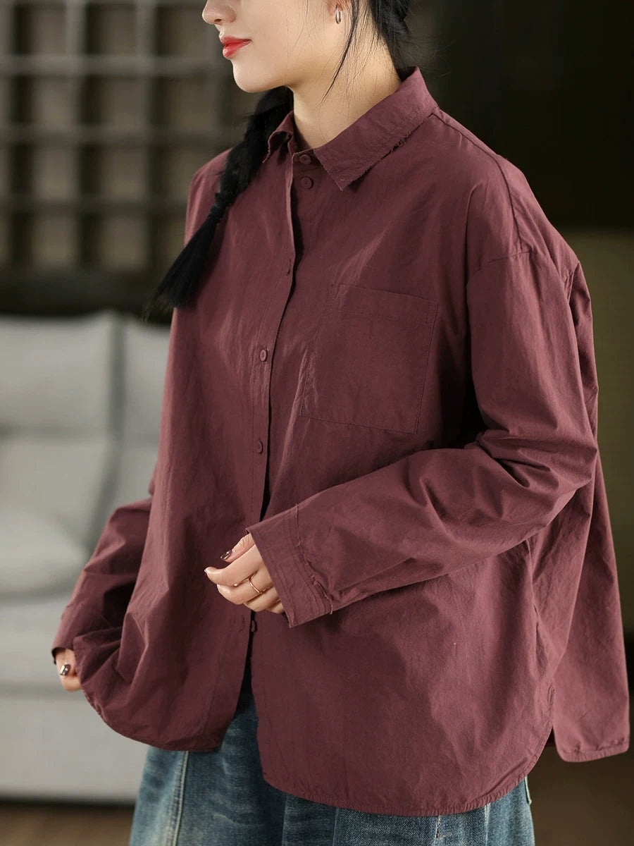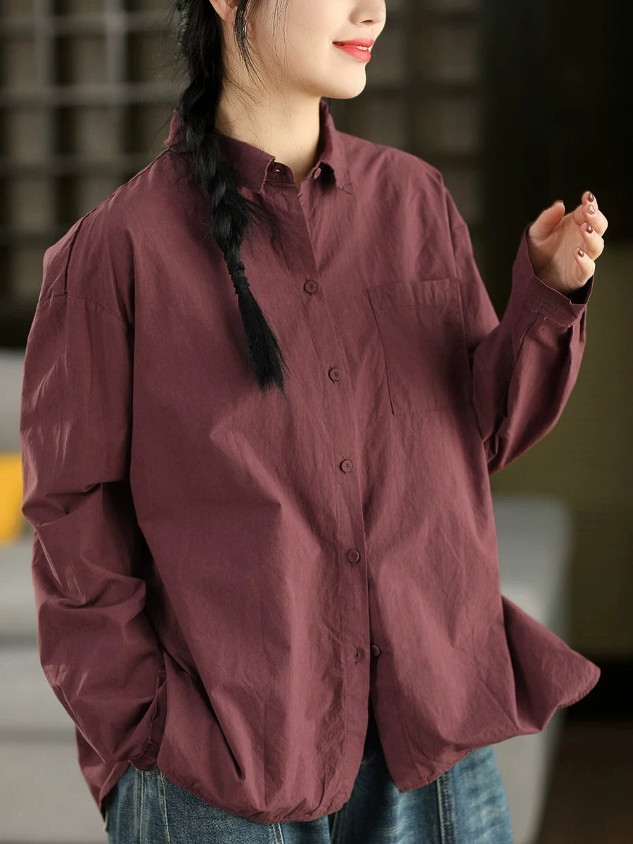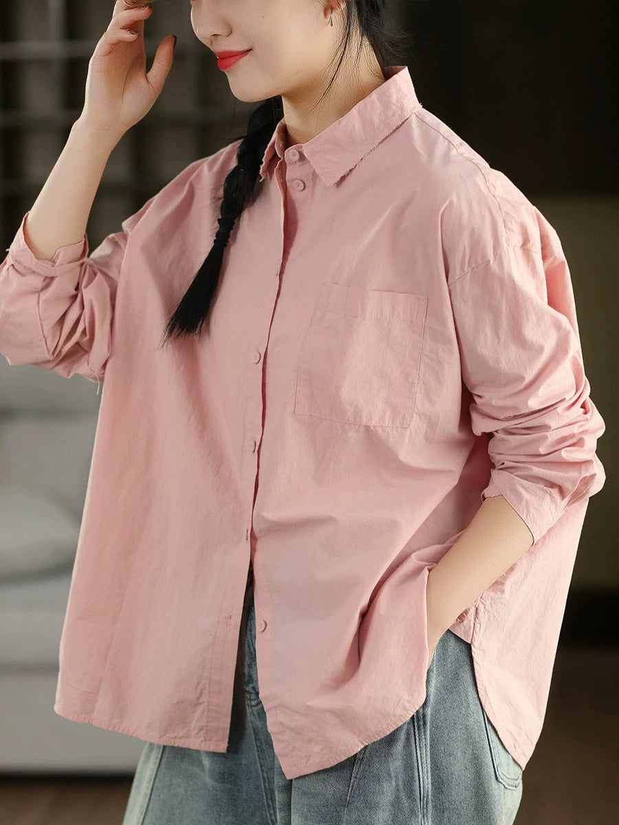 قميص نسائي ربيعي أنيق بلون موحد مصنوع من القطن الخالص 100%