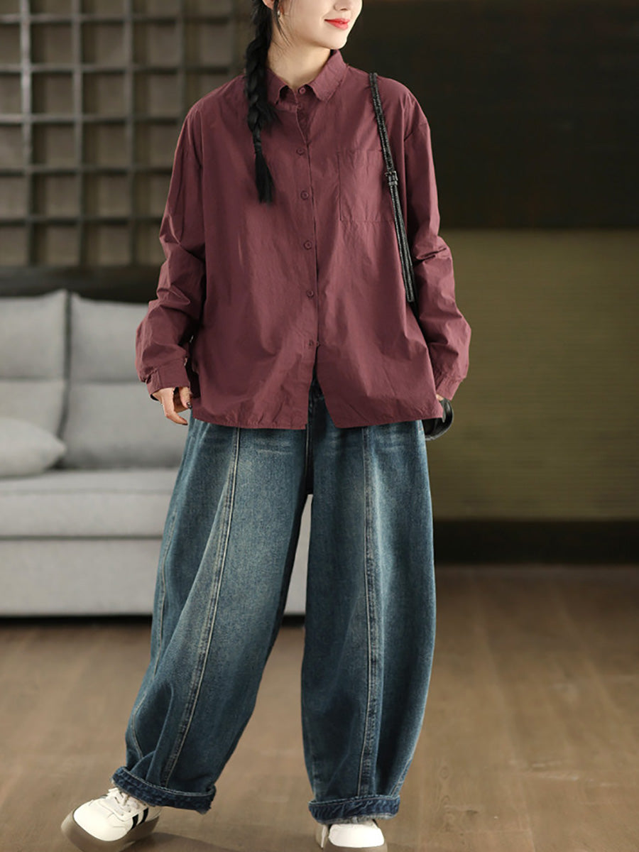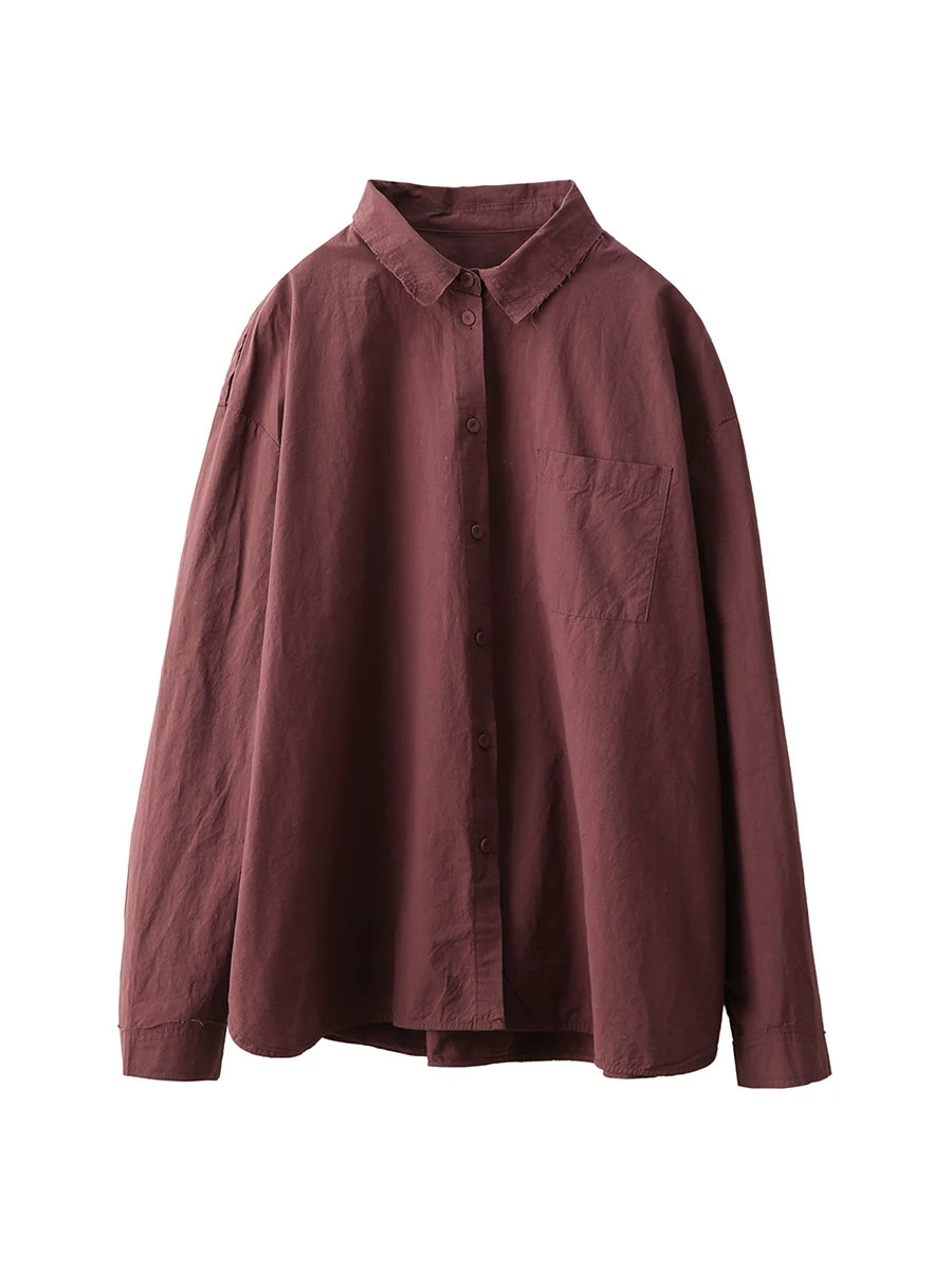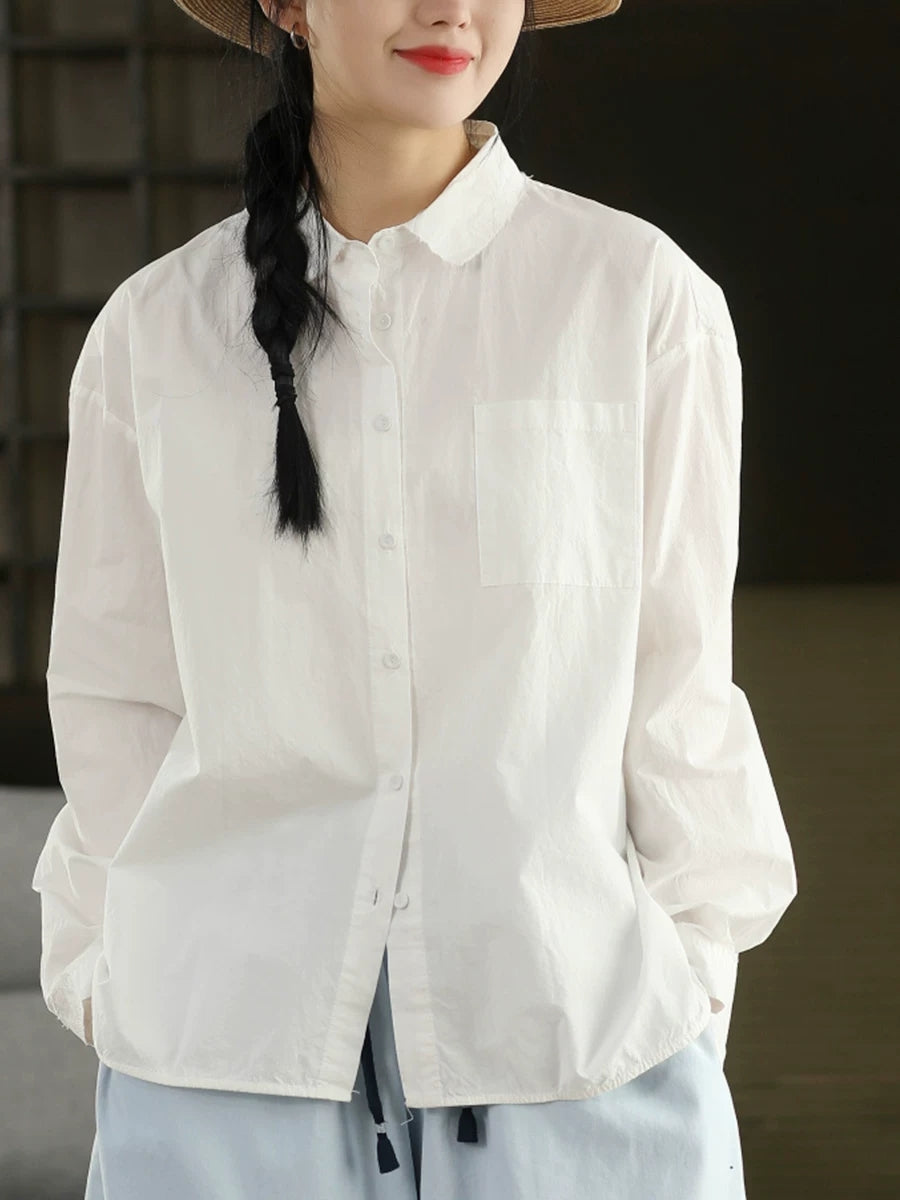 قميص نسائي ربيعي أنيق بلون موحد مصنوع من القطن الخالص 100%