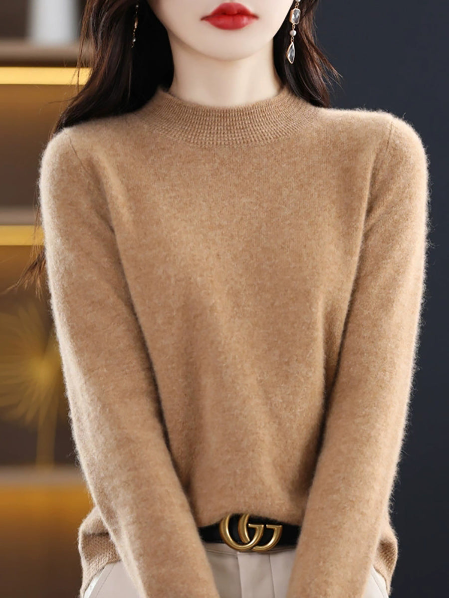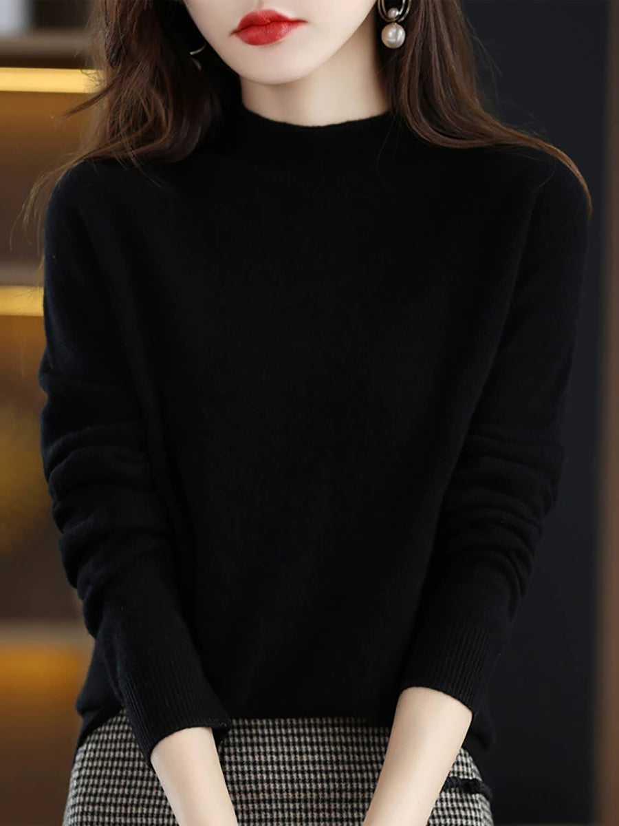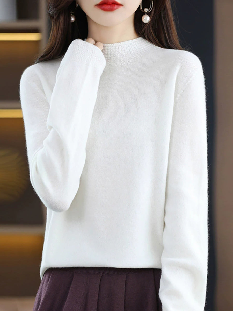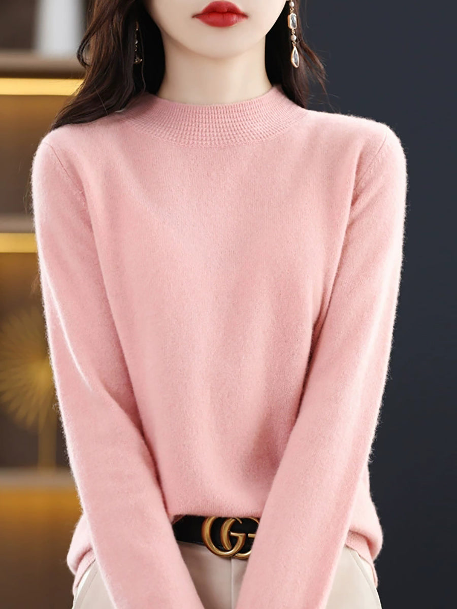 كنزة نسائية ربيعية أنيقة بلون موحد بياقة نصف مدورة