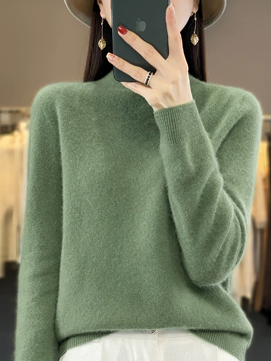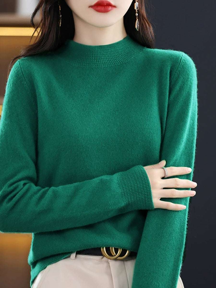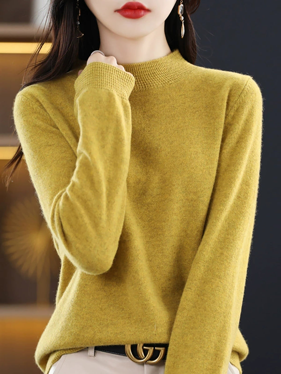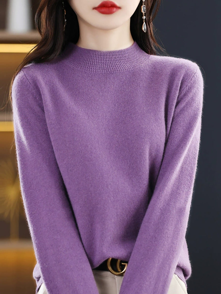 كنزة نسائية ربيعية أنيقة بلون موحد بياقة نصف مدورة
