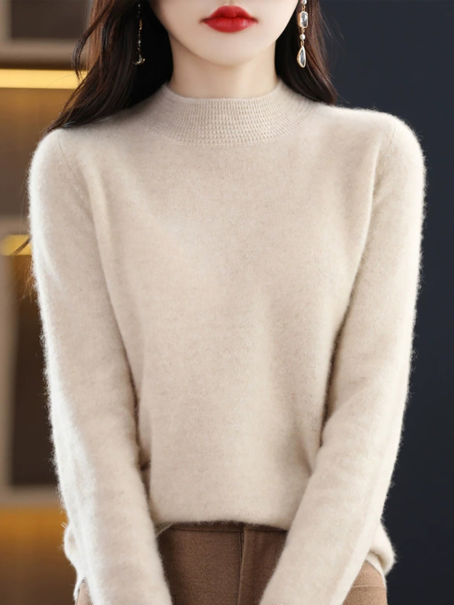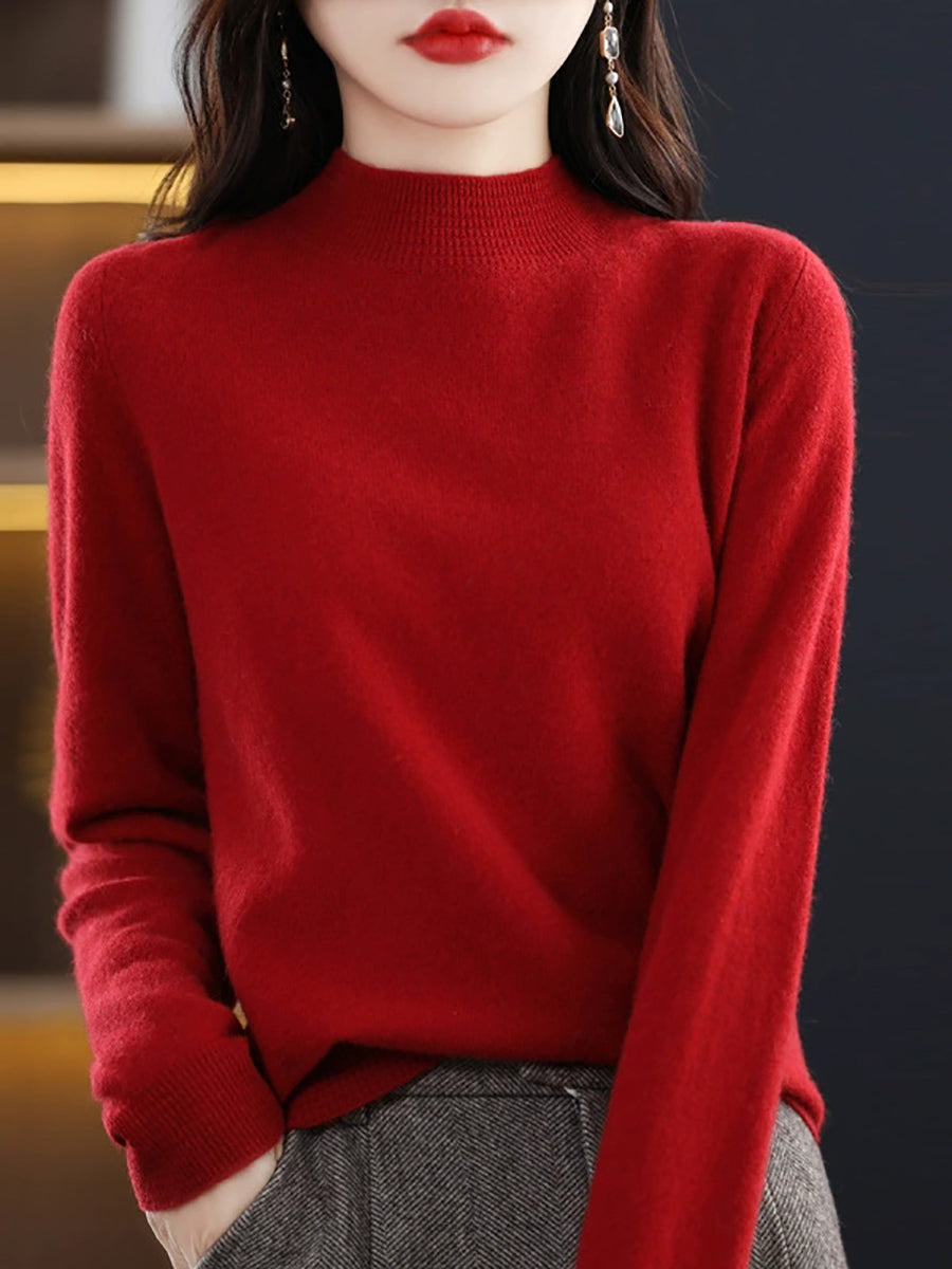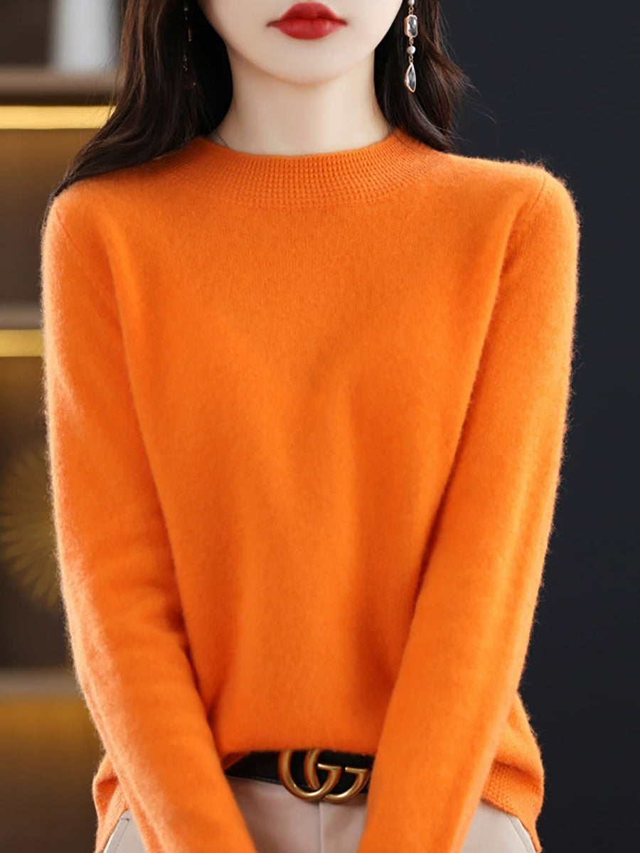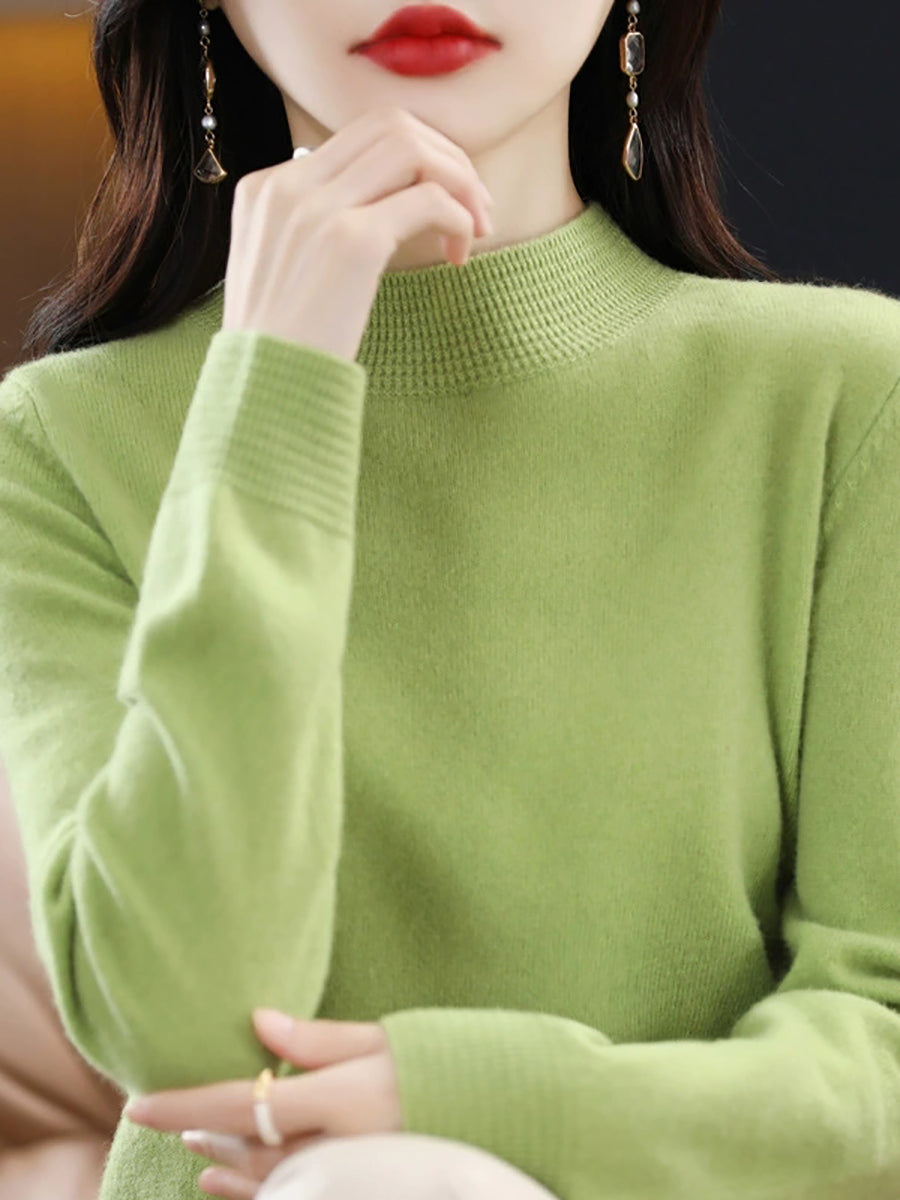 كنزة نسائية ربيعية أنيقة بلون موحد بياقة نصف مدورة