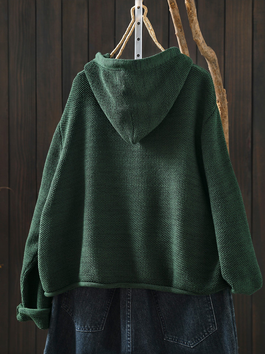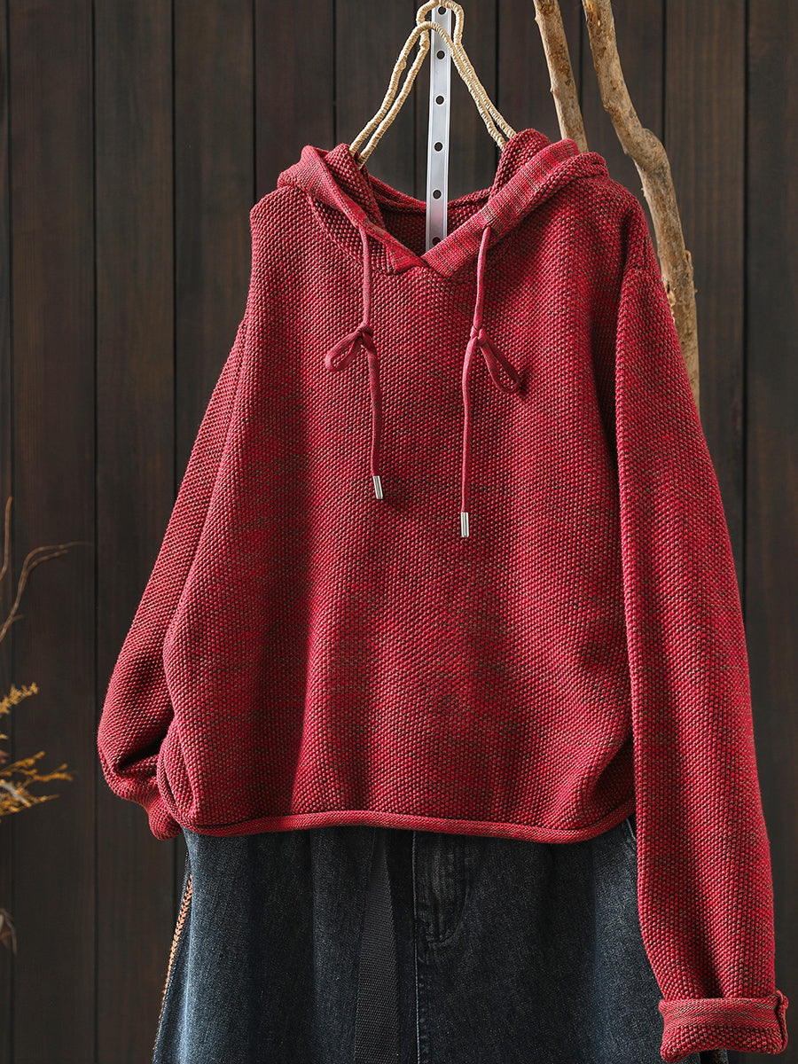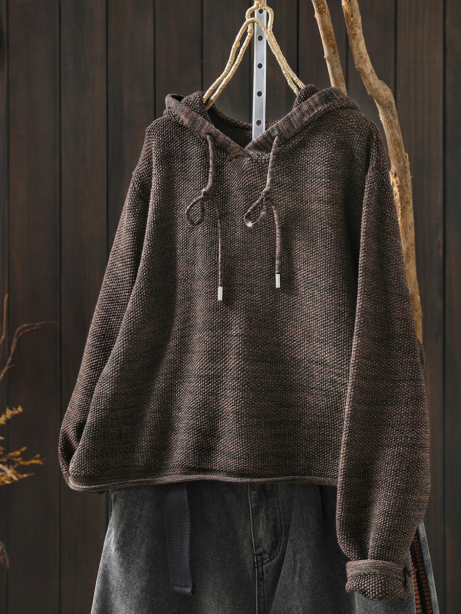 كنزة نسائية ربيعية أنيقة بغطاء رأس بلون موحد