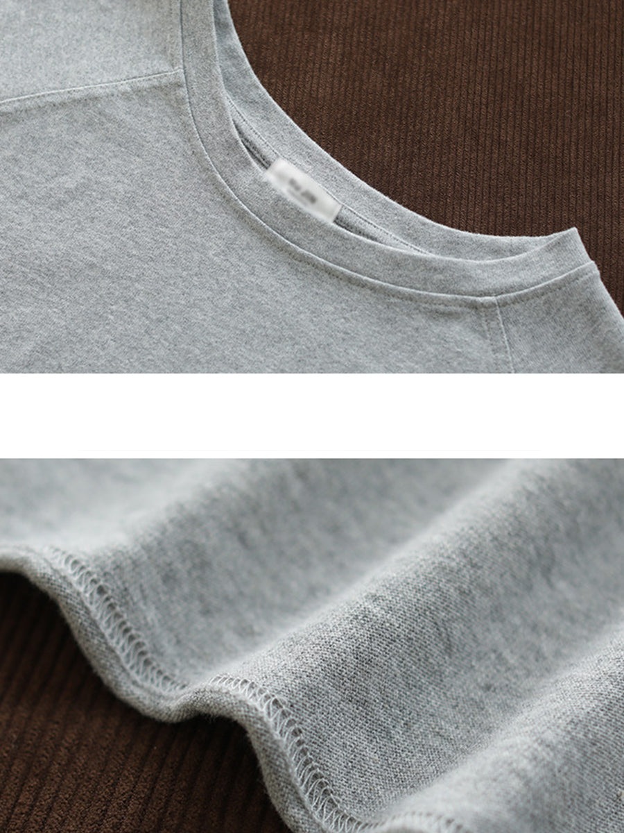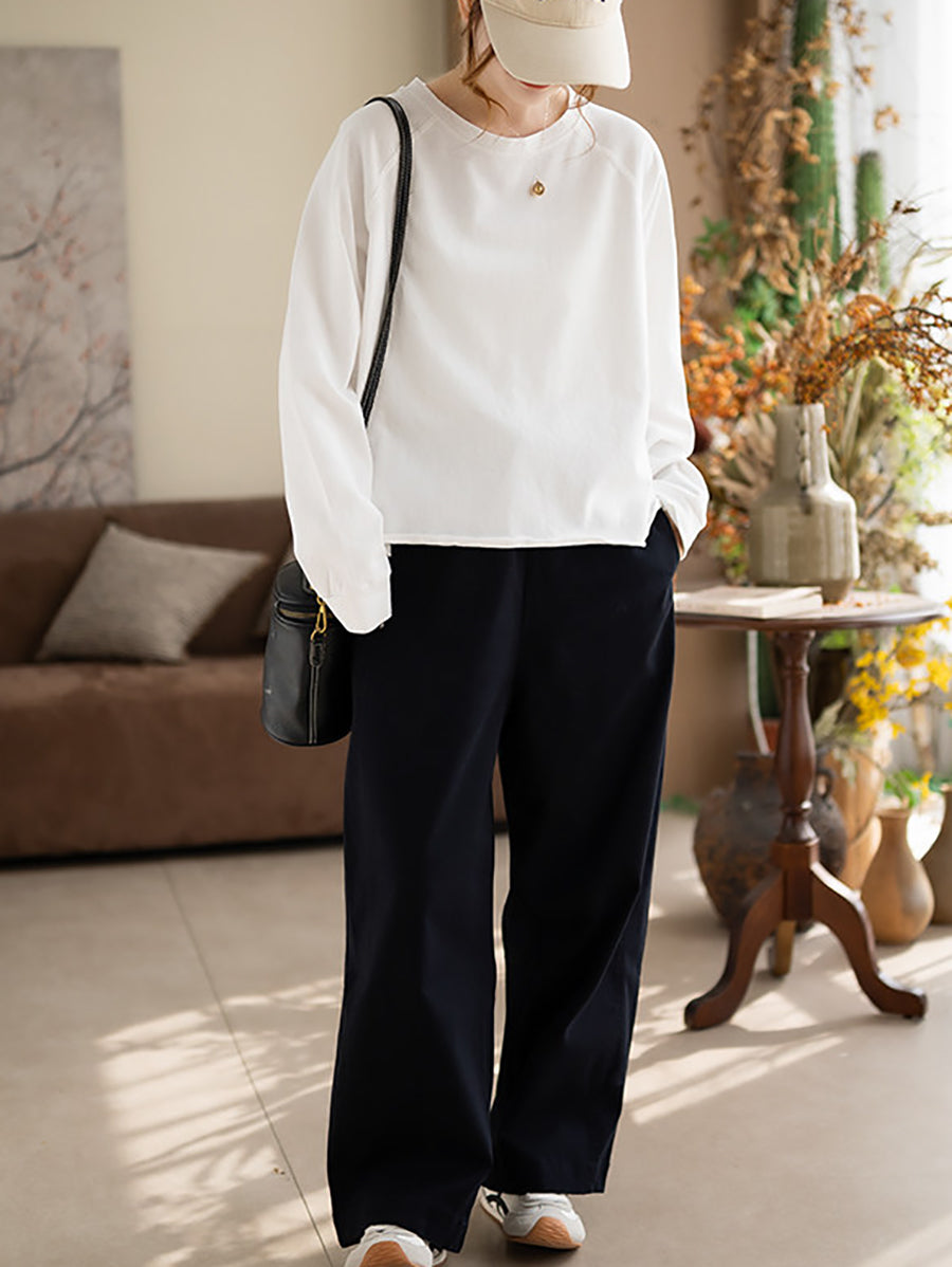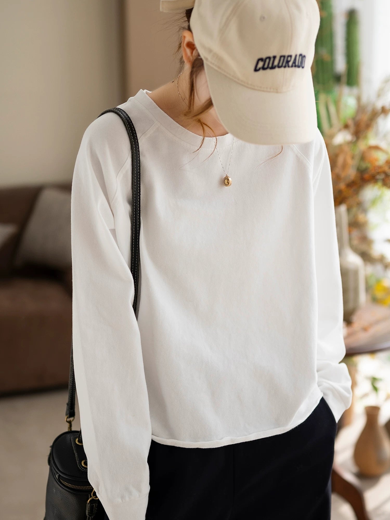 بلوزة قطنية نسائية ربيعية أنيقة بلون موحد وياقة دائرية