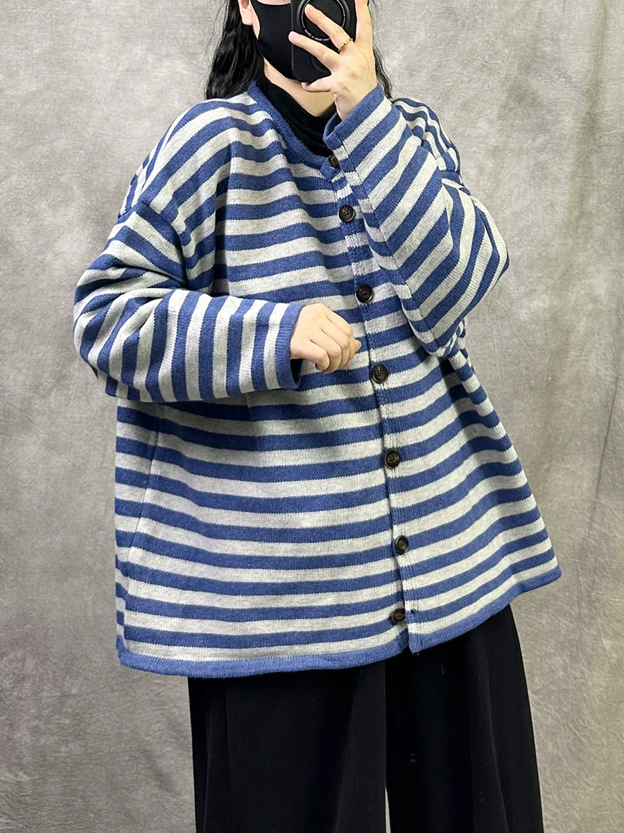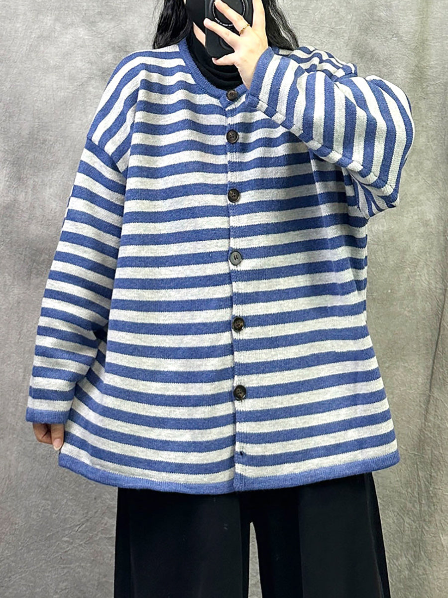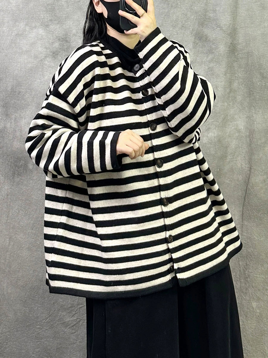 معطف نسائي قطني مخطط بنمط ربيعي فني بياقة دائرية
