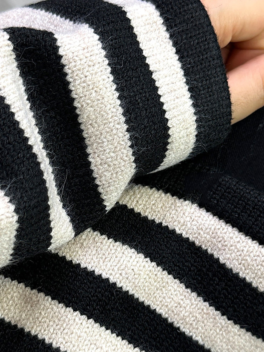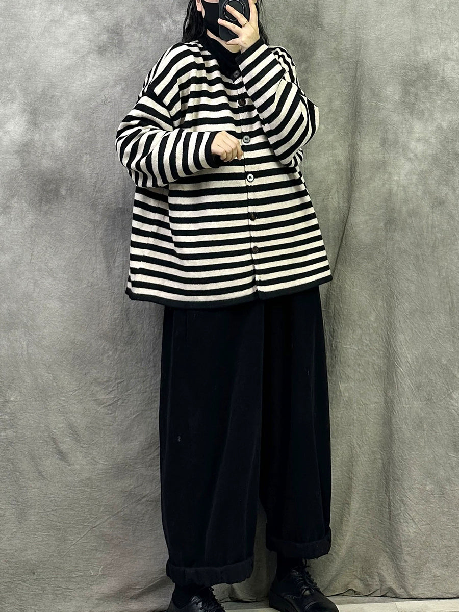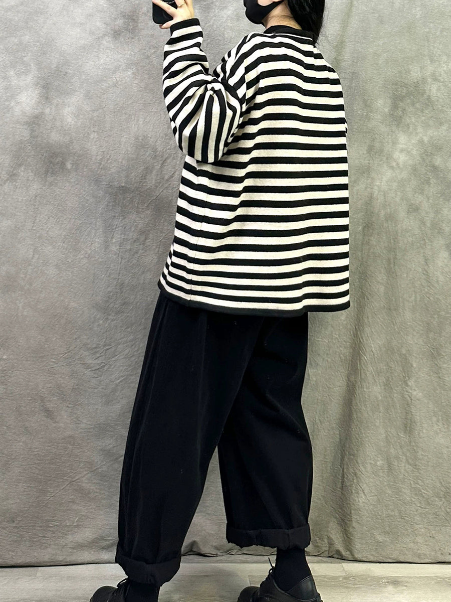 معطف نسائي قطني مخطط بنمط ربيعي فني بياقة دائرية