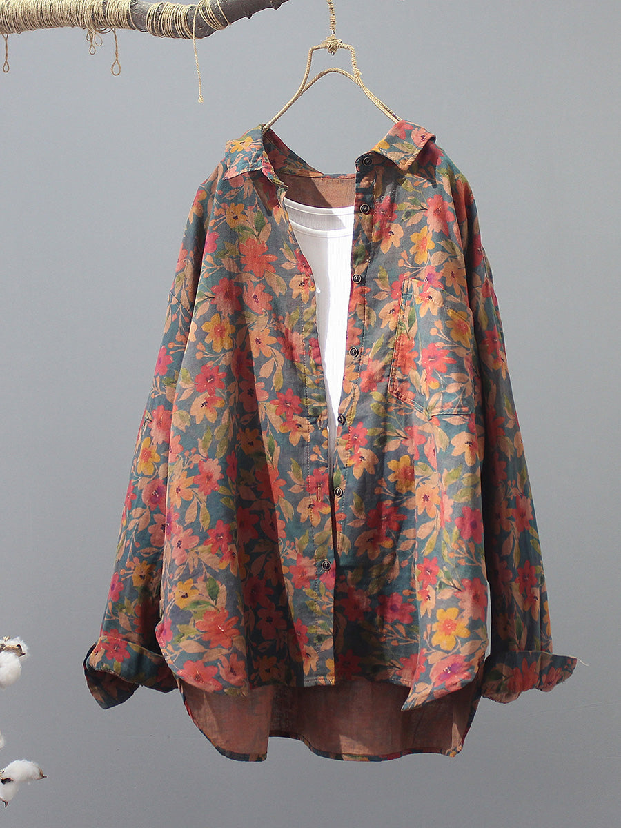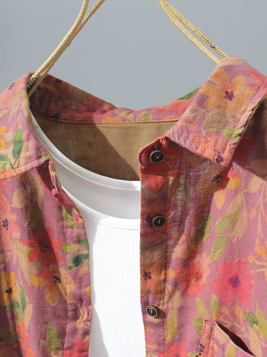 بلوزة نسائية صيفية مزينة بالزهور، مصنوعة من القطن الخالص 100%