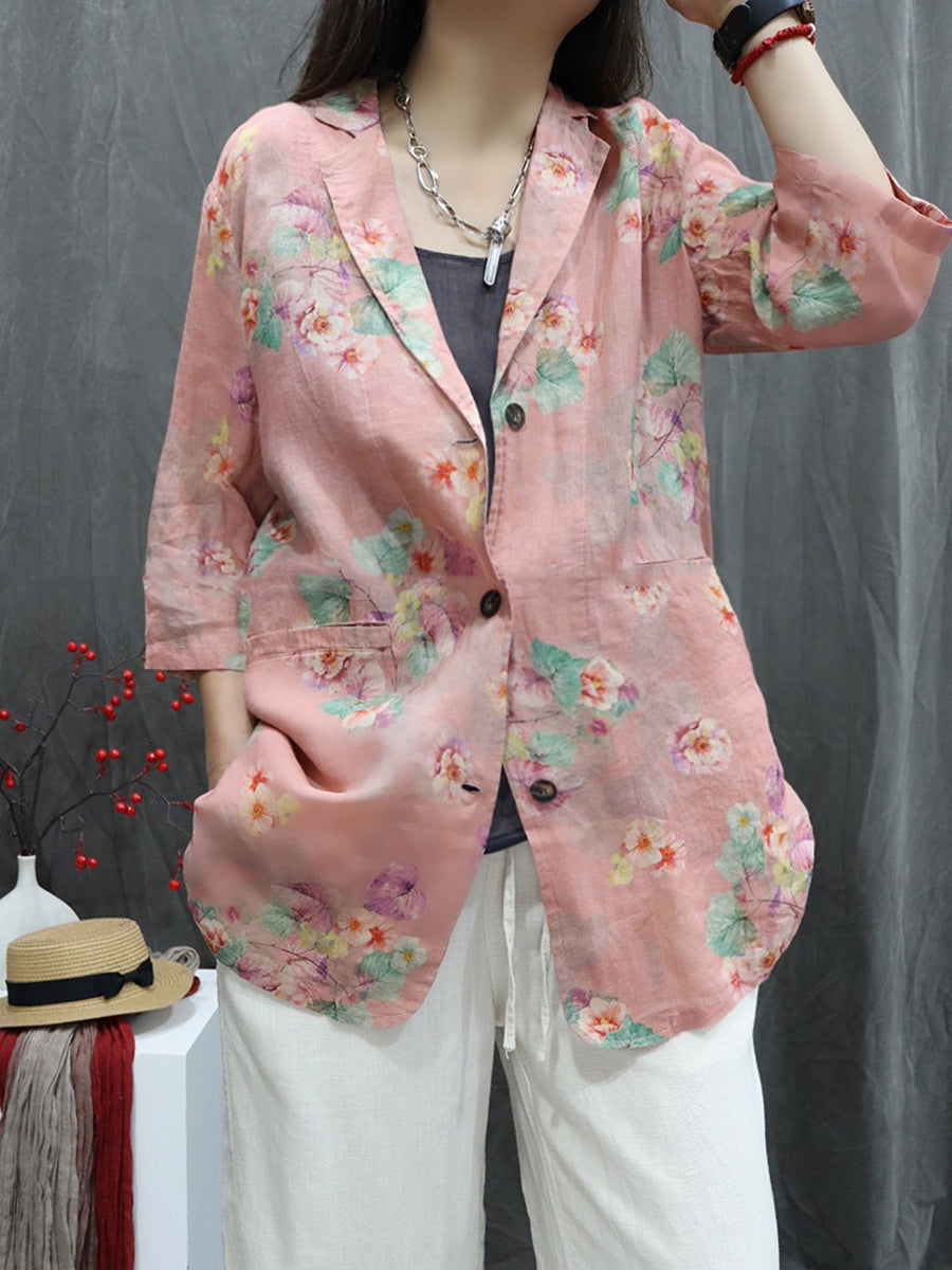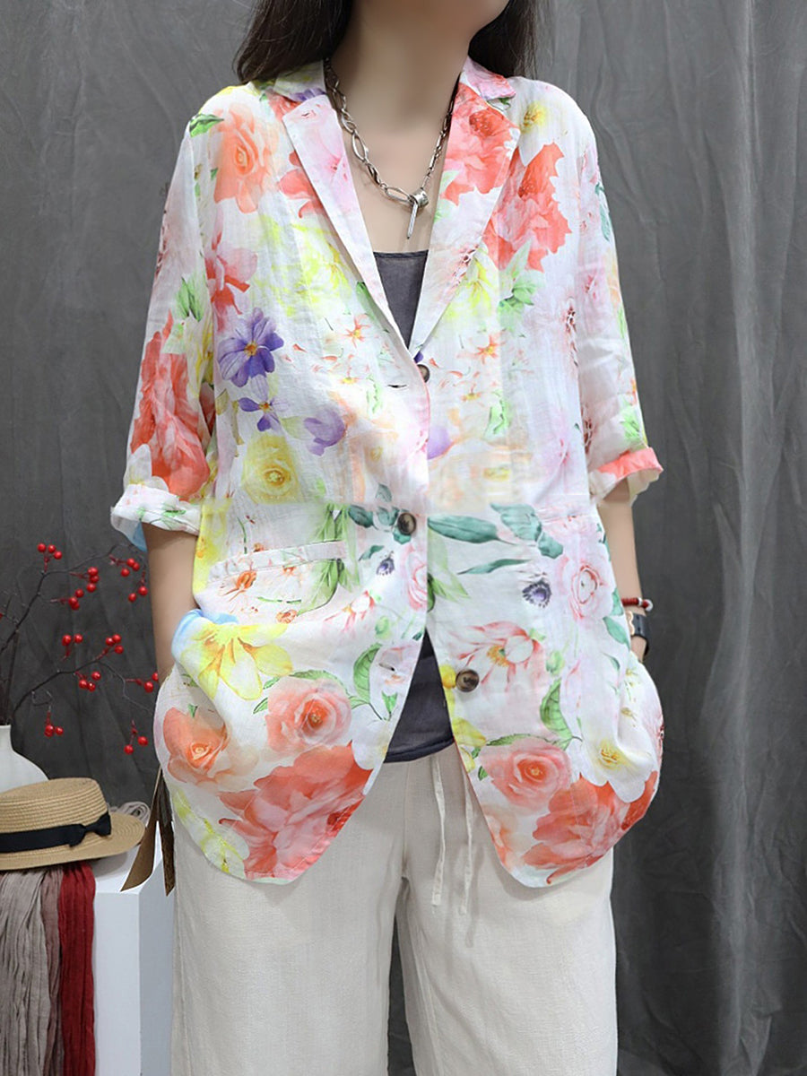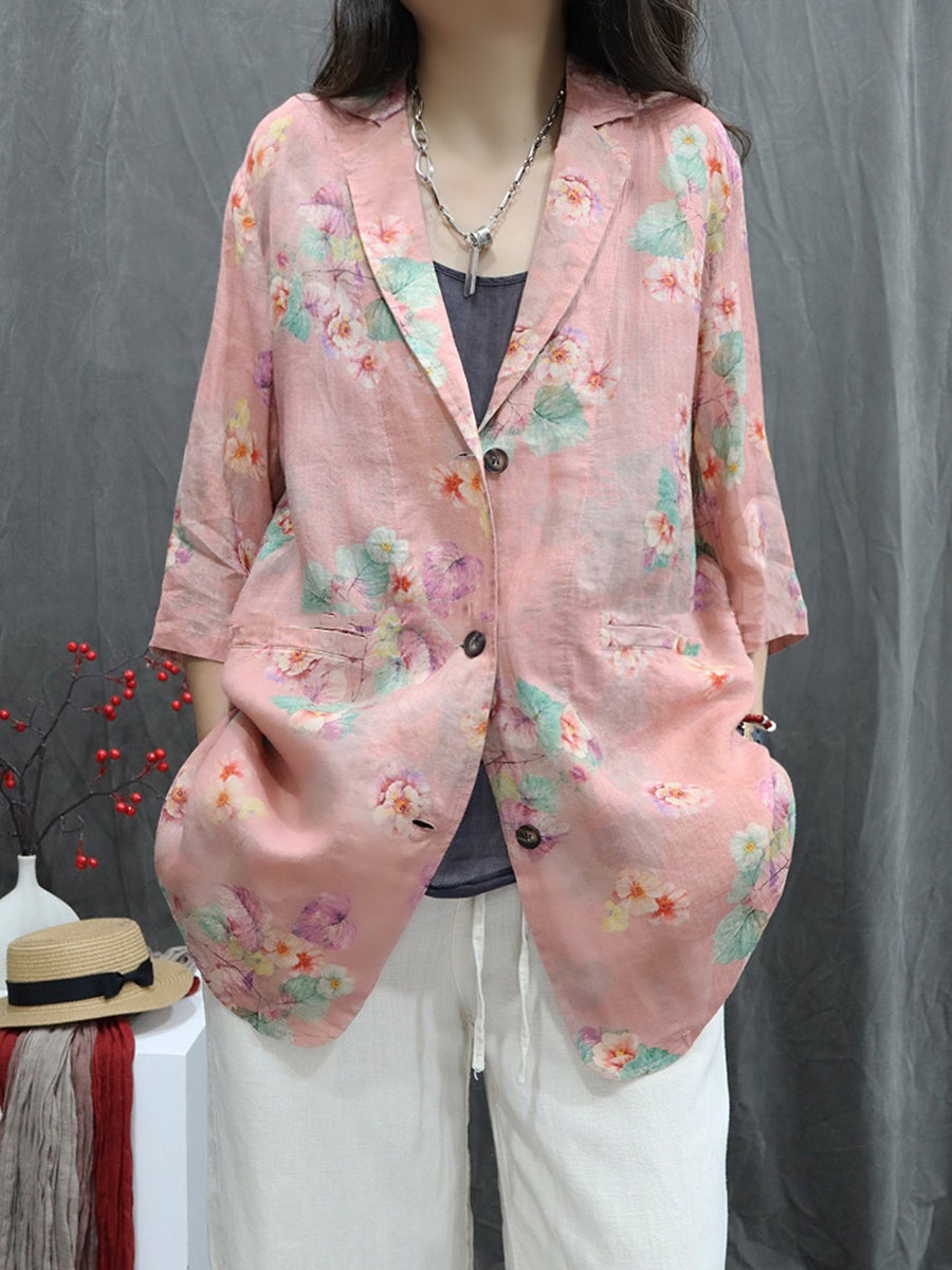 معطف نسائي صيفي مزين بالزهور، مصنوع من قماش الرامي بنسبة 100%