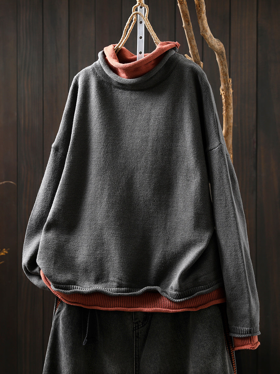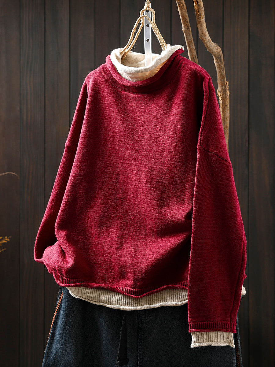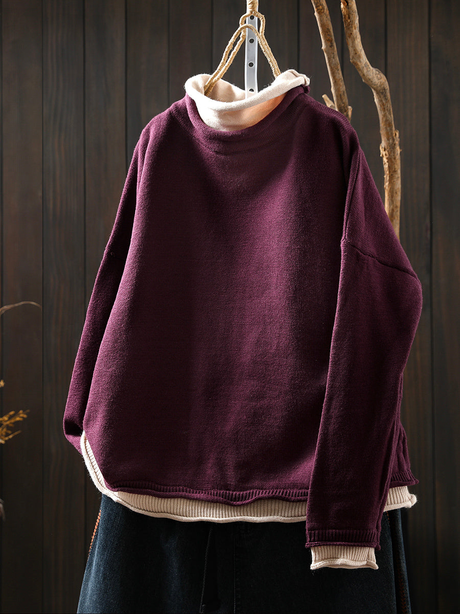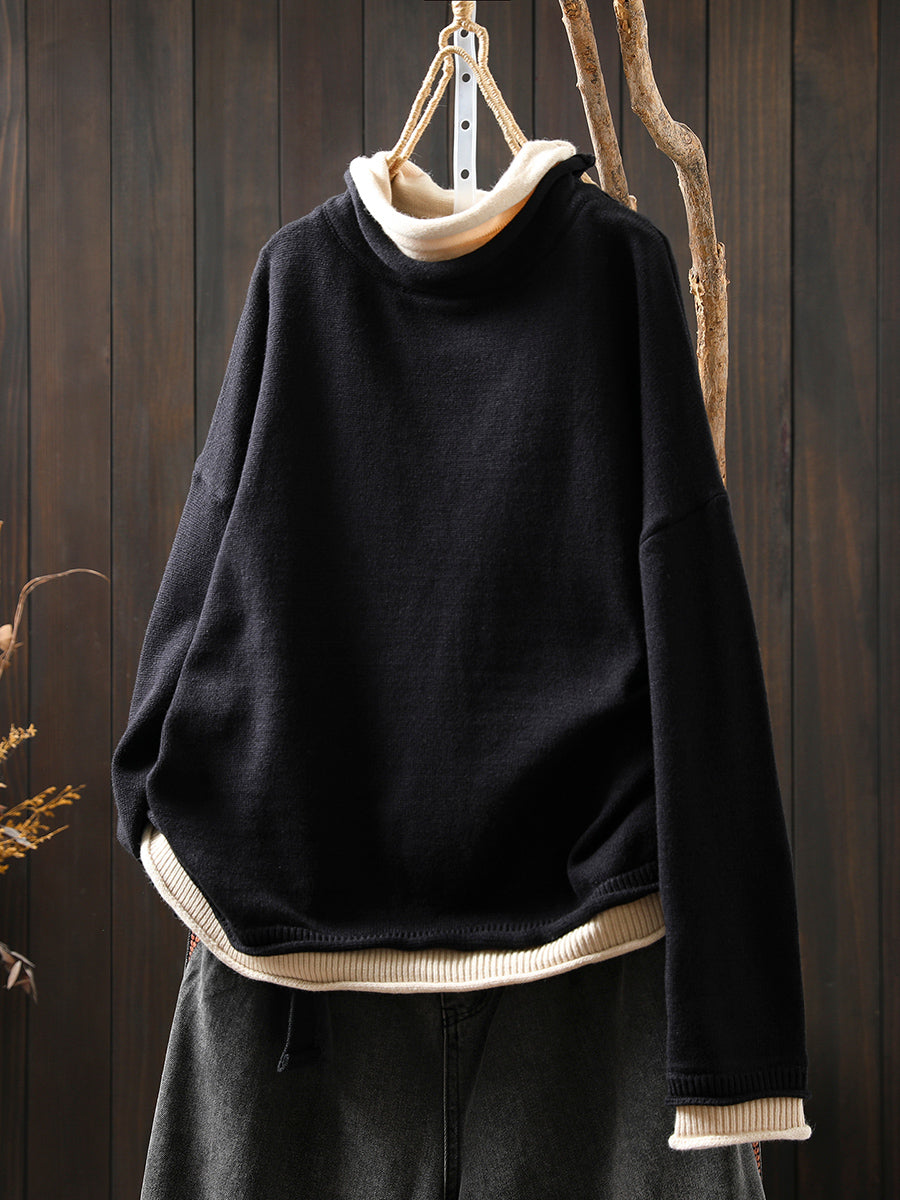 كنزة نسائية خريفية فنية بياقة عالية مزيفة