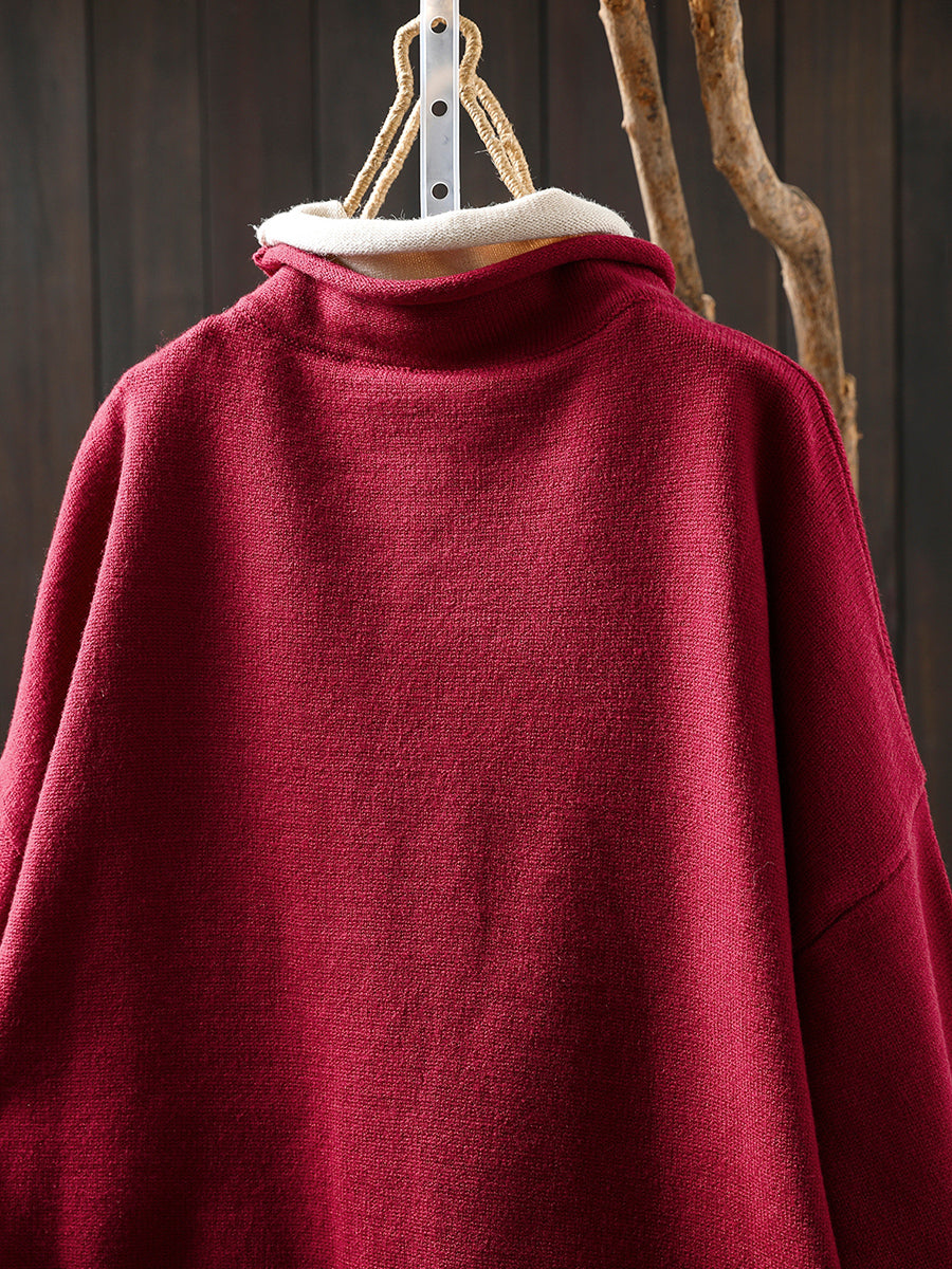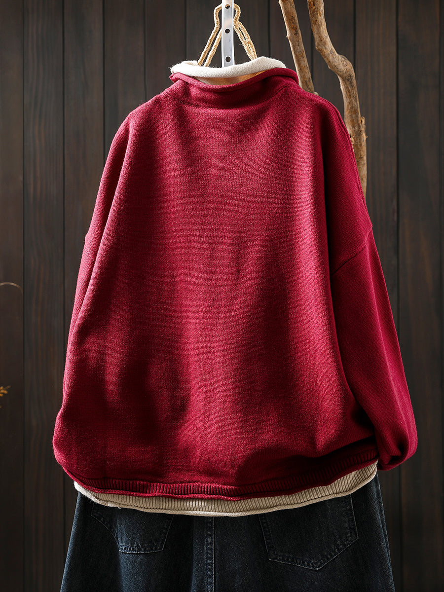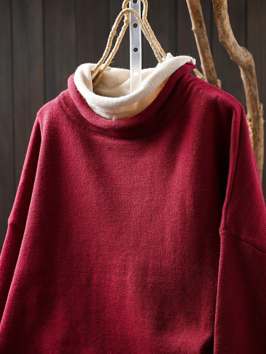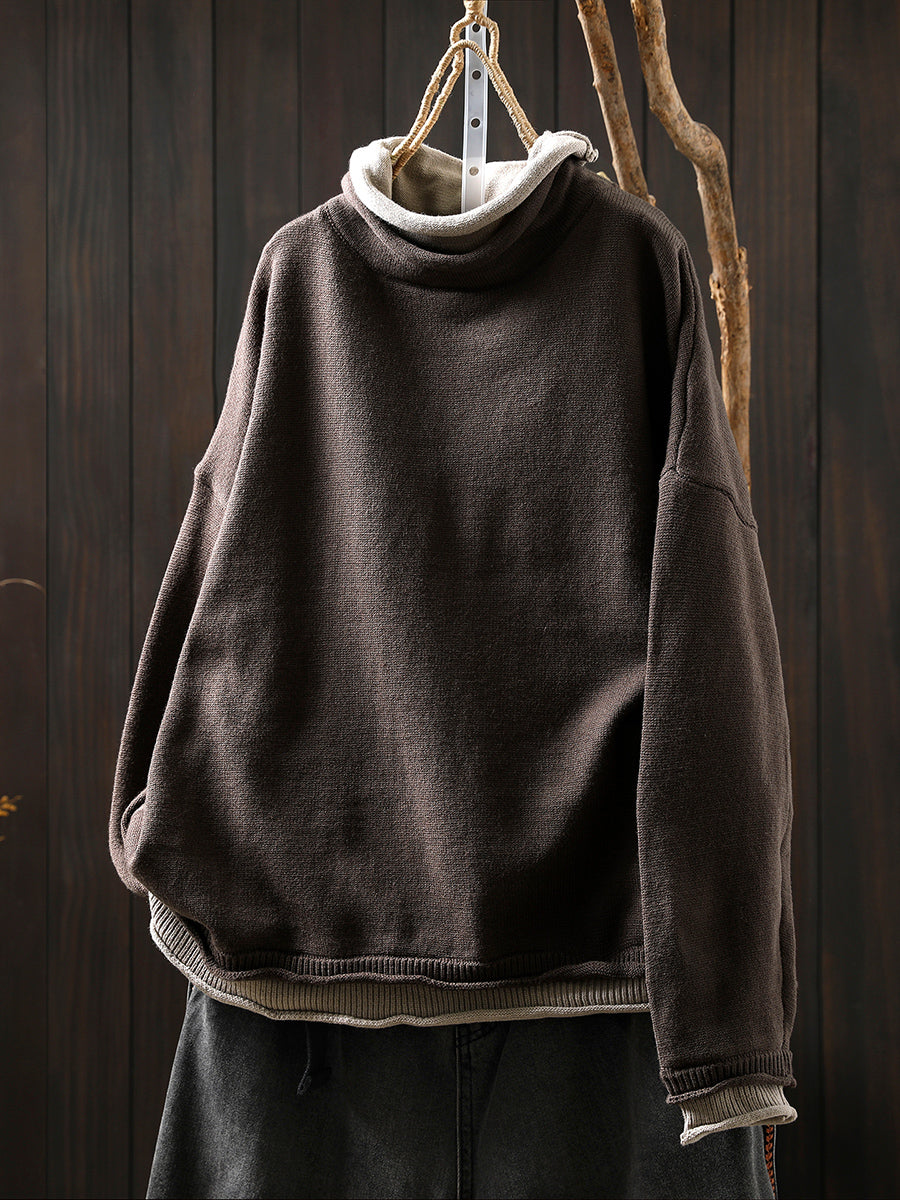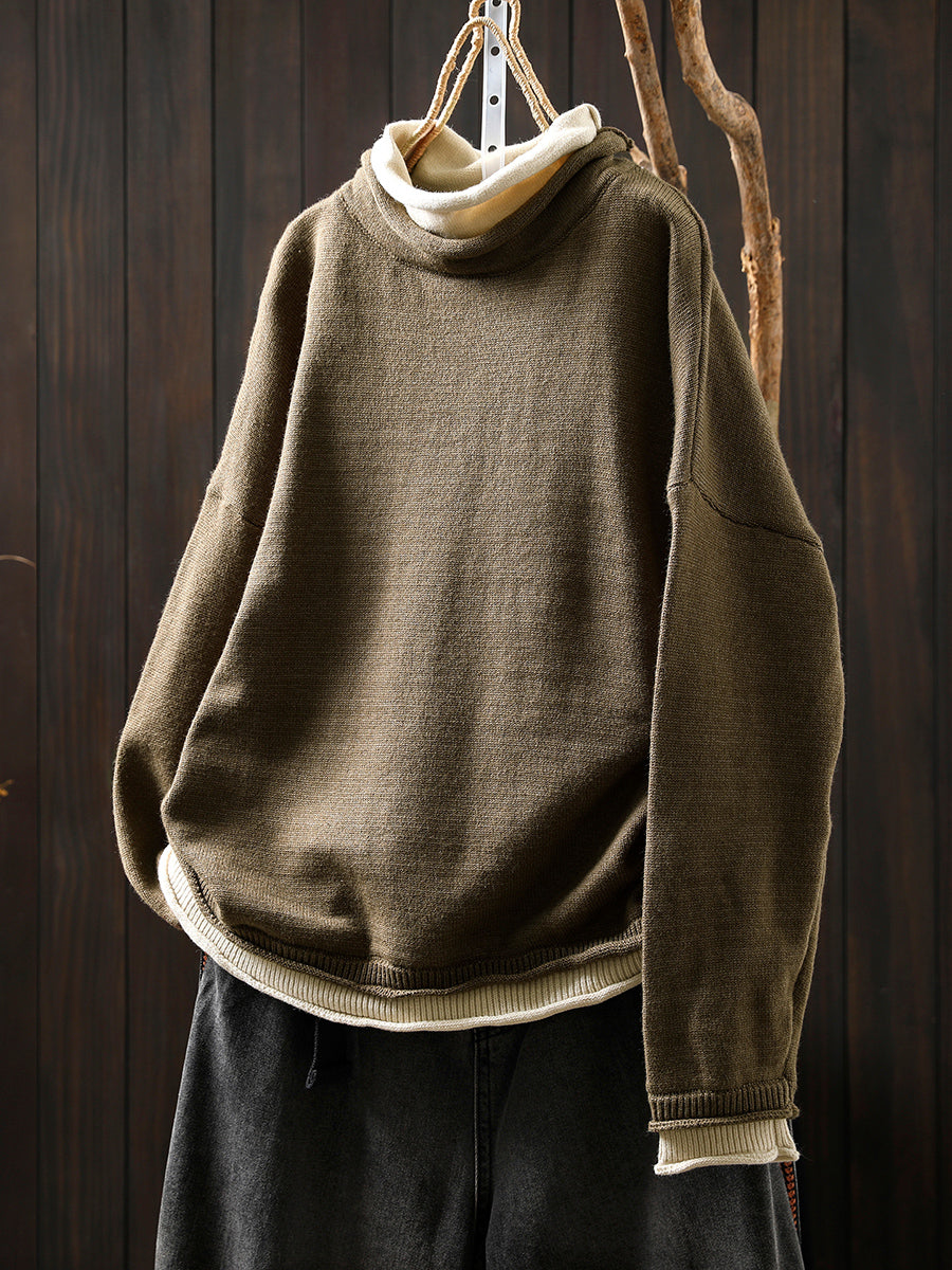 كنزة نسائية خريفية فنية بياقة عالية مزيفة