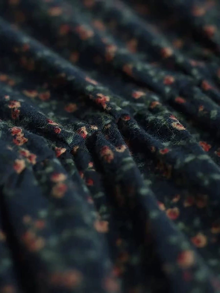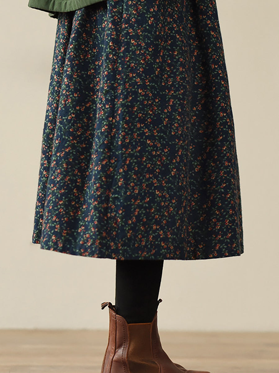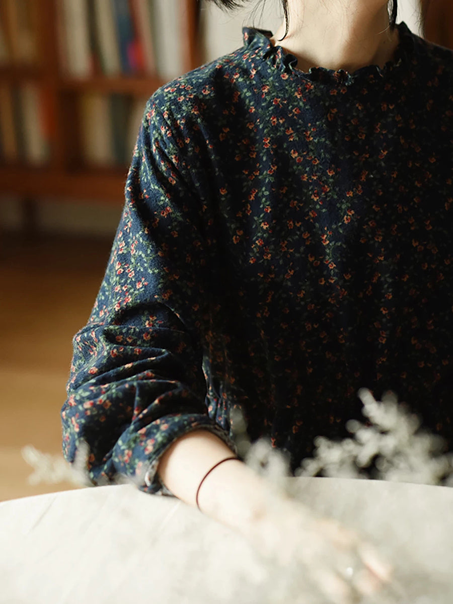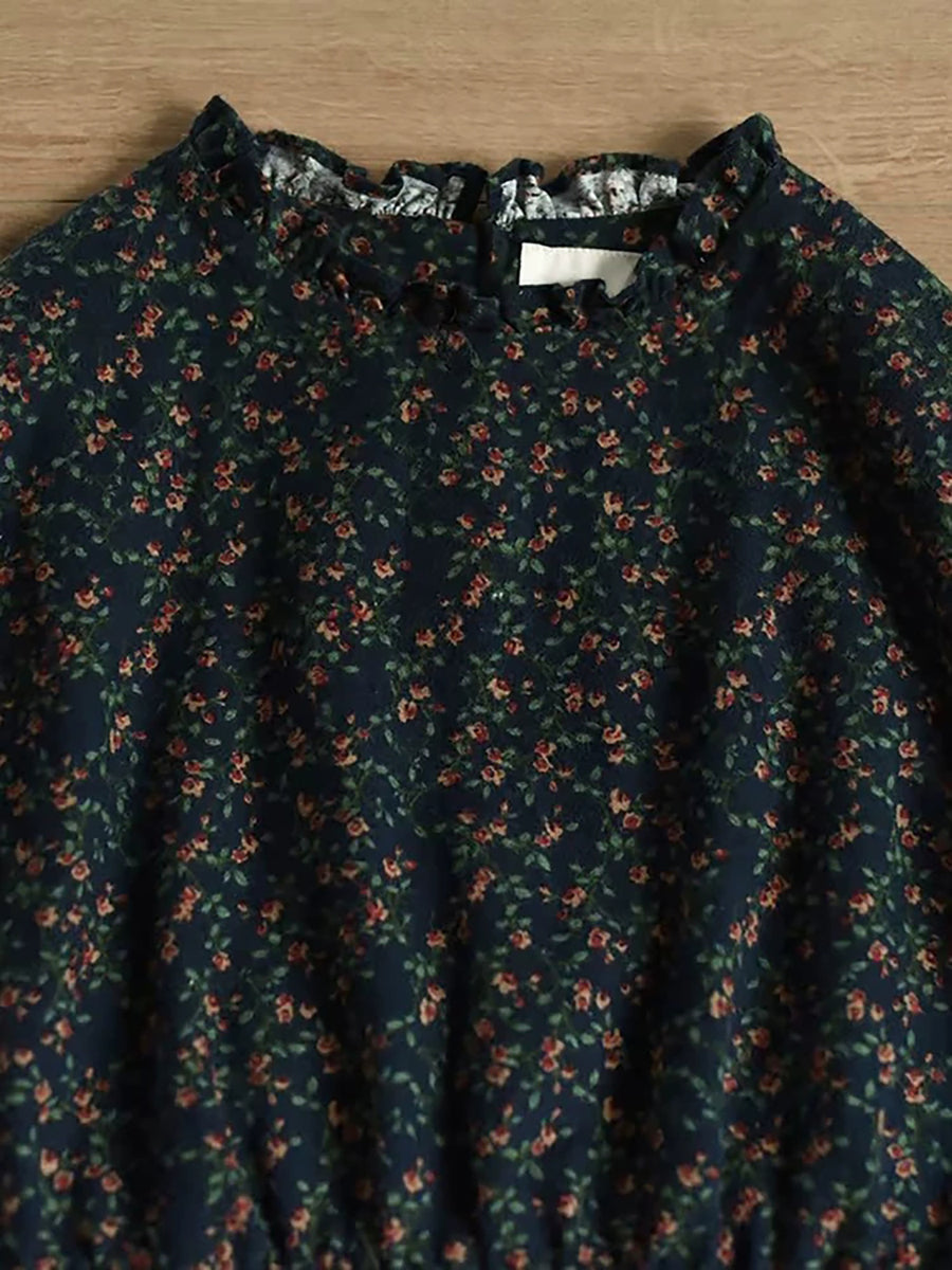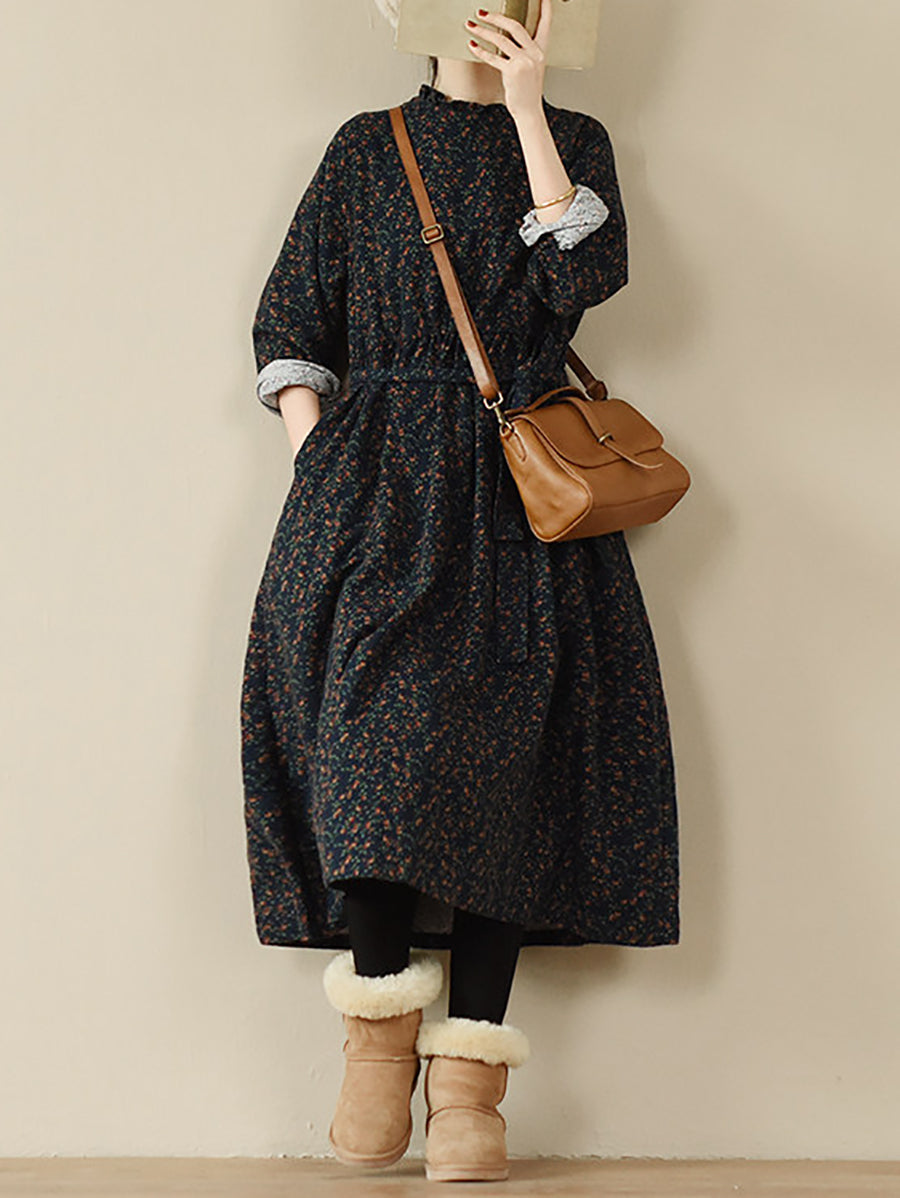 فستان نسائي خريفي أنيق مزين بنقوش زهور، مصنوع من القطن بياقة عالية