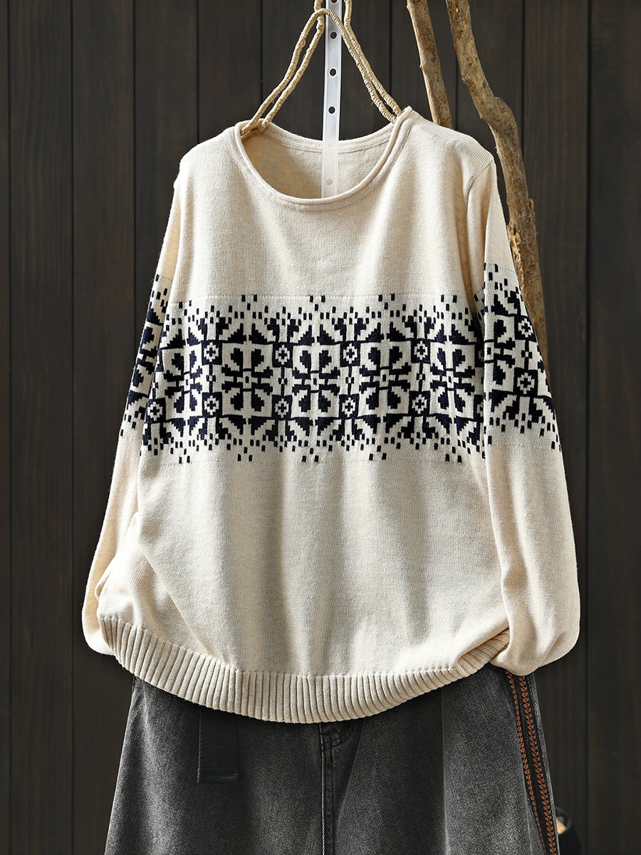 كنزة نسائية خريفية فنية محبوكة بياقة دائرية مزينة بالزهور