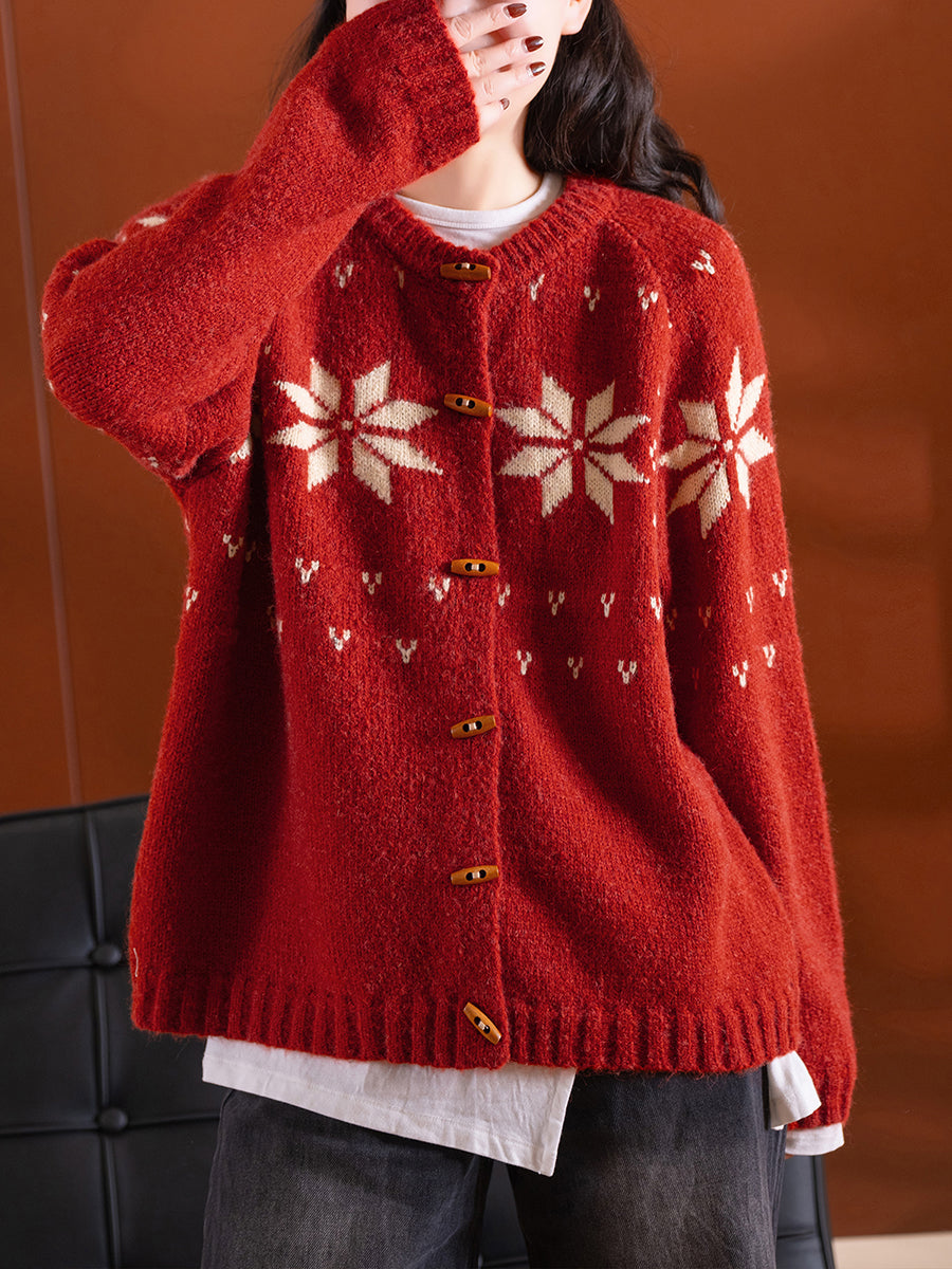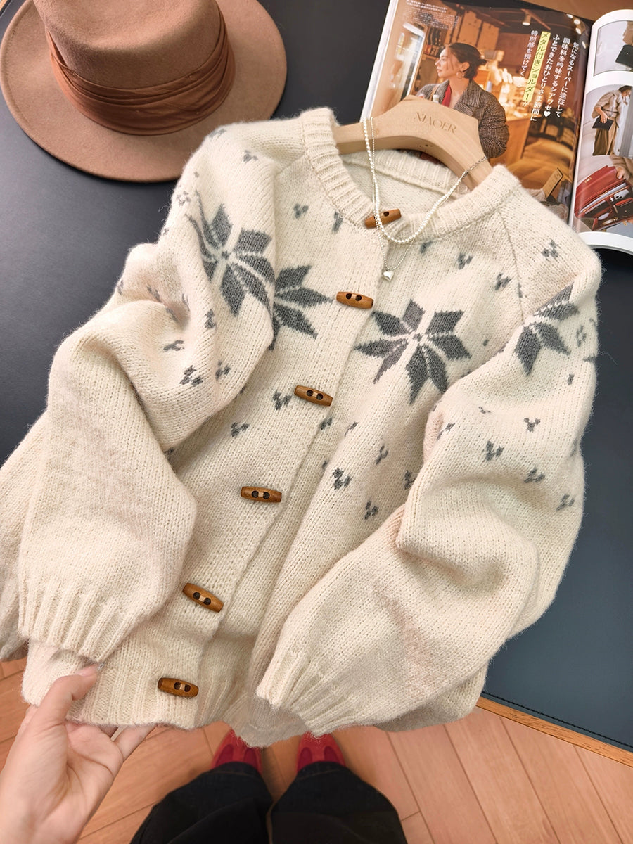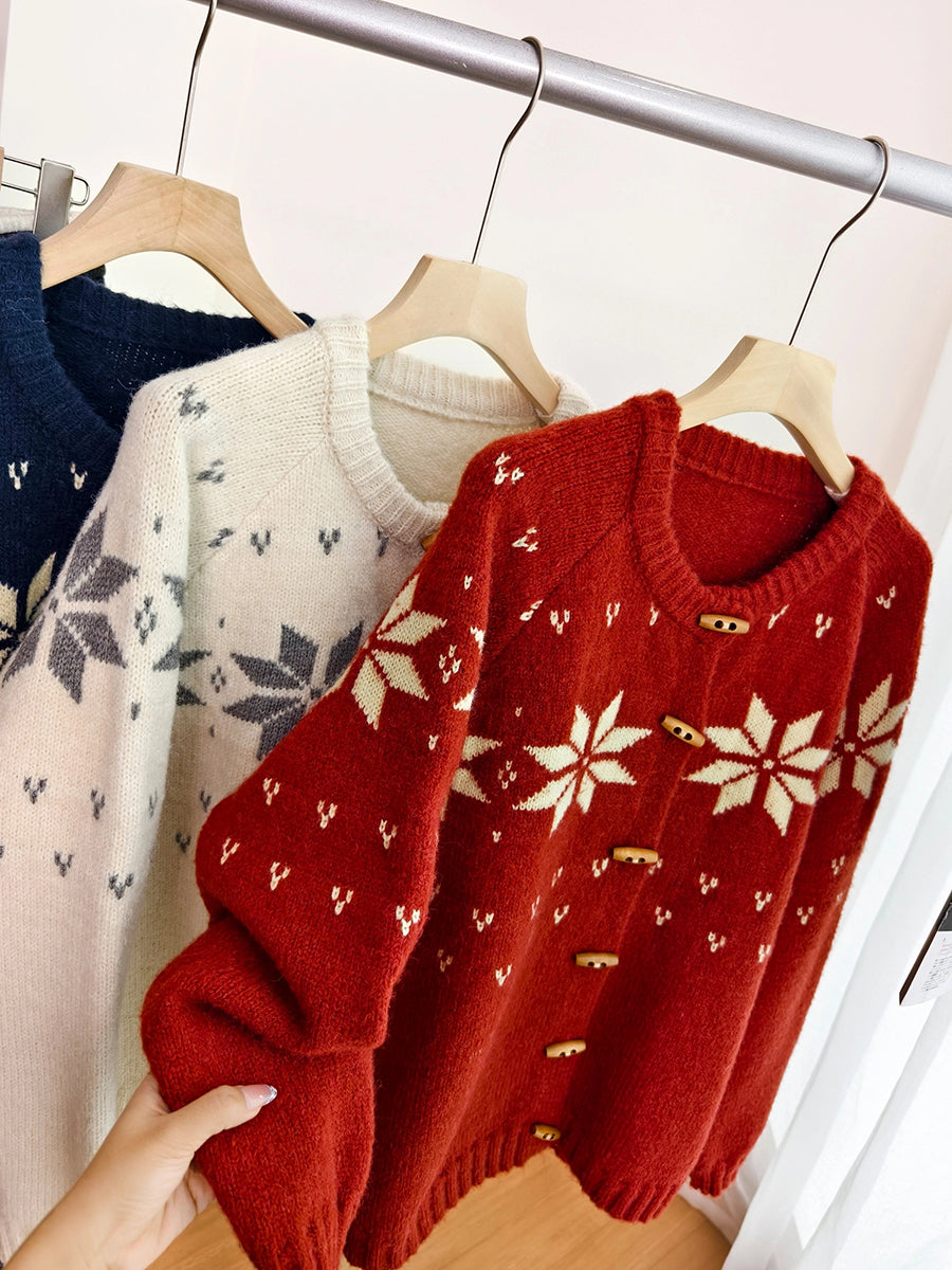 كنزة نسائية خريفية مزينة بالزهور، محبوكة بياقة دائرية