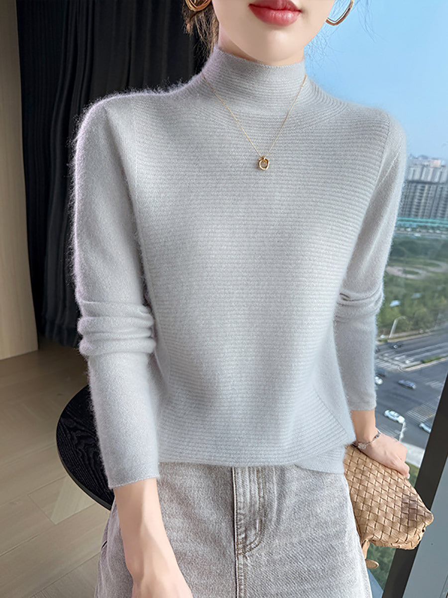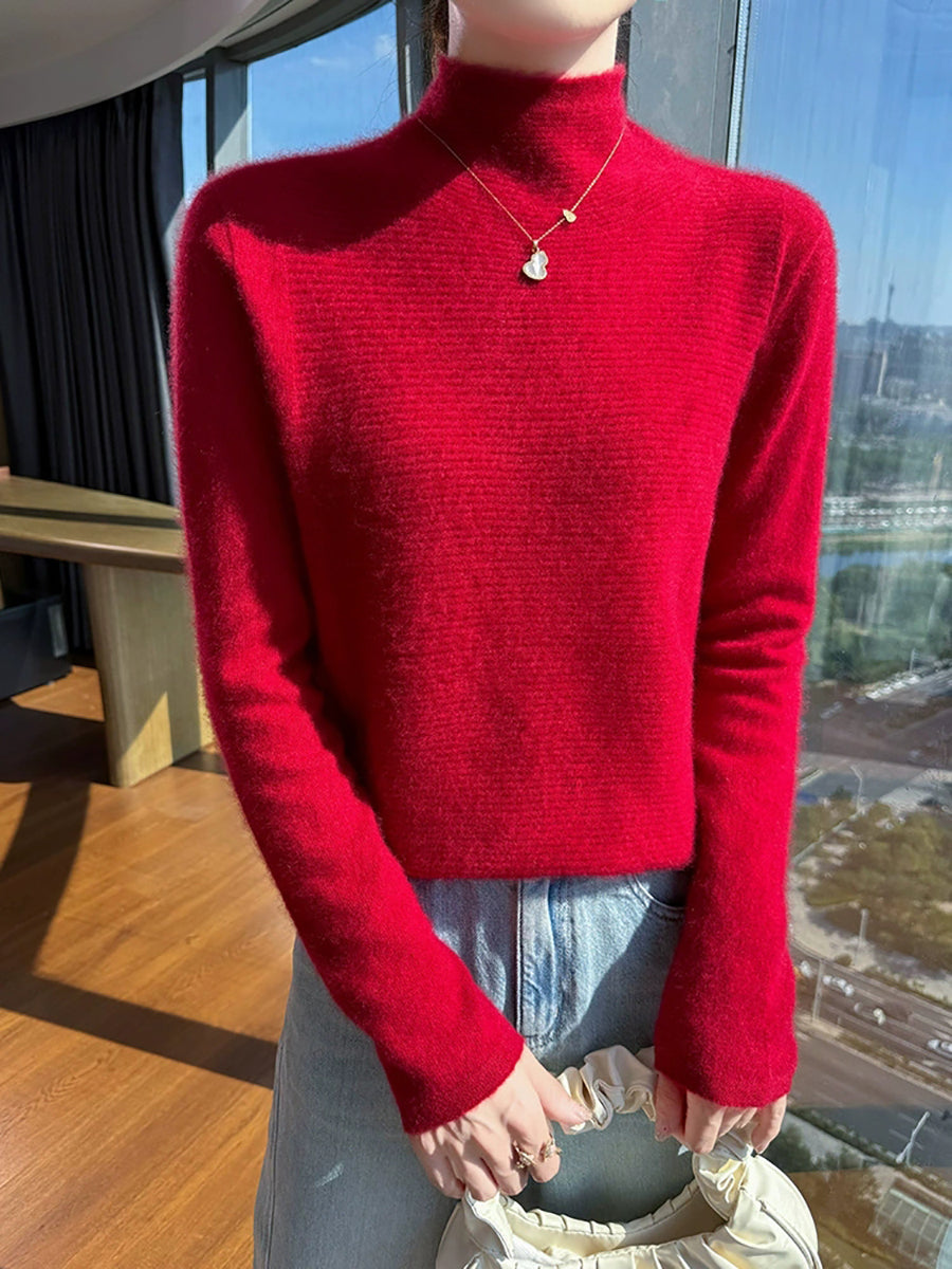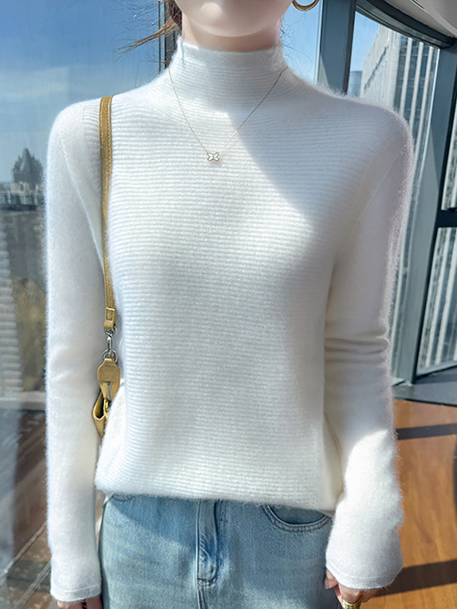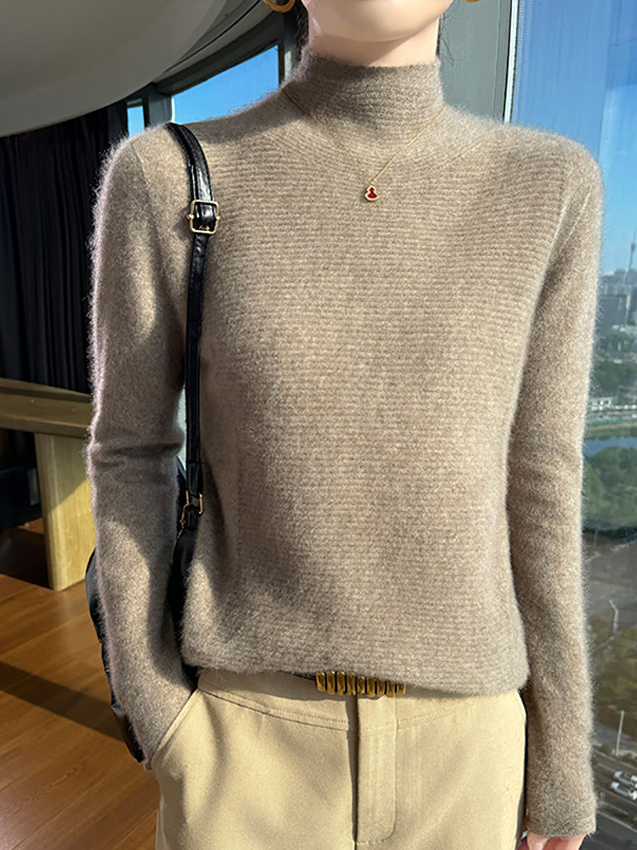 كنزة نسائية خريفية فنية بلون موحد بياقة نصف مدورة
