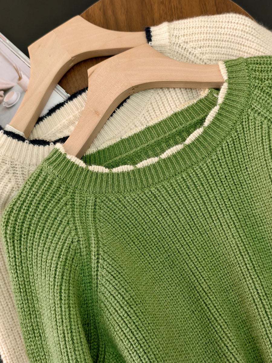 كنزة نسائية خريفية محبوكة برسومات كرتونية وياقة دائرية