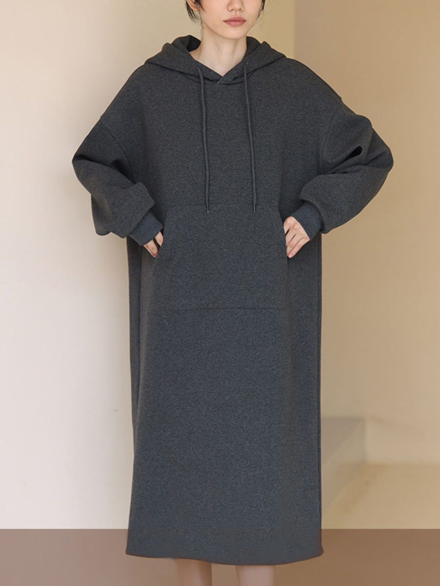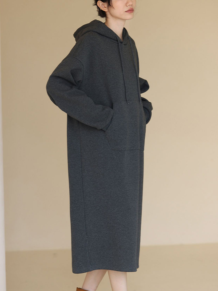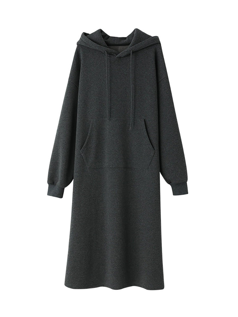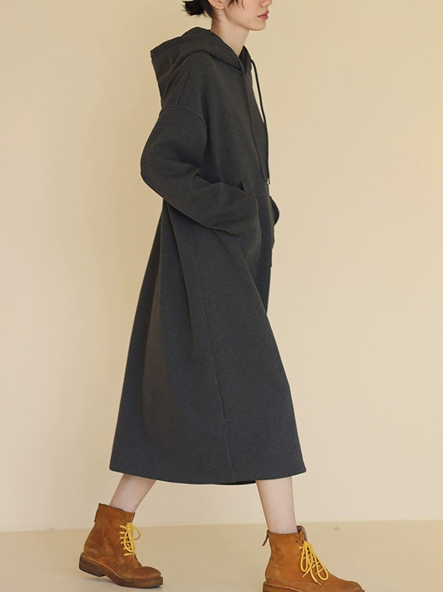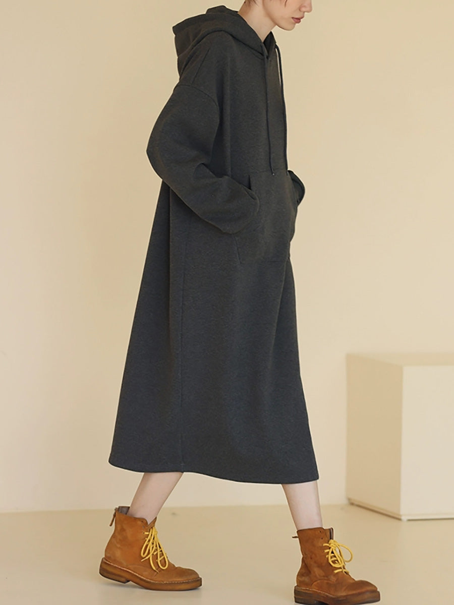 فستان طويل بغطاء رأس بلون سادة مناسب لفصل الخريف للنساء