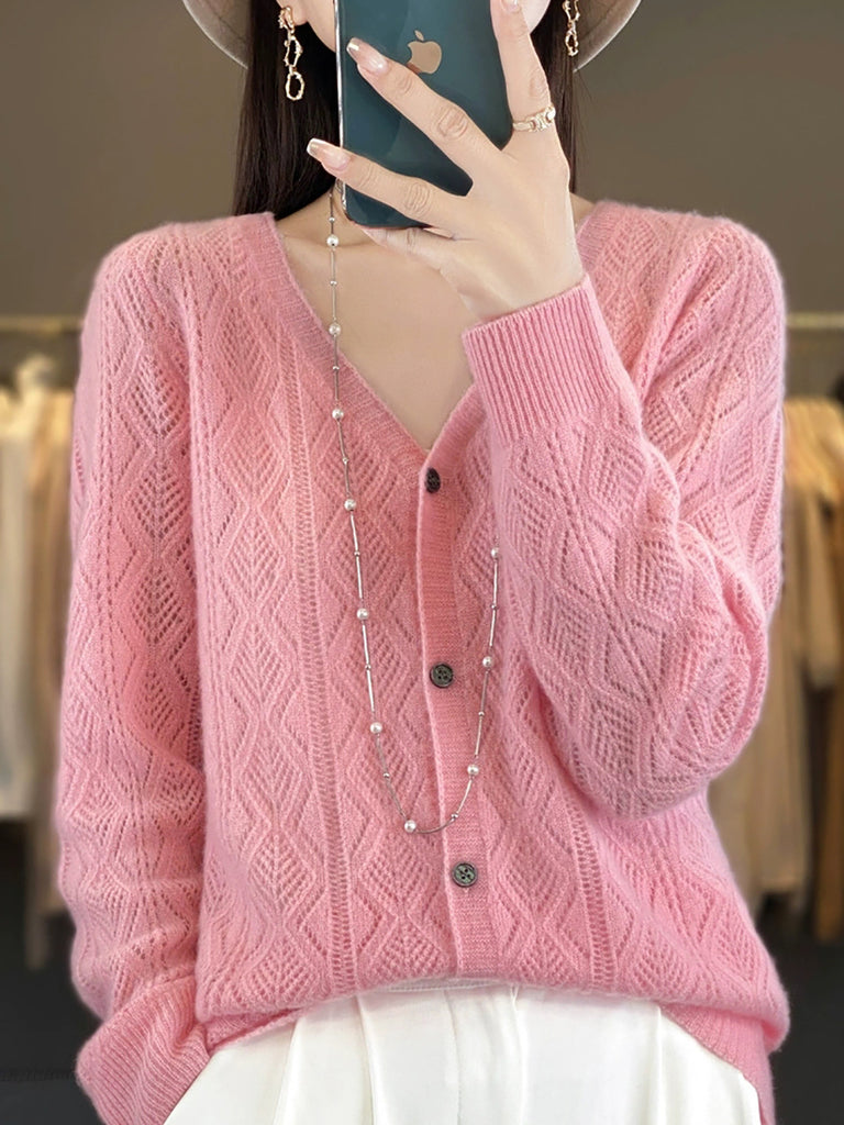 سترة نسائية كاجوال للخريف بلون نقي برقبة على شكل حرف V