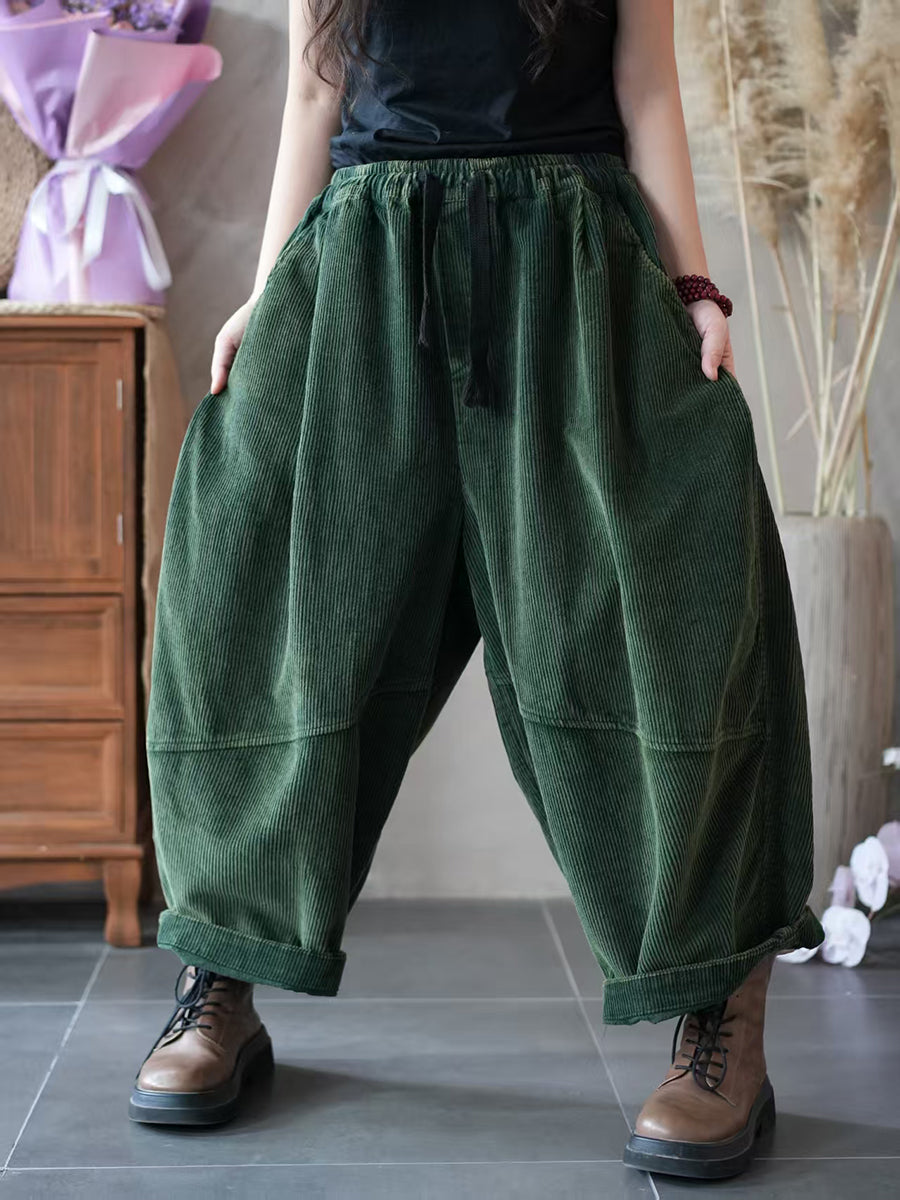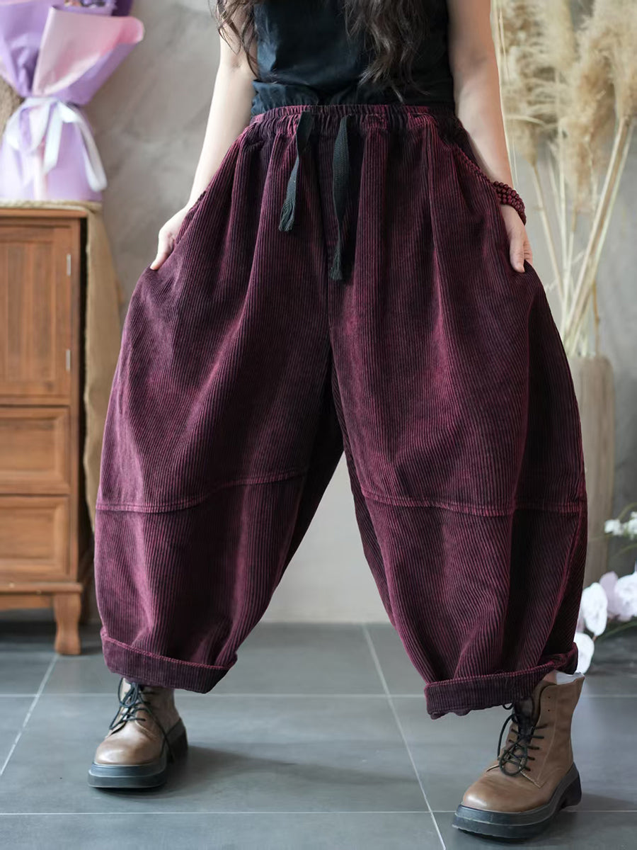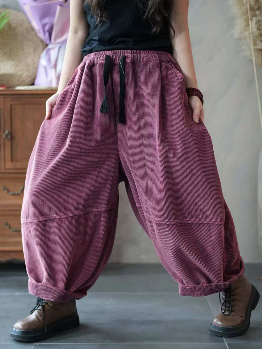 بنطلون حريمي من قماش مخملي منقوش بألوان نقية لفصل الخريف