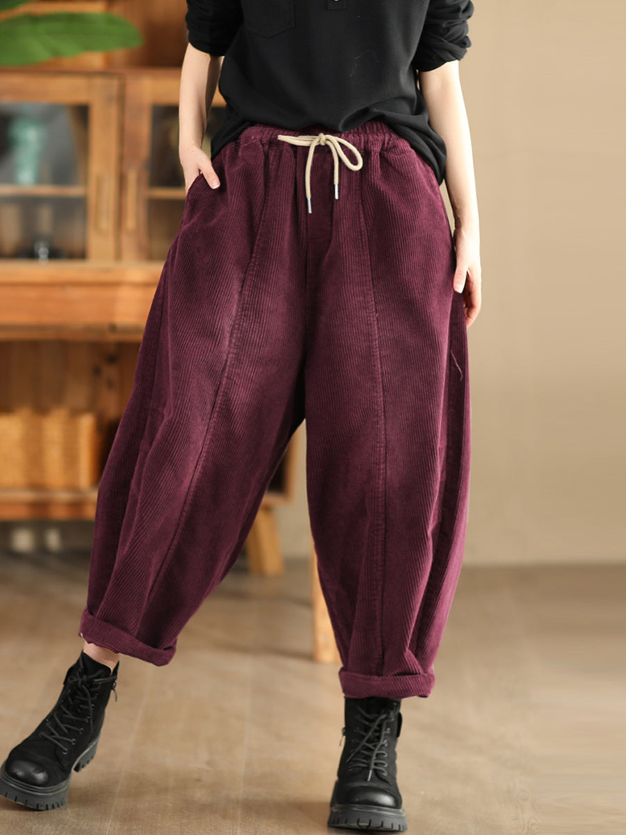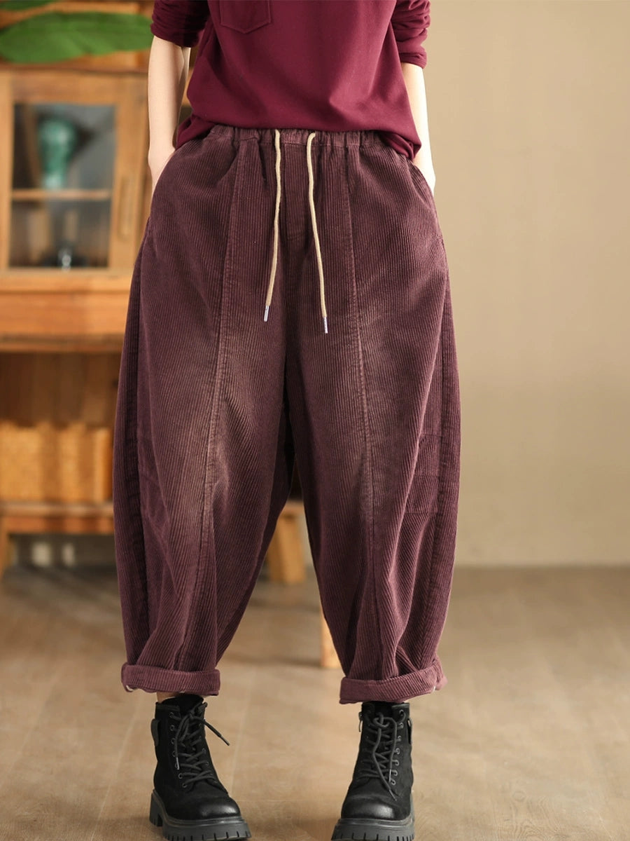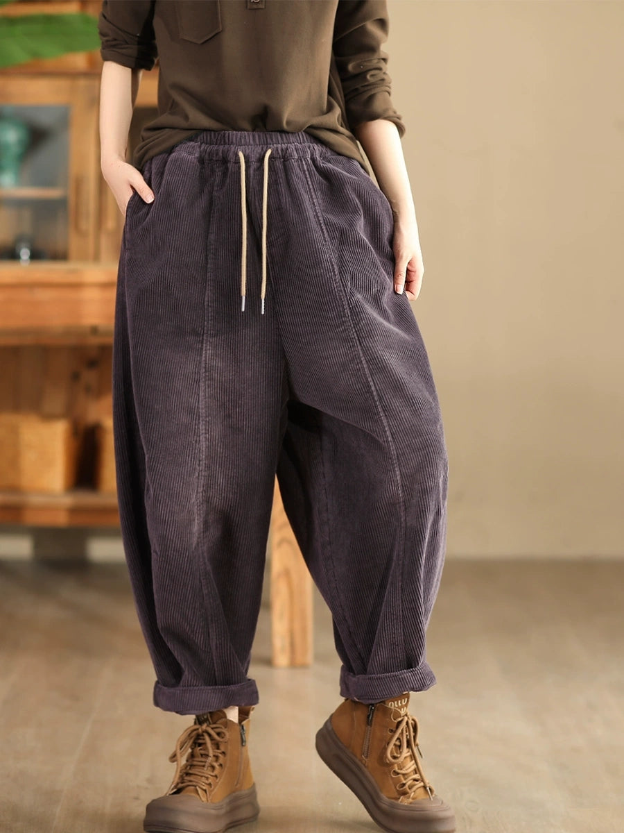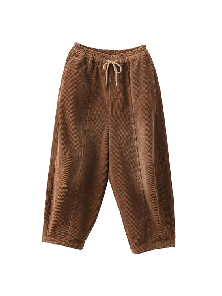 بنطلون نسائي خريفي بتصميم كلاسيكي من قماش الكوردروي بلون سادة واسع من قماش الحريم