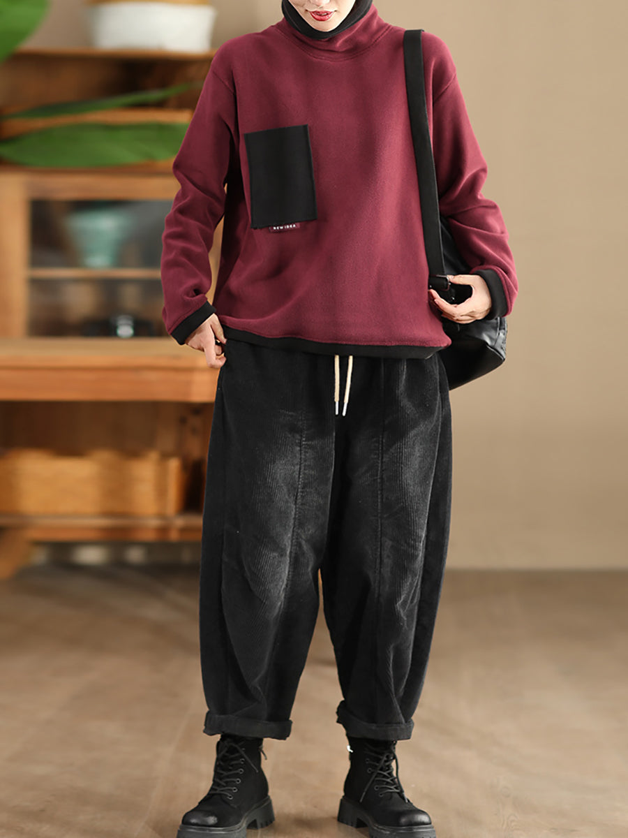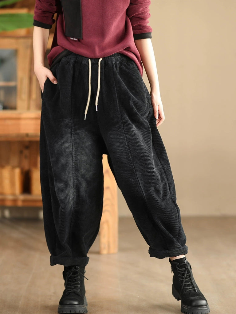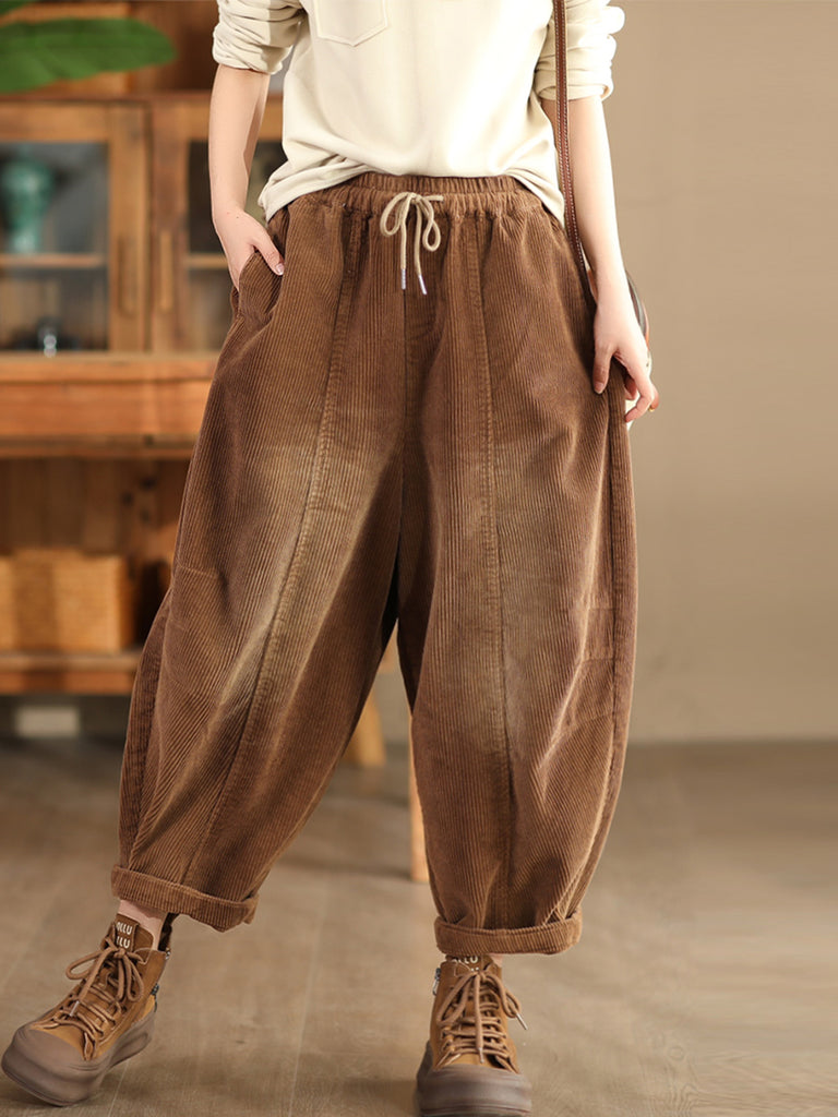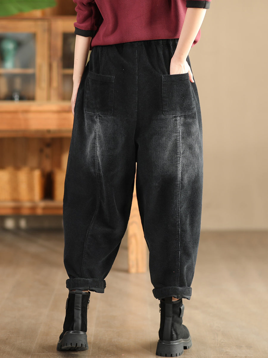 بنطلون نسائي خريفي بتصميم كلاسيكي من قماش الكوردروي بلون سادة واسع من قماش الحريم