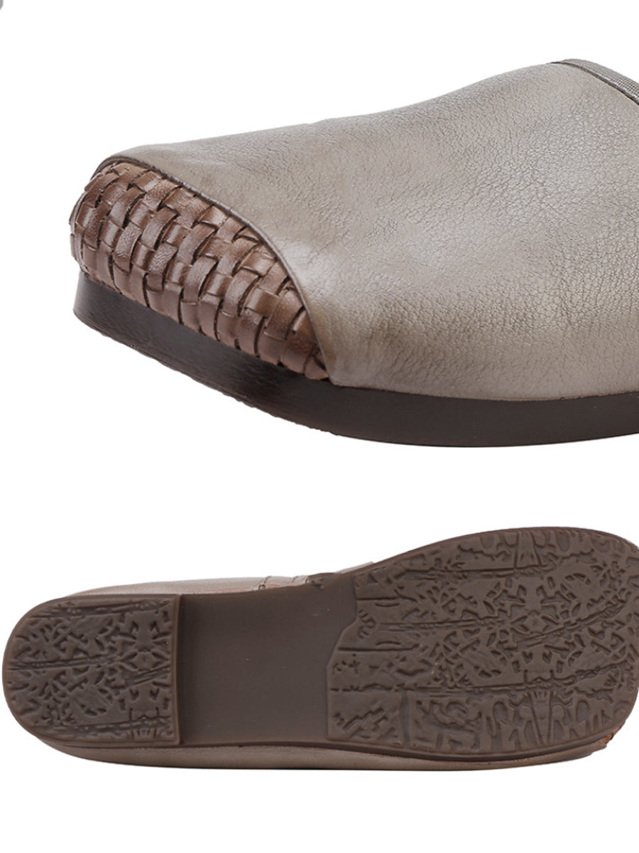 حذاء نسائي خريفي من الجلد الناعم بمقدمة مربعة وكعب منخفض