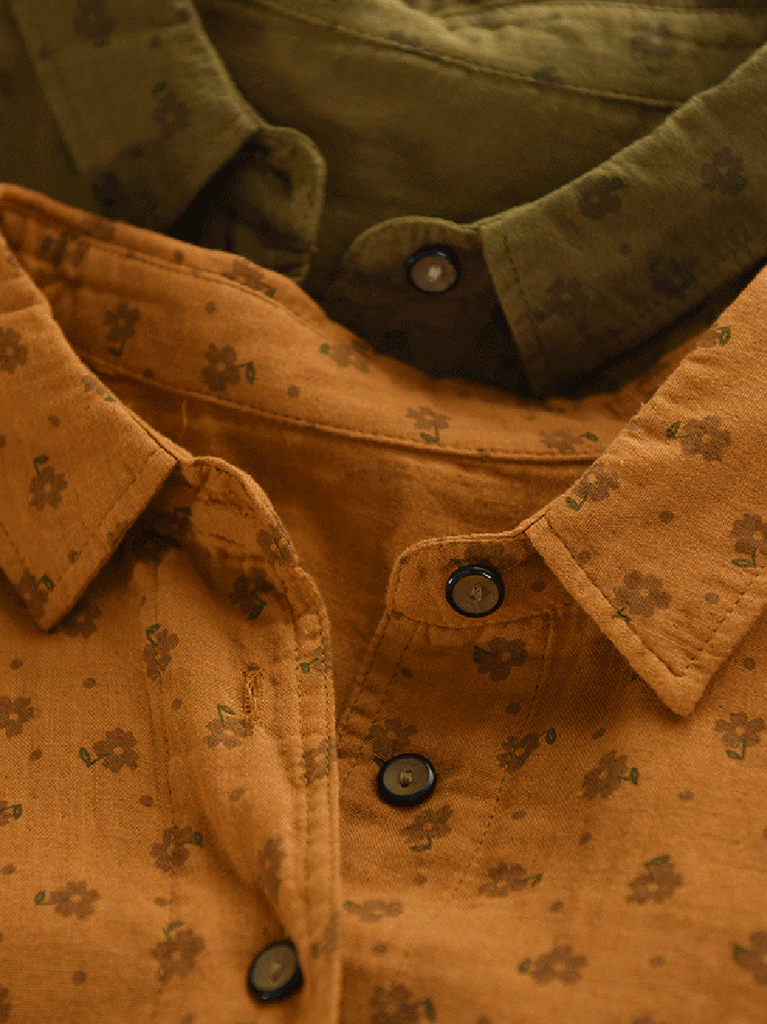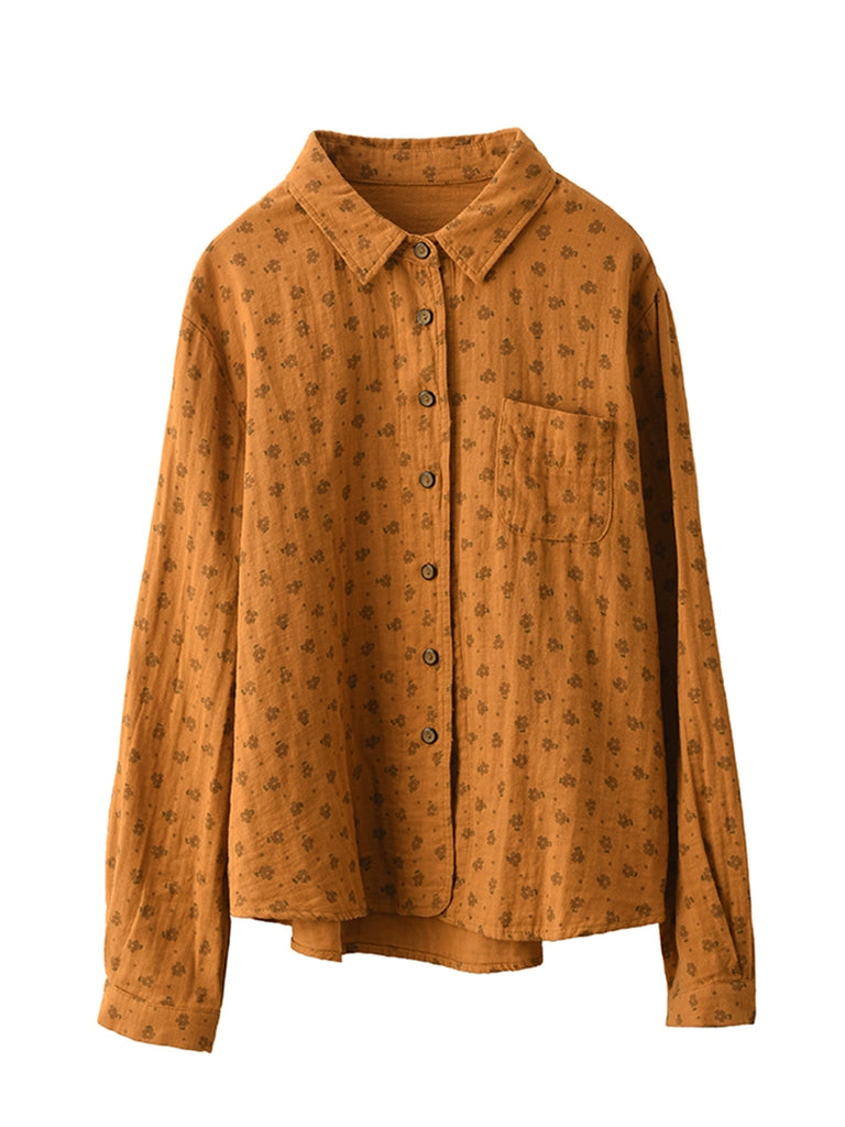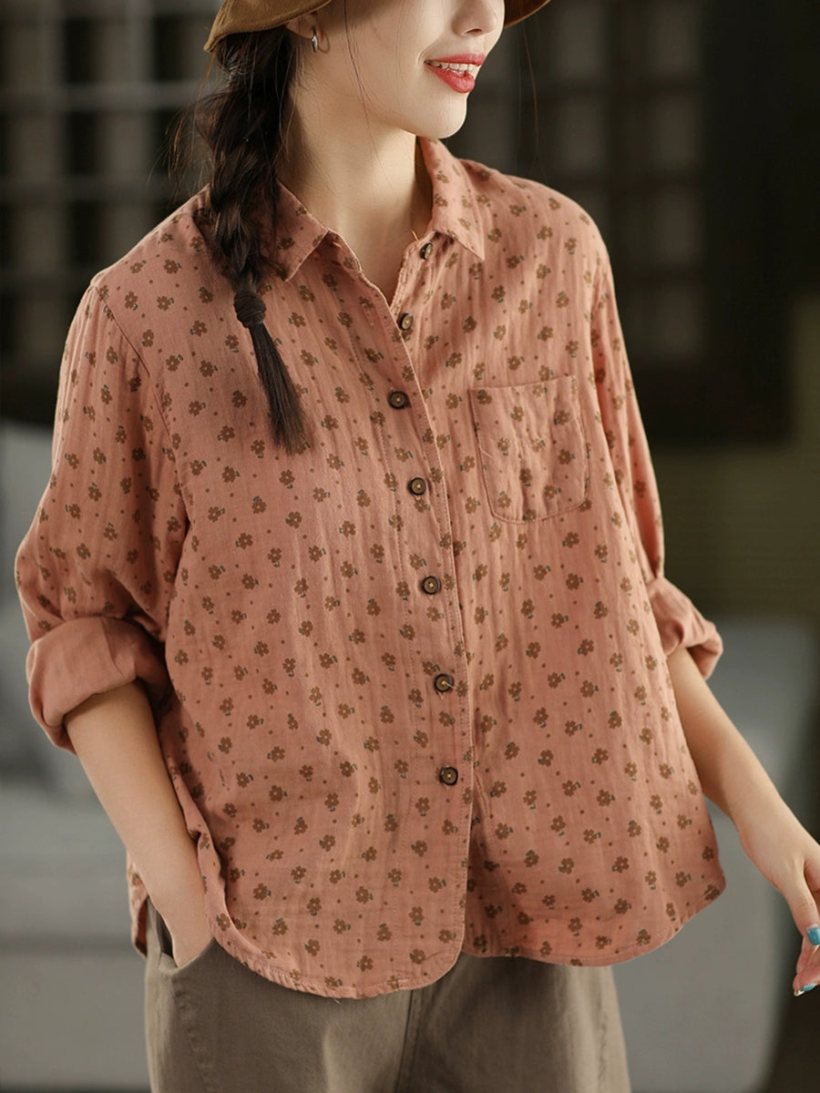 قميص نسائي خريفي عتيق من القطن بنسبة 100% بياقة مطوية