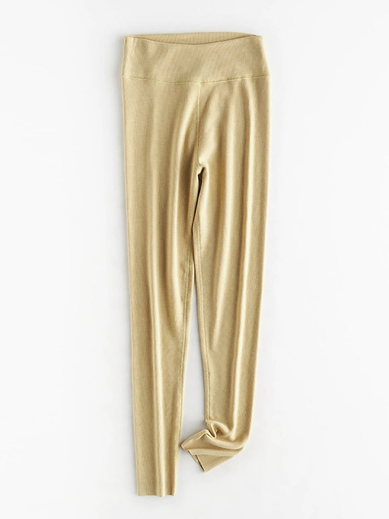 بنطلون ضيق نسائي خريفي دافئ بلون نقي بخصر مرتفع