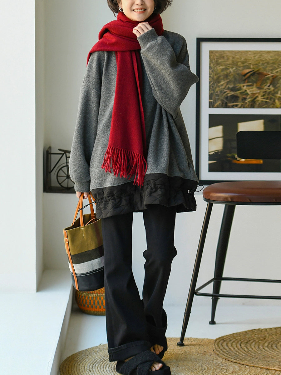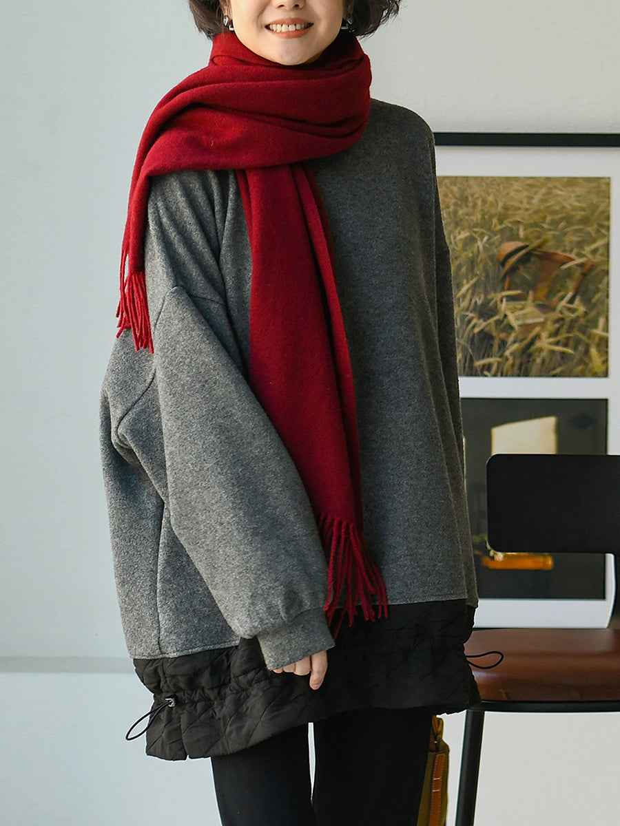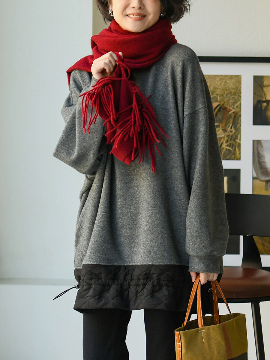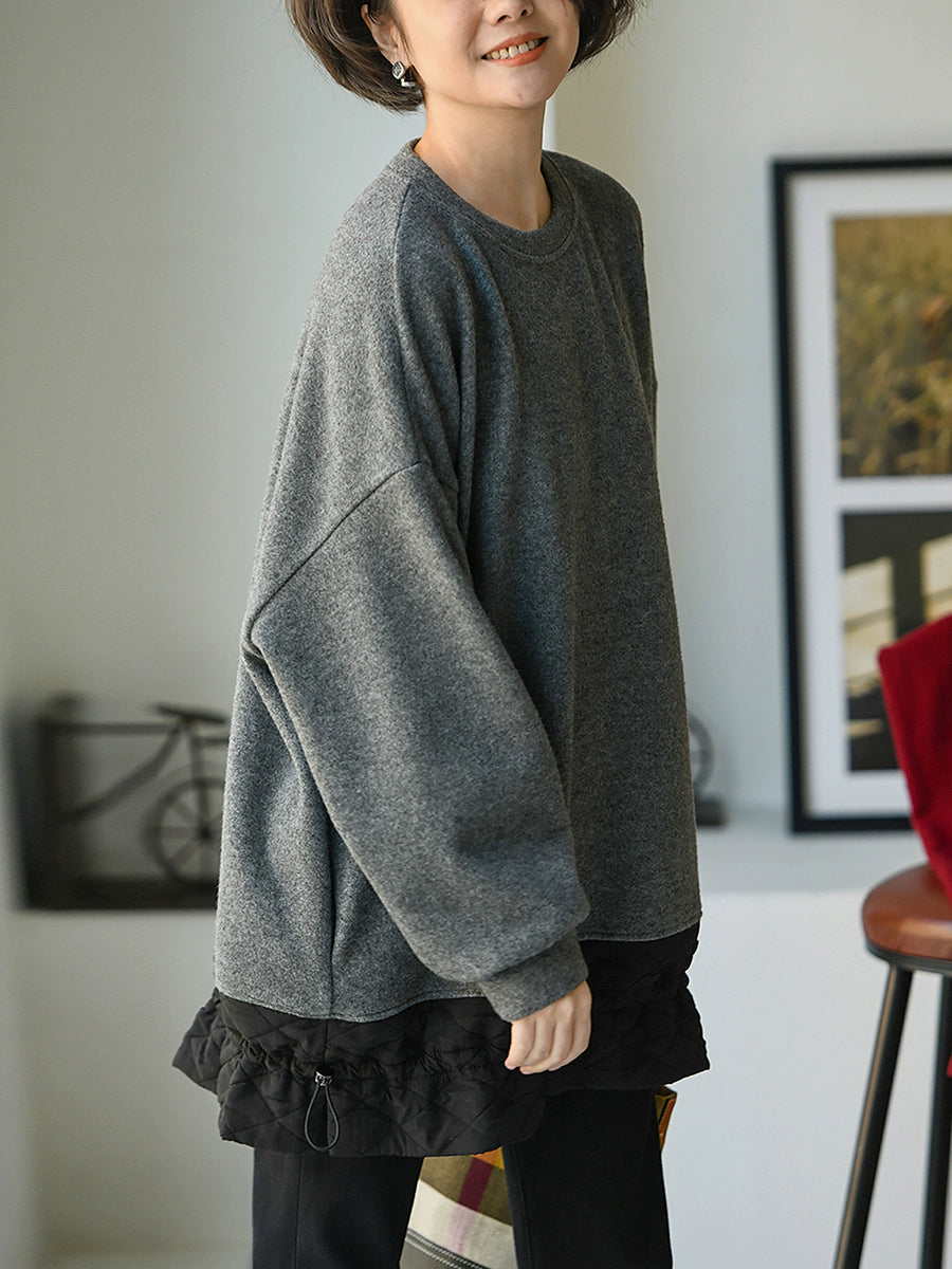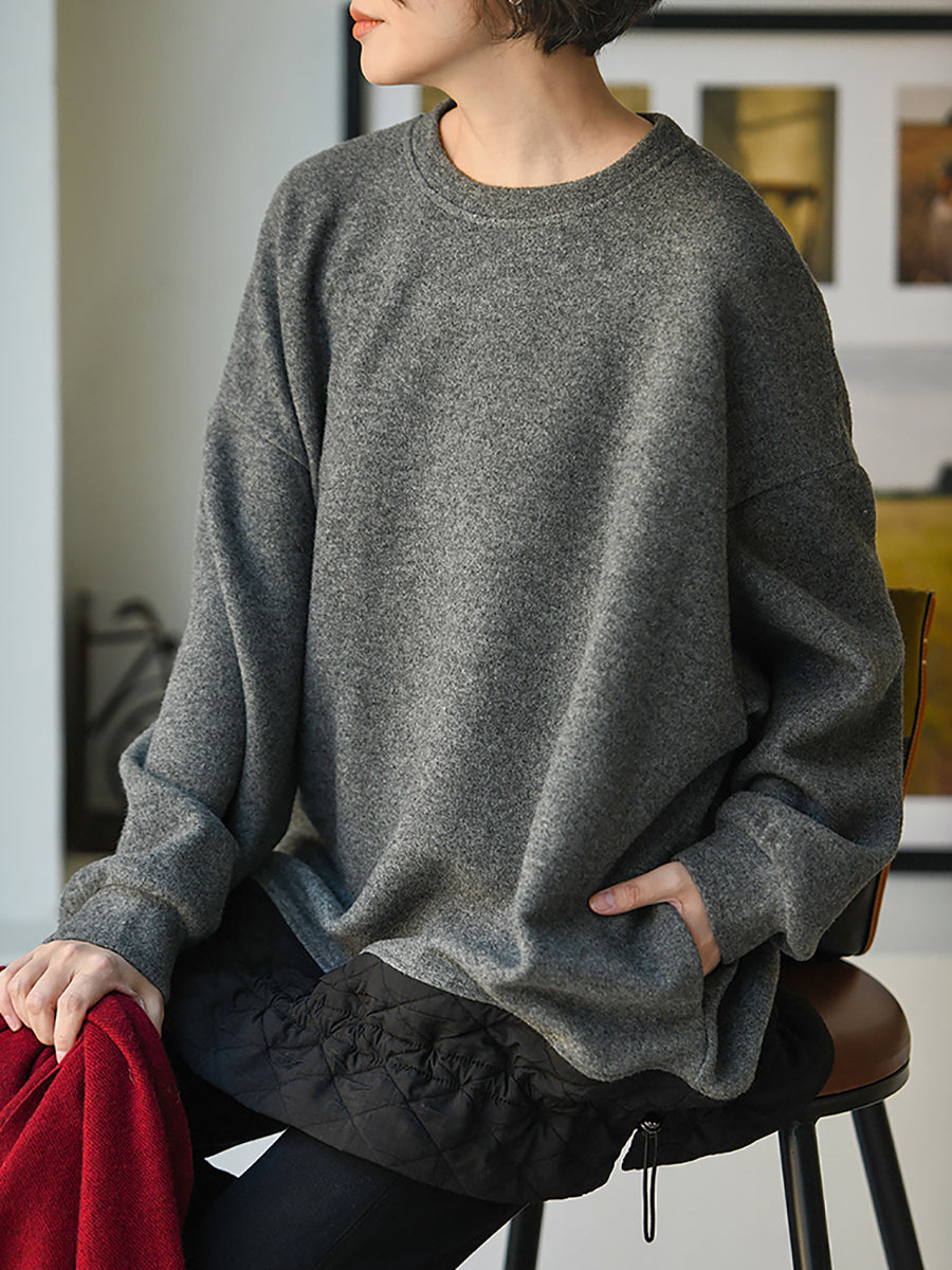 بلوزة نسائية كاجوال خريفية بلون نقي برقبة دائرية