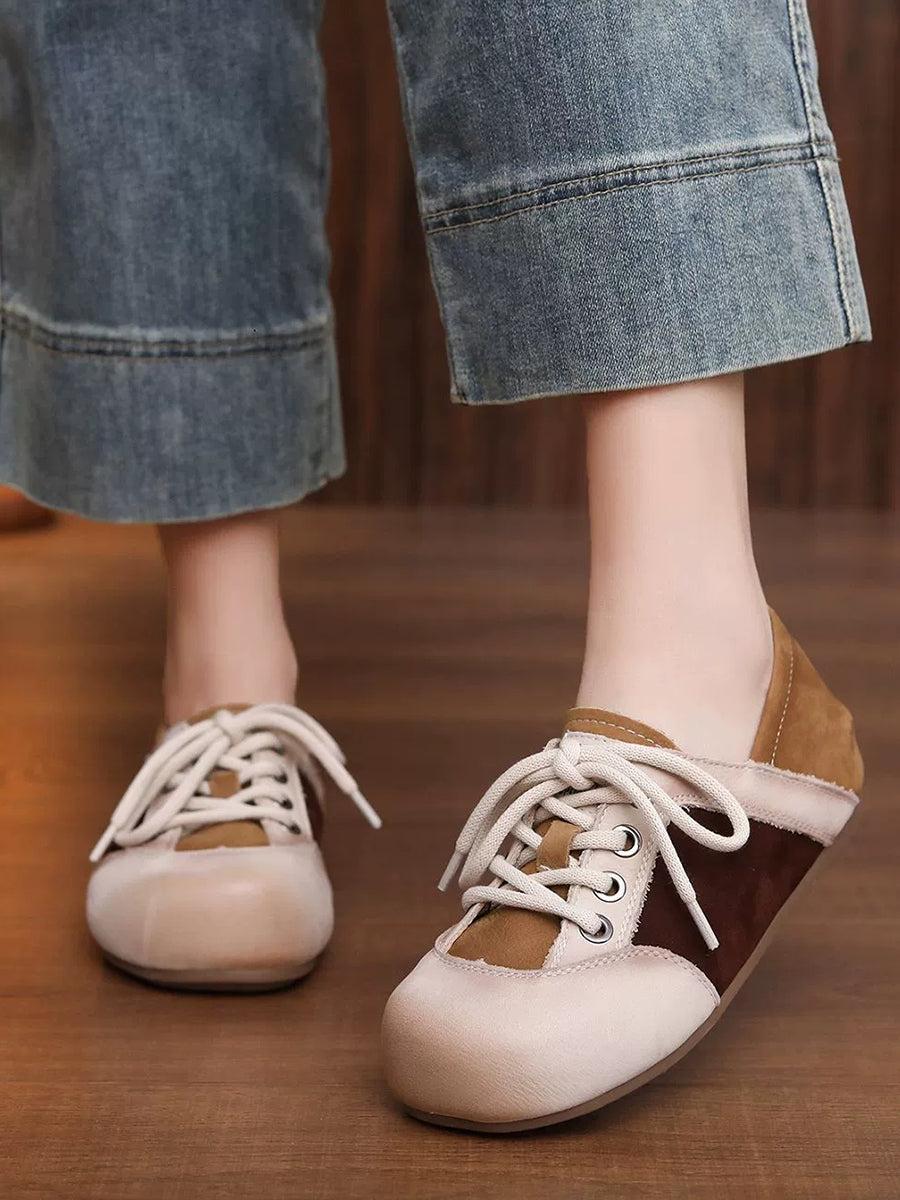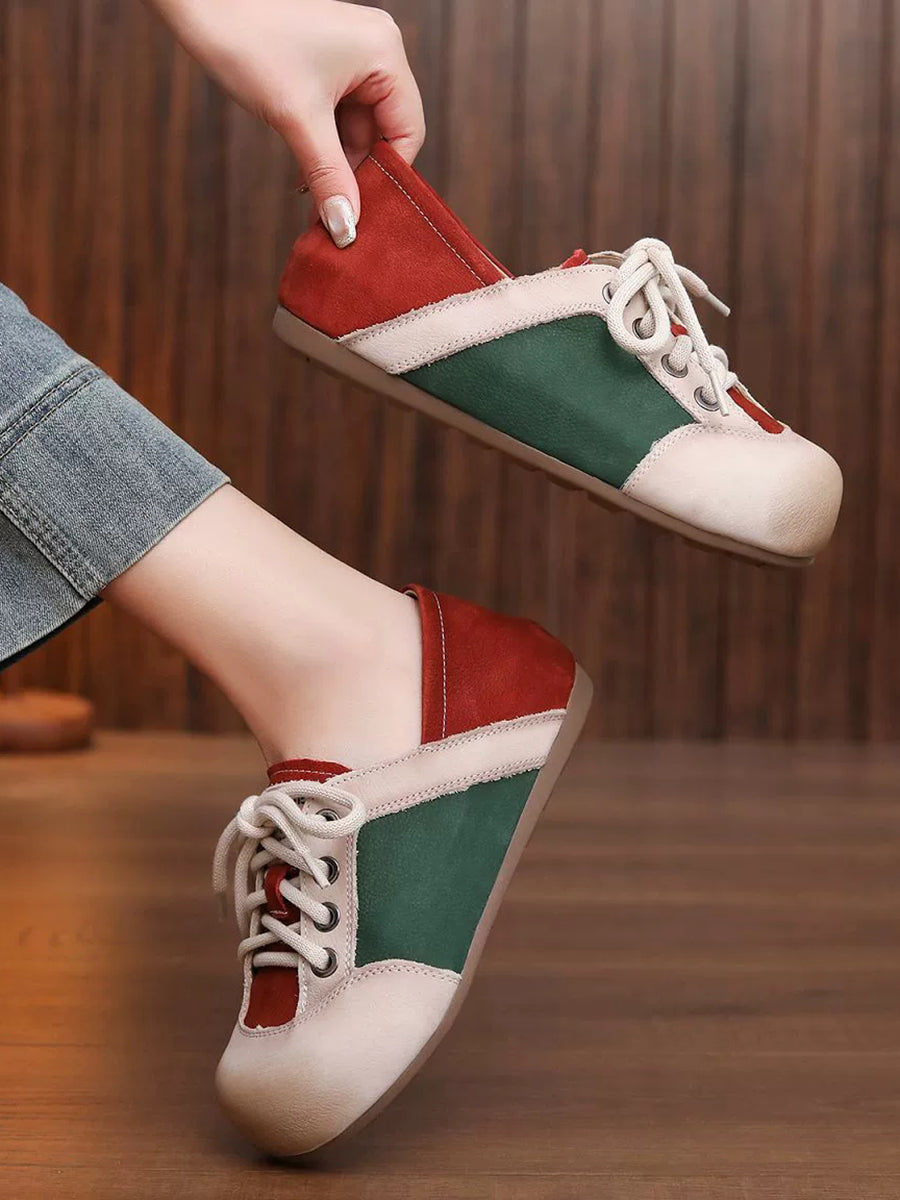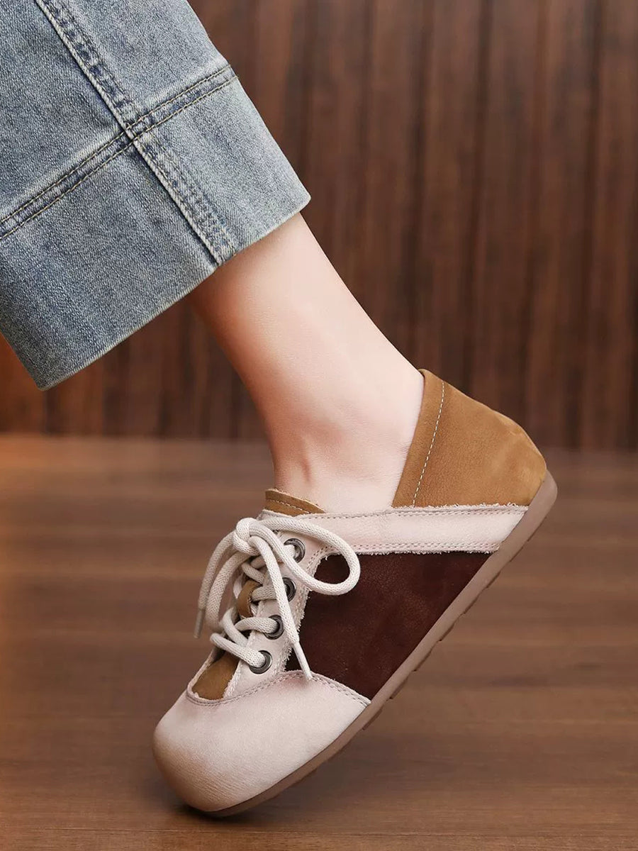 حذاء نسائي كاجوال مسطح من الجلد الطبيعي بألوان متداخلة