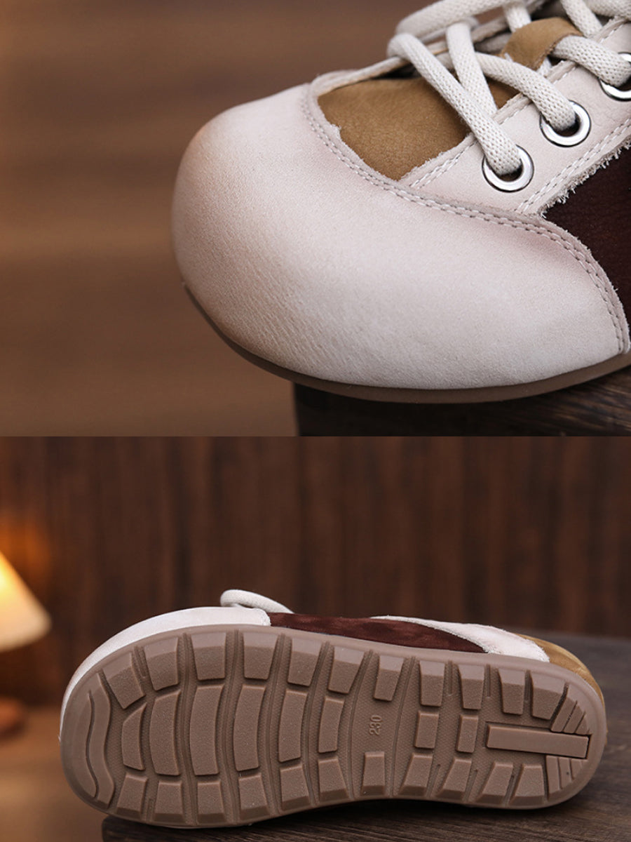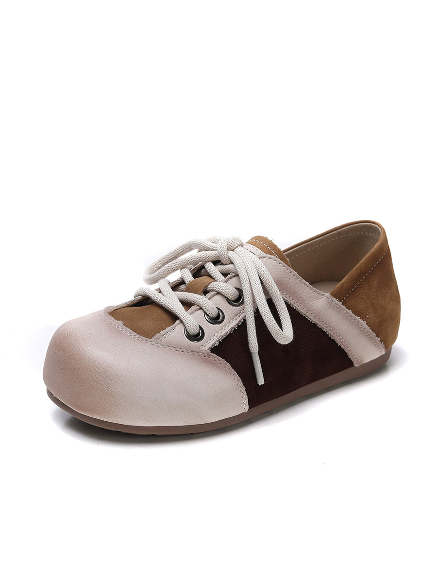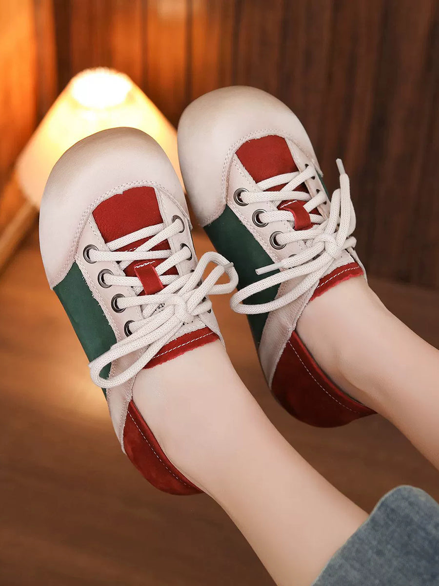حذاء نسائي كاجوال مسطح من الجلد الطبيعي بألوان متداخلة