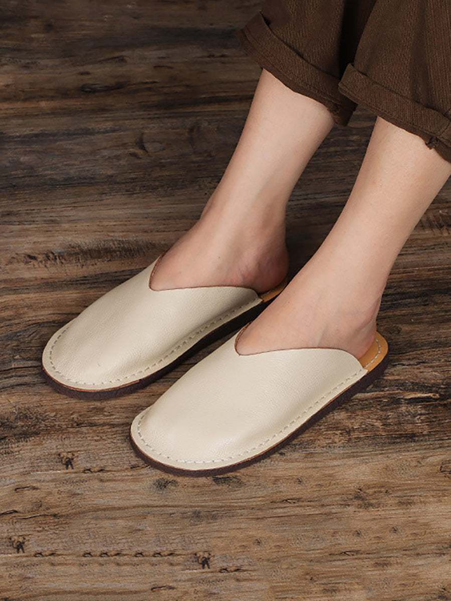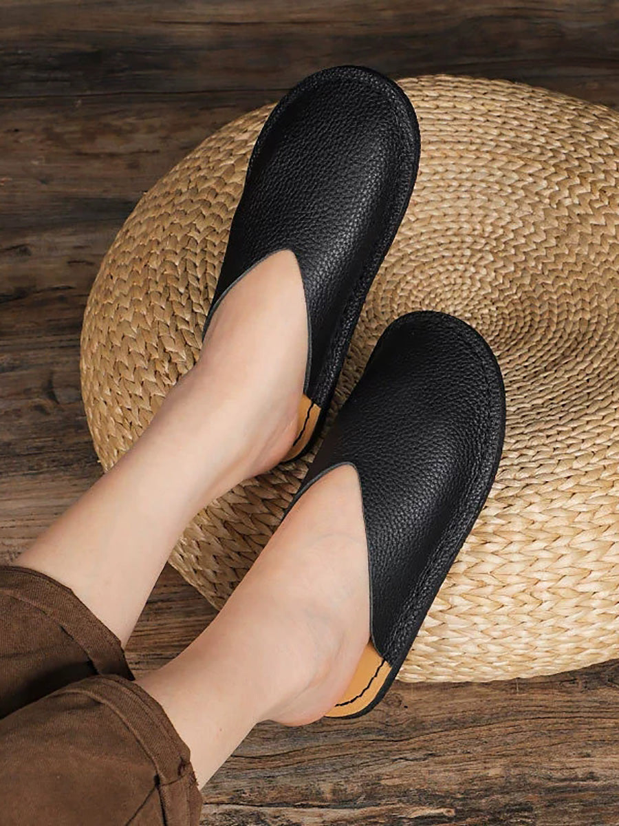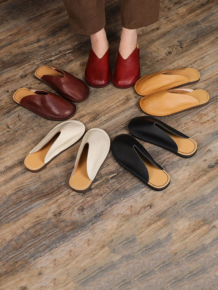 شباشب نسائية مسطحة من الجلد الطبيعي للاستخدام اليومي