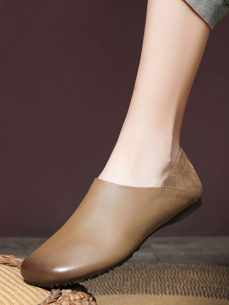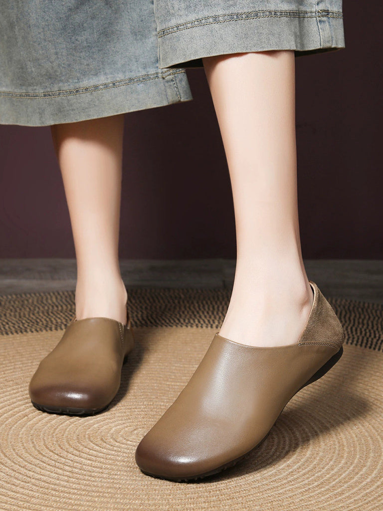 حذاء مسطح كاجوال نسائي من الجلد الطبيعي