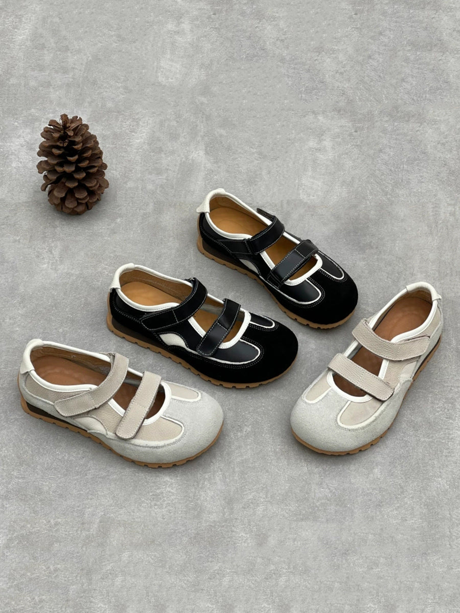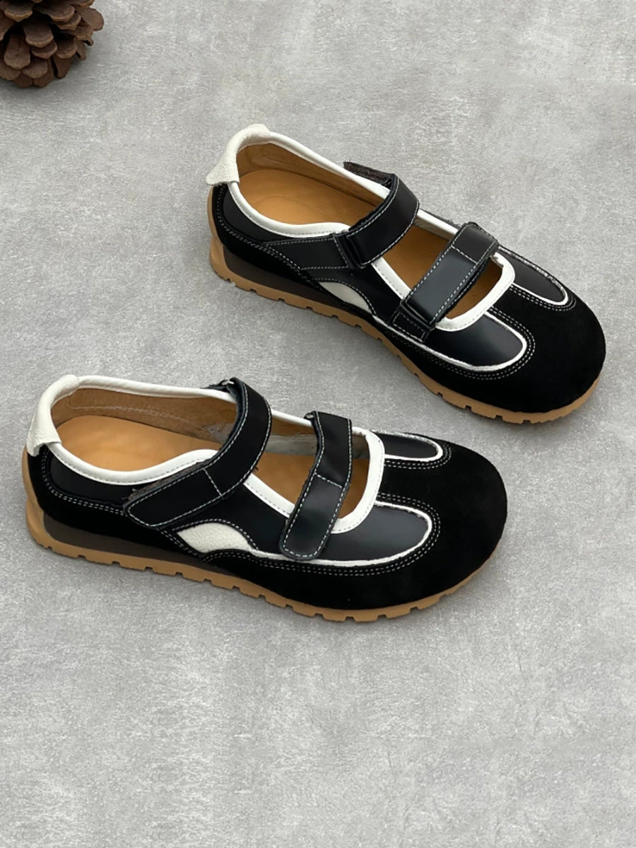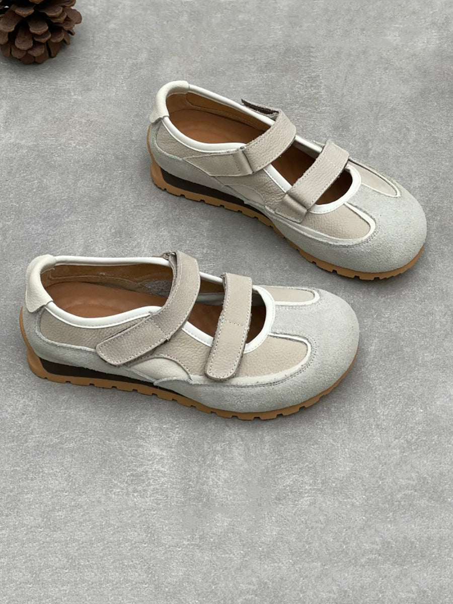 أحذية نسائية كاجوال من الجلد الطبيعي بتصميم مقسم وكعب منخفض