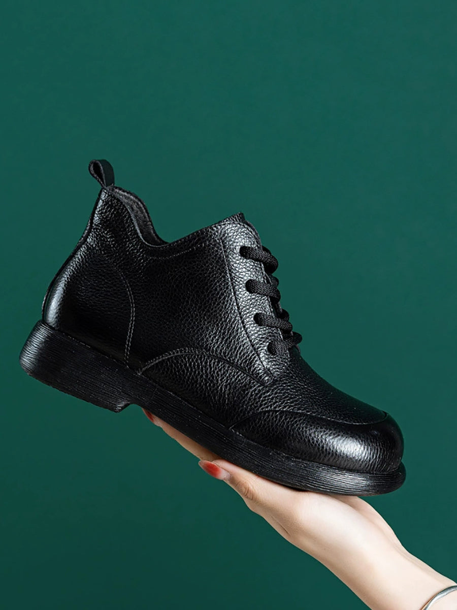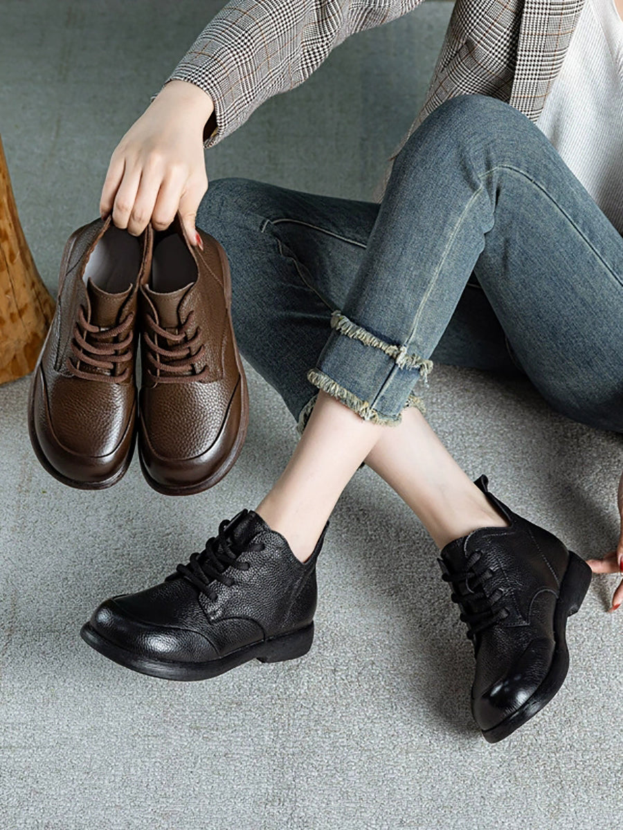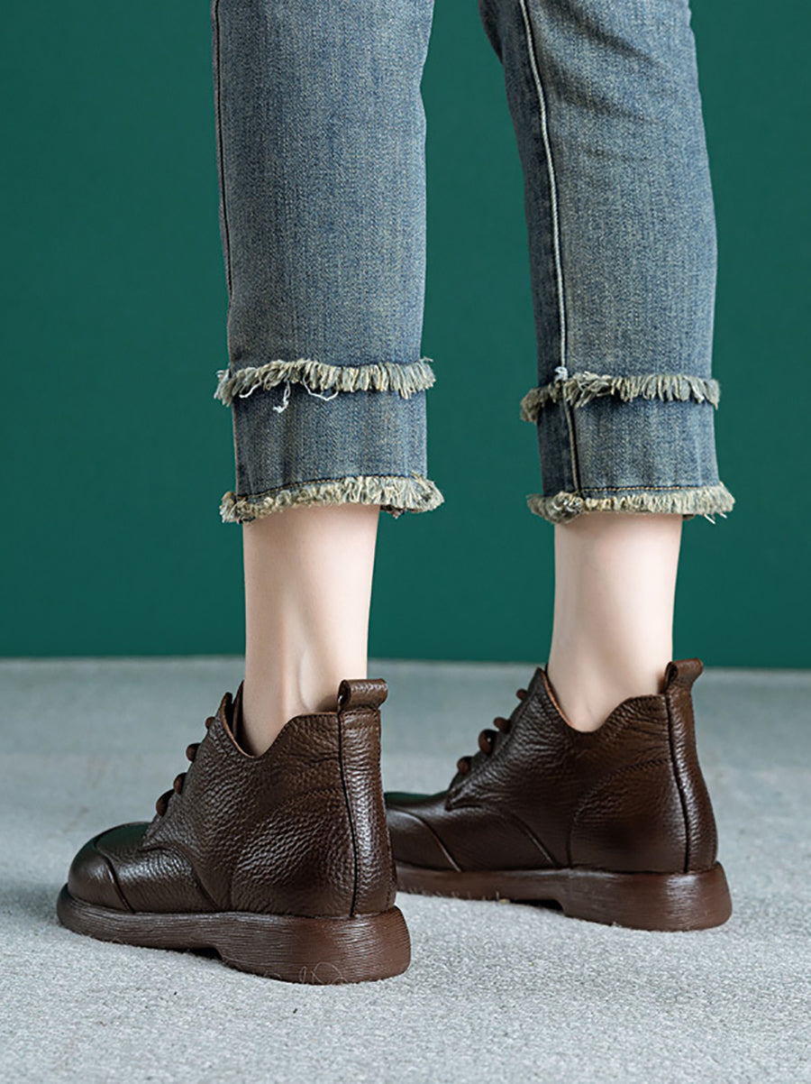 أحذية نسائية كاجوال من الجلد الطبيعي بلون موحد تصل إلى الكاحل