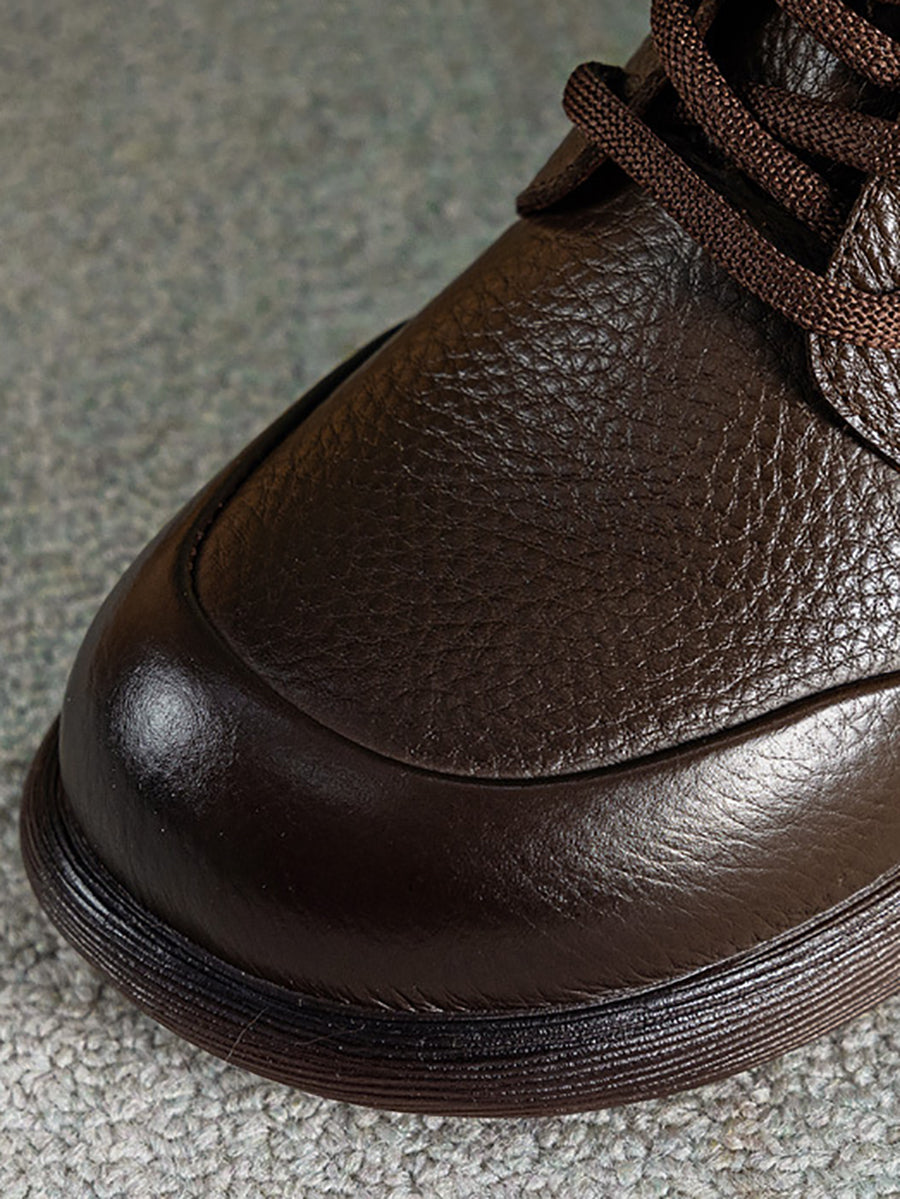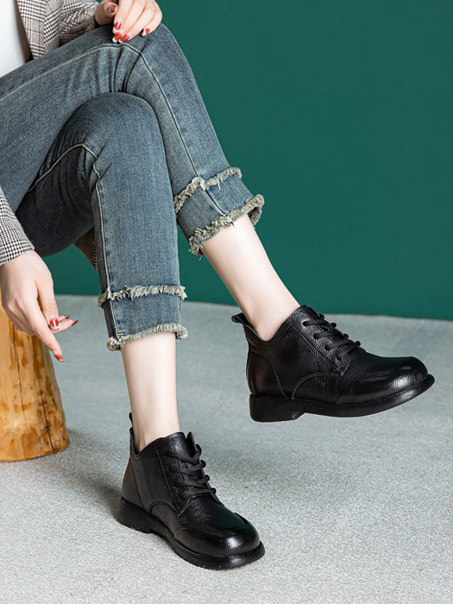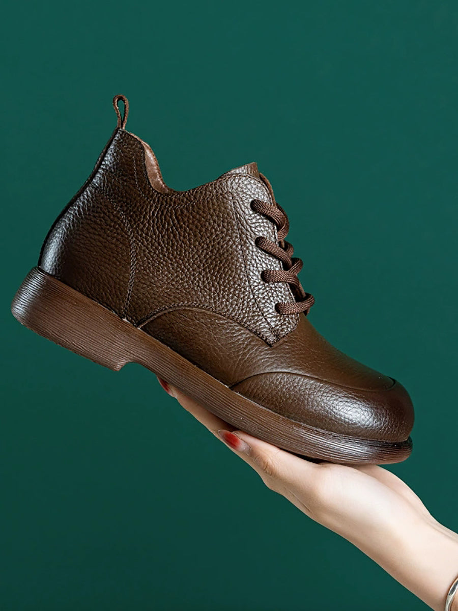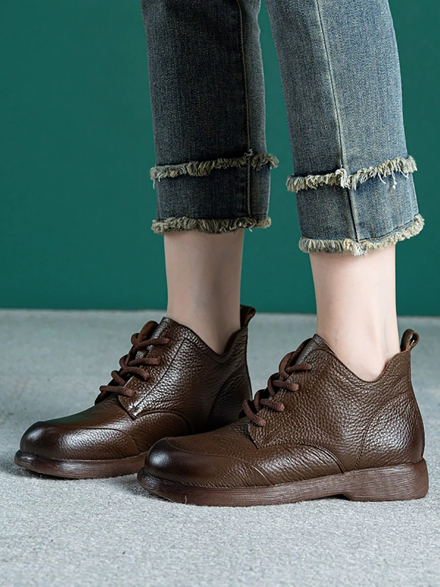 أحذية نسائية كاجوال من الجلد الطبيعي بلون موحد تصل إلى الكاحل