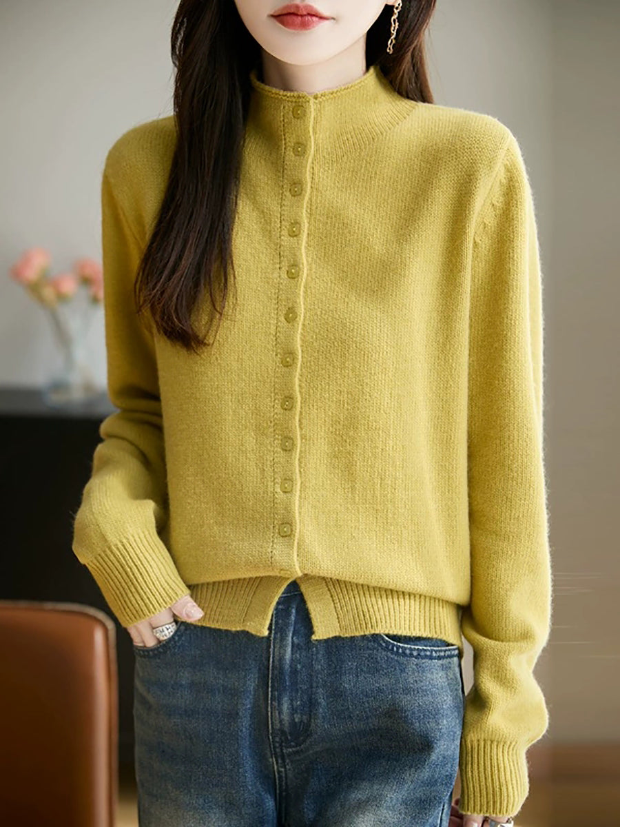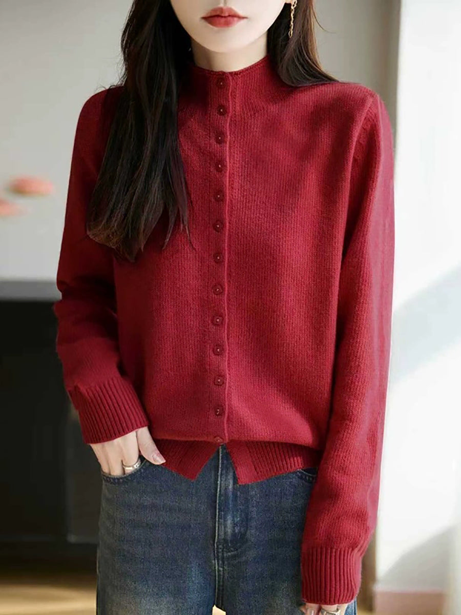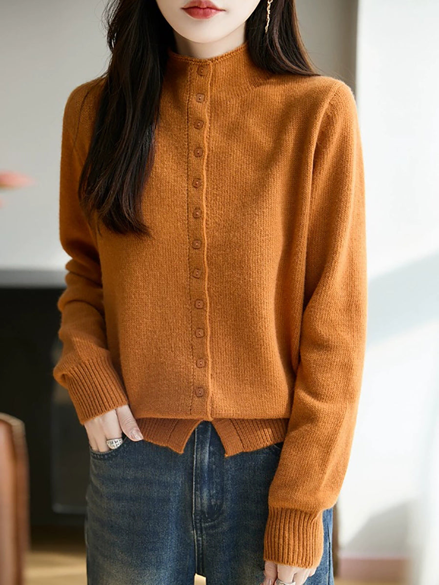 كنزة نسائية صيفية كاجوال بلون موحد بياقة نصف مدورة