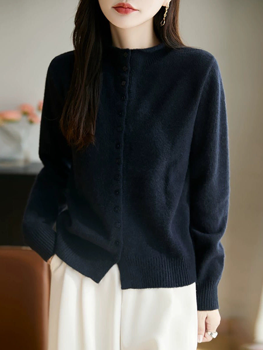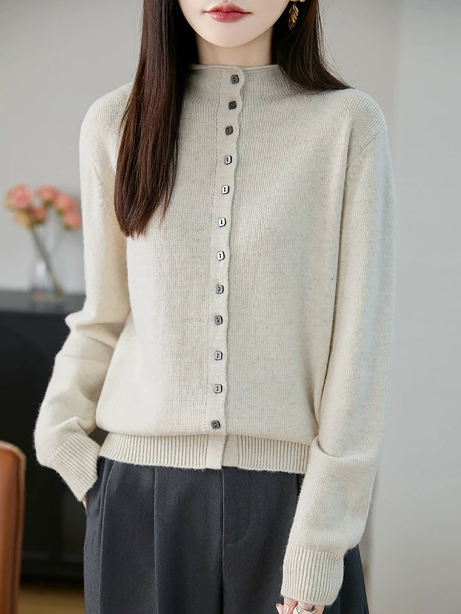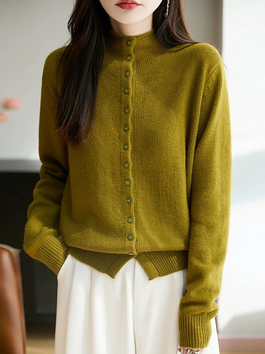 كنزة نسائية صيفية كاجوال بلون موحد بياقة نصف مدورة