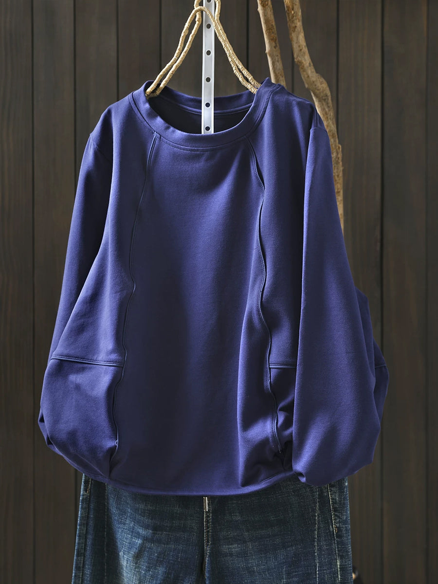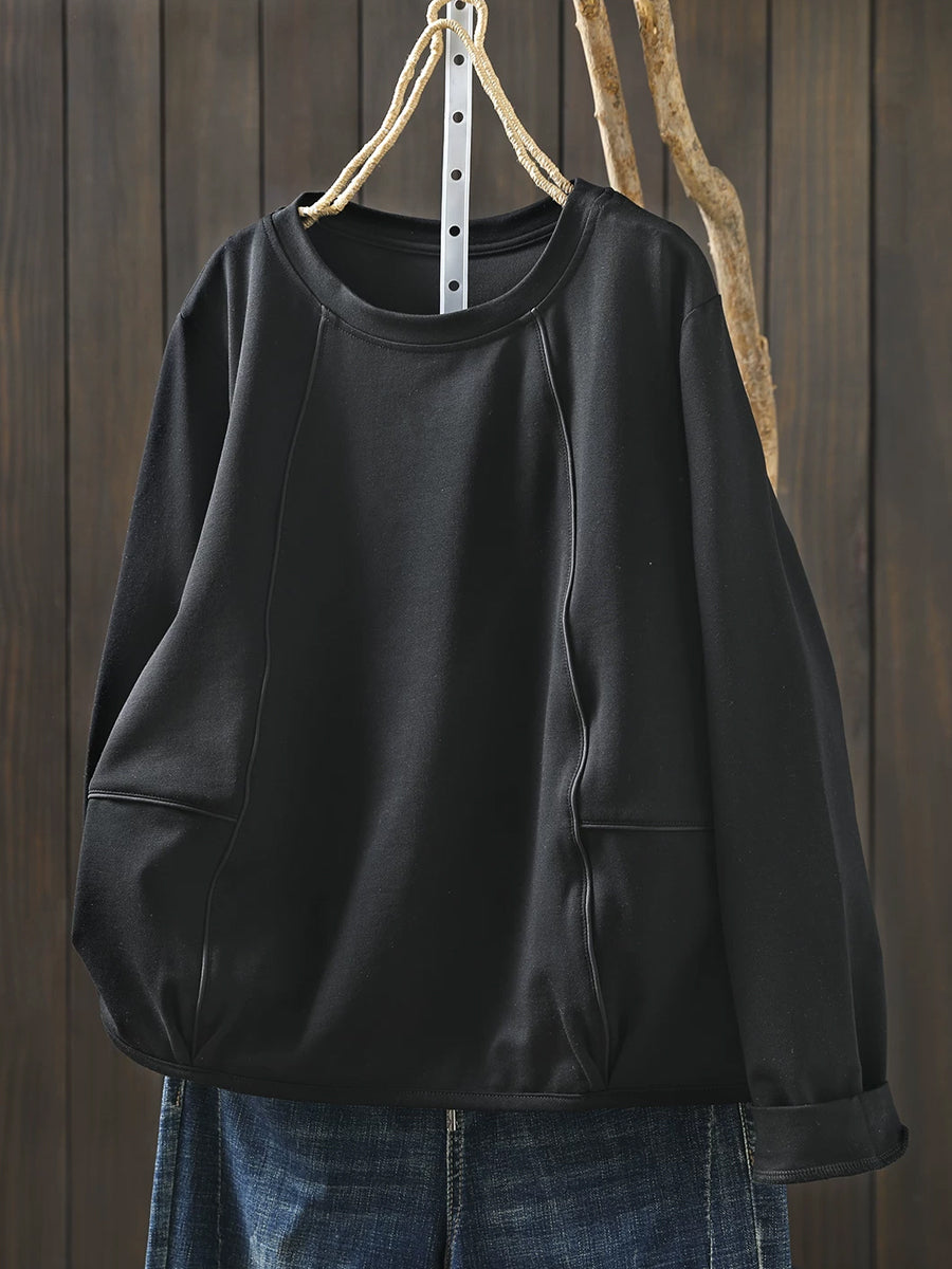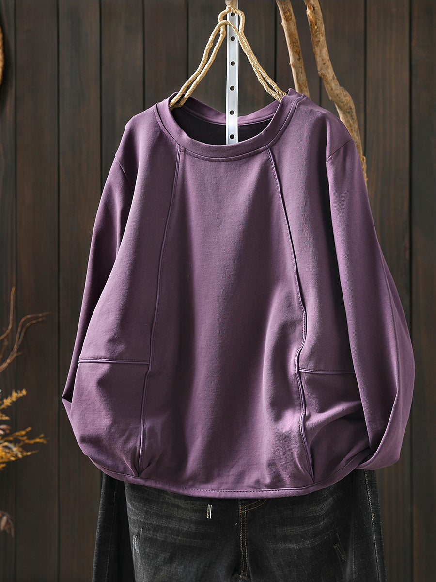بلوزة نسائية كاجوال ربيعية بلون موحد بياقة دائرية
